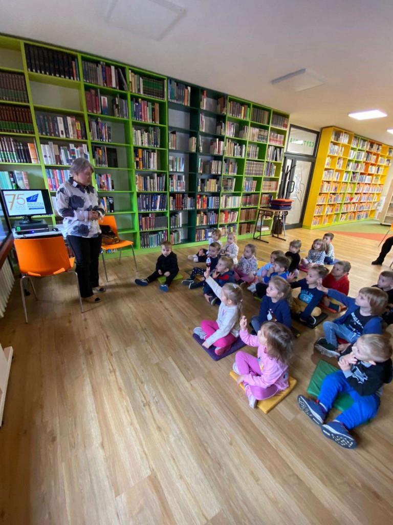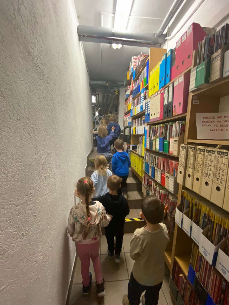 W dniu 29 października wybraliśmy się po raz pierwszy do Biblioteki Pedagogicznej. Tematem naszych pierwszych zajęć była bardzo ważna wartość- uczciwość. Pani prowadząca zajęcia najpierw rozmawiała z nami o uczciwych zachowaniach, a także o zawodach, w których ta wartość jest niezbędna. Następnie nawiązała do bohaterów literatury dziecięcej, którym nieuczciwe zachowania nie wyszły na dobre. Dużą atrakcją dla nas było zwiedzanie biblioteki, a w szczególności archiwum, do którego prowadziły bardzo kręte schody. Daliśmy radę, a zajęcia bardzo nam się podobały.
