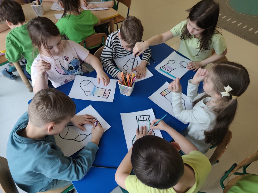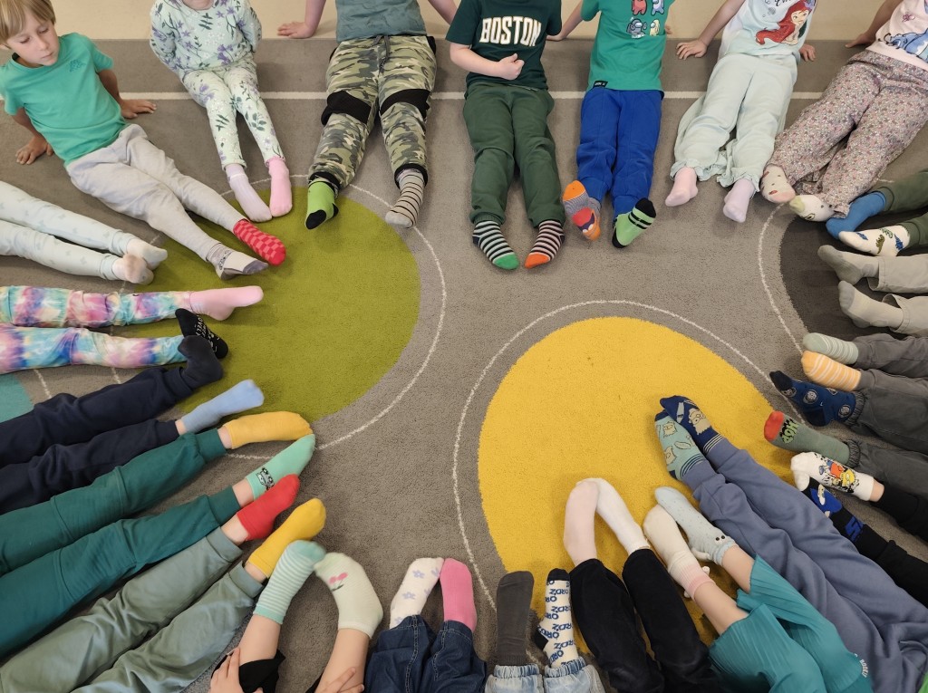 Tego dnia nie zapomnieliśmy również o ważnym przesłaniu. Obchodząc Dzień Kolorowej Skarpety, założyliśmy różnokolorowe, nie do pary skarpetki, okazując w ten sposób wsparcie i akceptację dla osób z zespołem Downa. Rozmawialiśmy o różnorodności, szacunku i tym, jak ważne jest, aby każdy czuł się wyjątkowy i akceptowany.