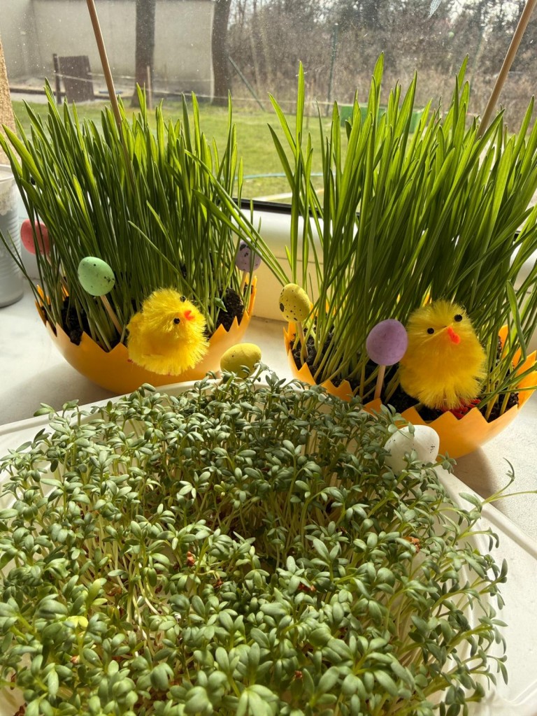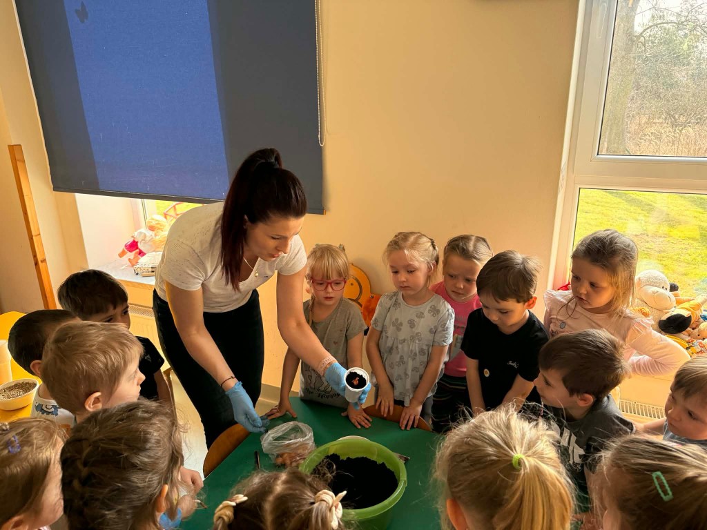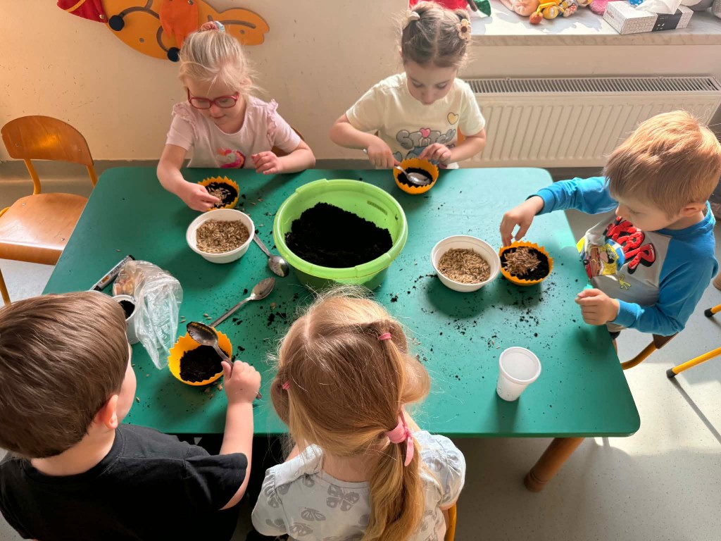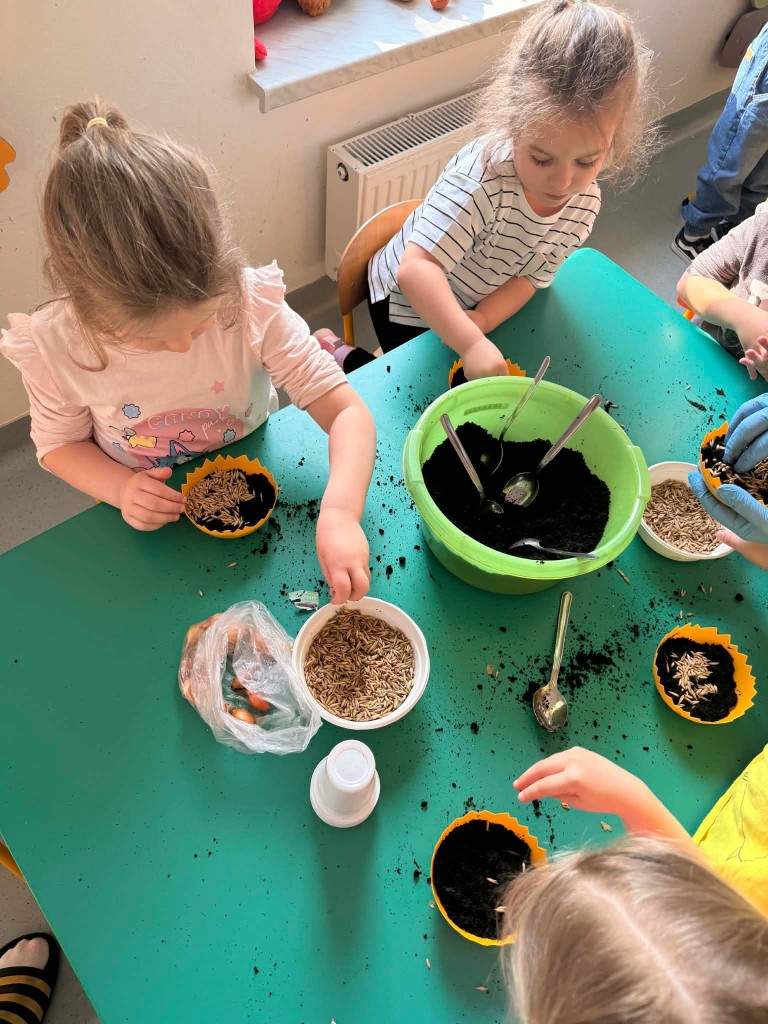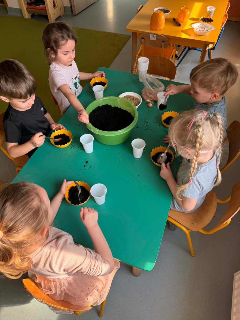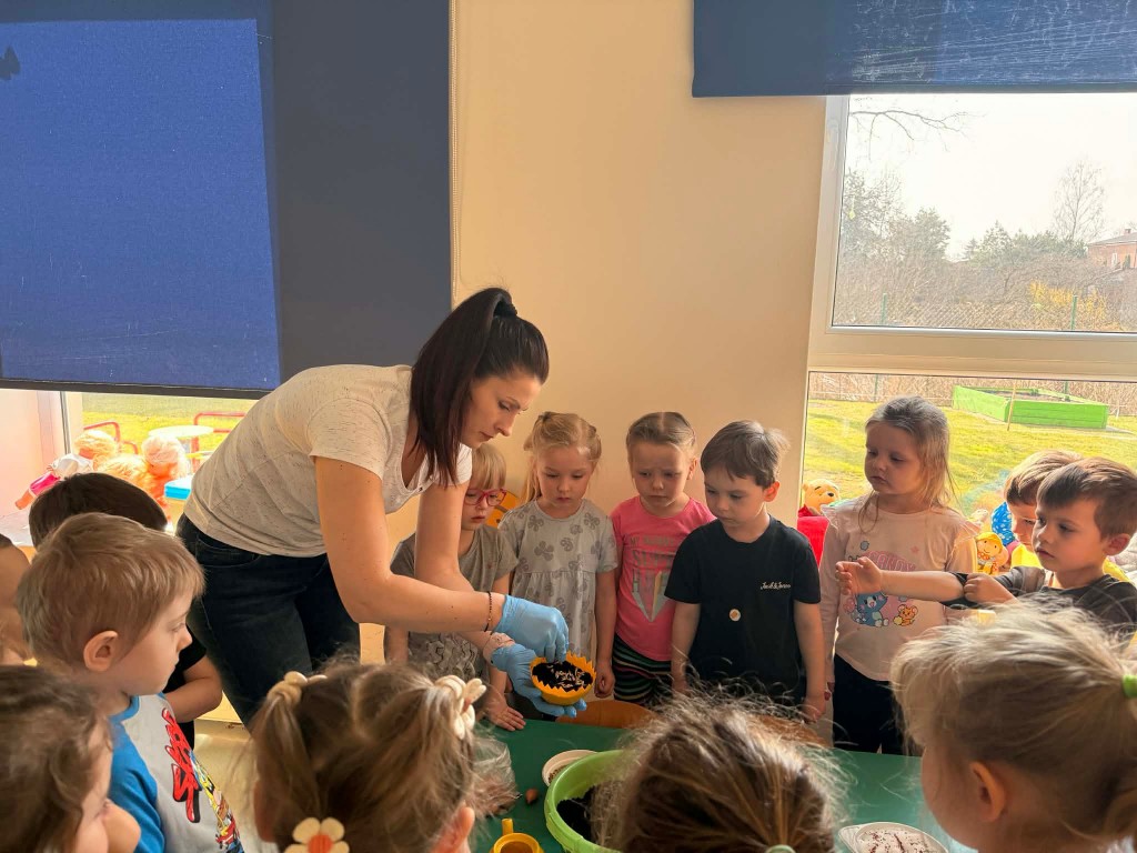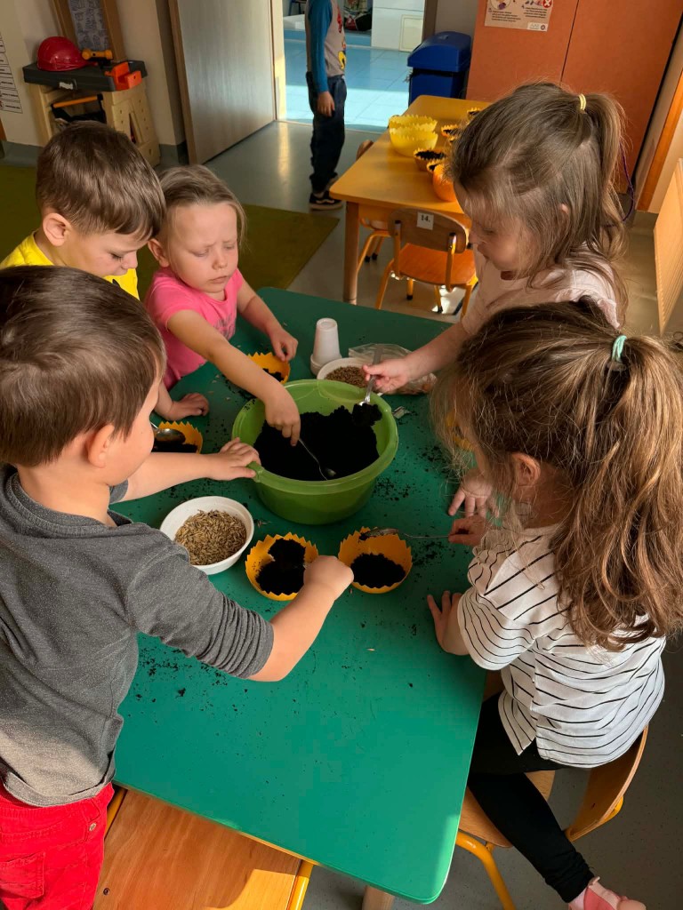 W pierwszym tygodniu kwietnia rozpoczęliśmy przygotowania do Świąt Wielkanocnych. Poznaliśmy tradycje i zwyczaje wielkanocne, a także uczyliśmy się wierszy i piosenek o Wielkanocy. W środę, każde dziecko w swojej doniczce wysiało owies, którym później ozdobi stół wielkanocny. Sialiśmy także rzeżuchę i sadziliśmy cebulki. W czwartek poznaliśmy właściwości jajka, następnie wyklejaliśmy plasteliną szablony jajek, z których powstały przepiękne pisanki.