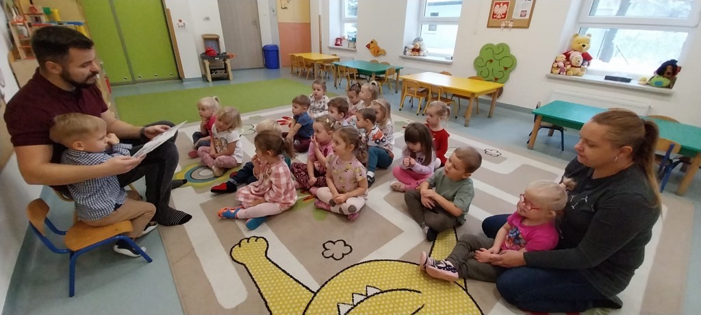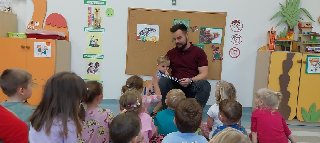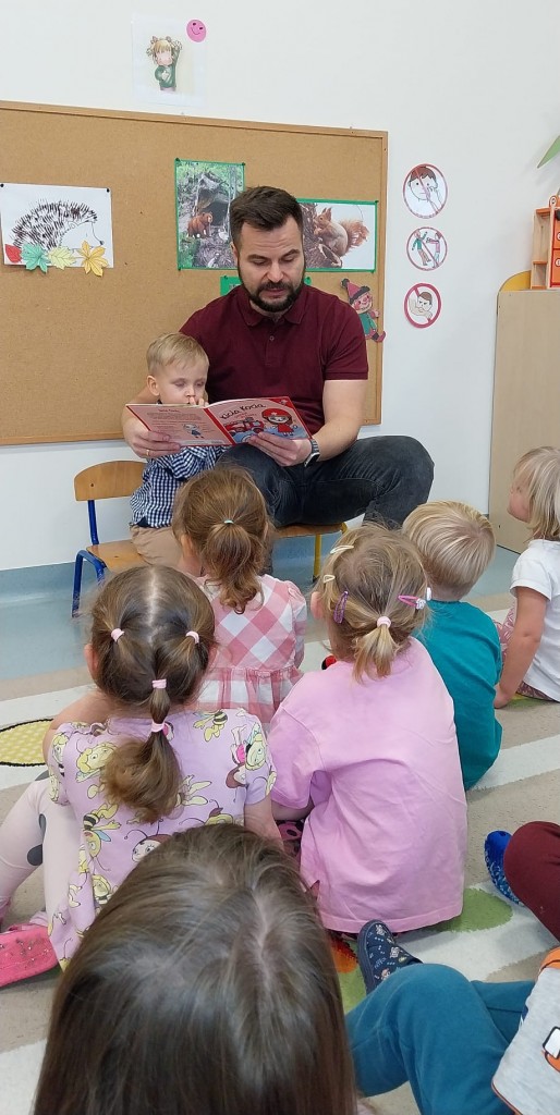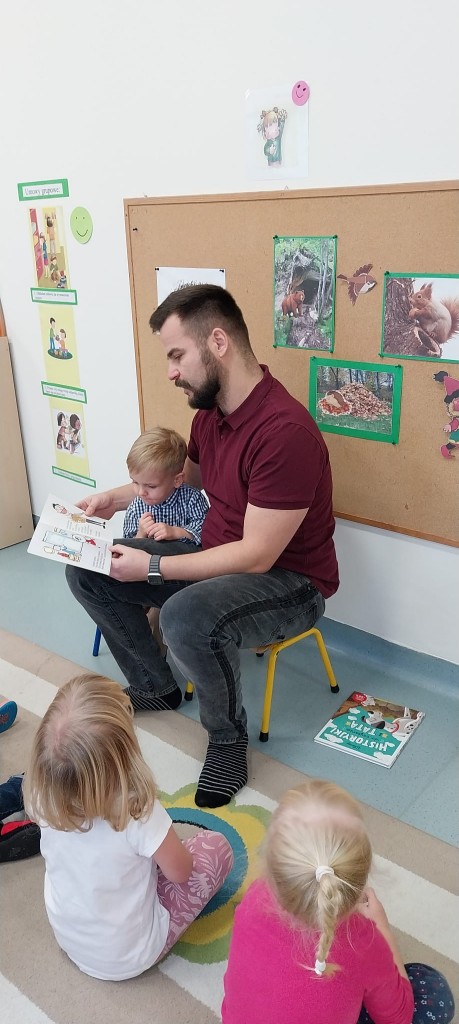 W listopadzie w ramach ogólnopolskiej akcji „Cała Polska Czyta Dzieciom” naszą grupę odwiedzili: mama Szymona H. oraz tata Tymka S. Dzieci z zapartym tchem słuchały wybranych opowiadań, tym samym domagając się dalszych opowieści.