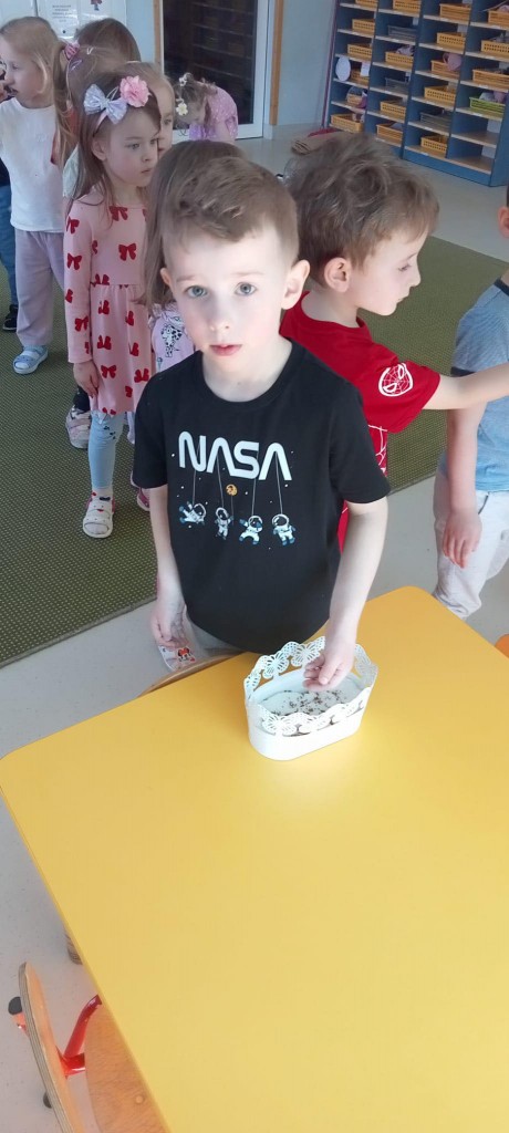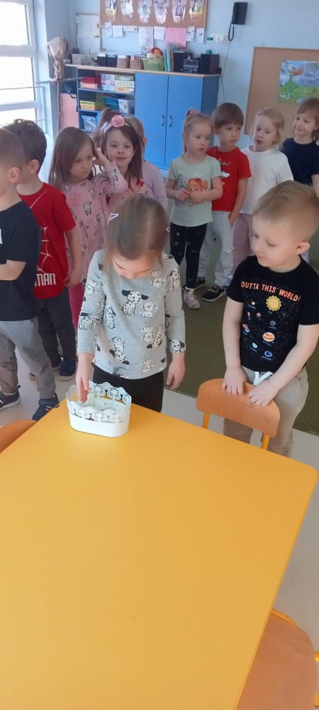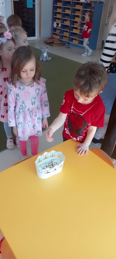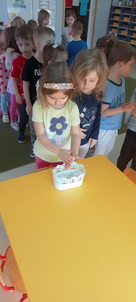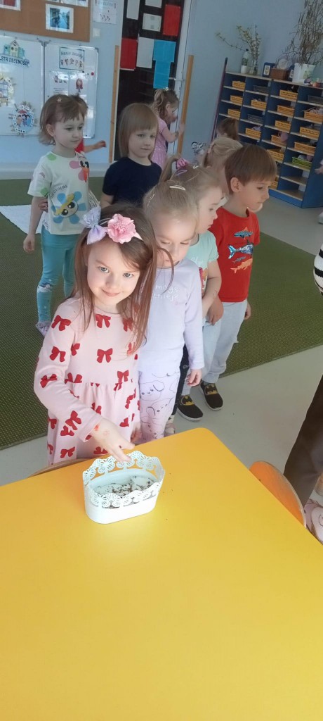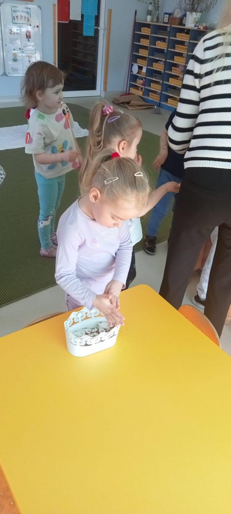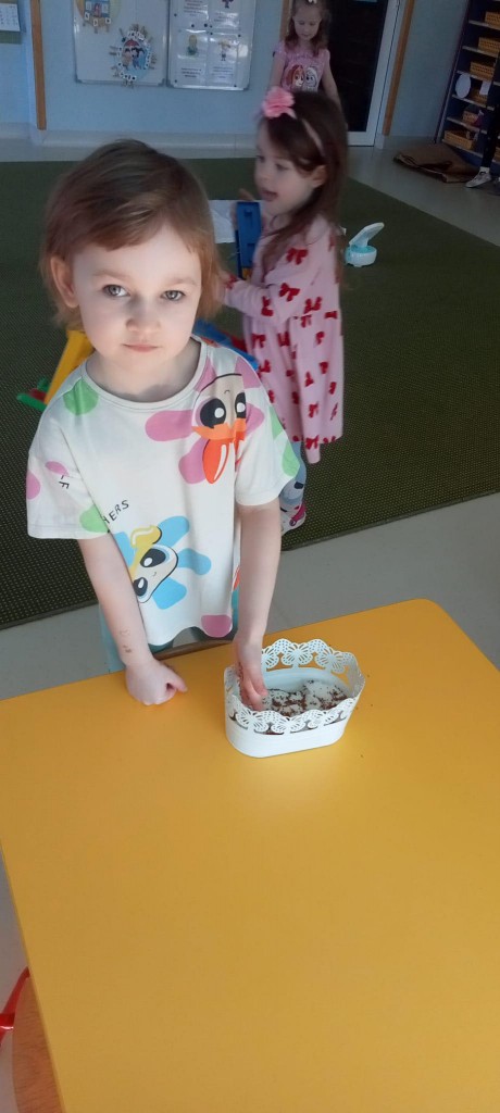 We środę, 19 marca, rozpoczęliśmy już przygotowania do nadchodzącej wiosny. Rozpoczęliśmy je od przystrojenia naszej sali przedszkolnej. Każdy z nas miał okazję wsypać troszkę nasion rzeżuchy do dwóch wypełnionych namoczoną watą doniczek. Następnie spryskaliśmy je wodą i zostawiliśmy na naszym parapecie do wzrostu. Będziemy o nią dbać i patrzeć, jak rośnie i ozdabia naszą salę!
