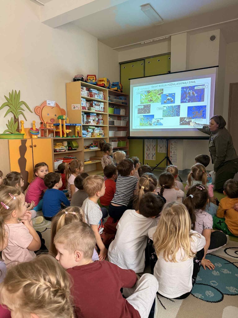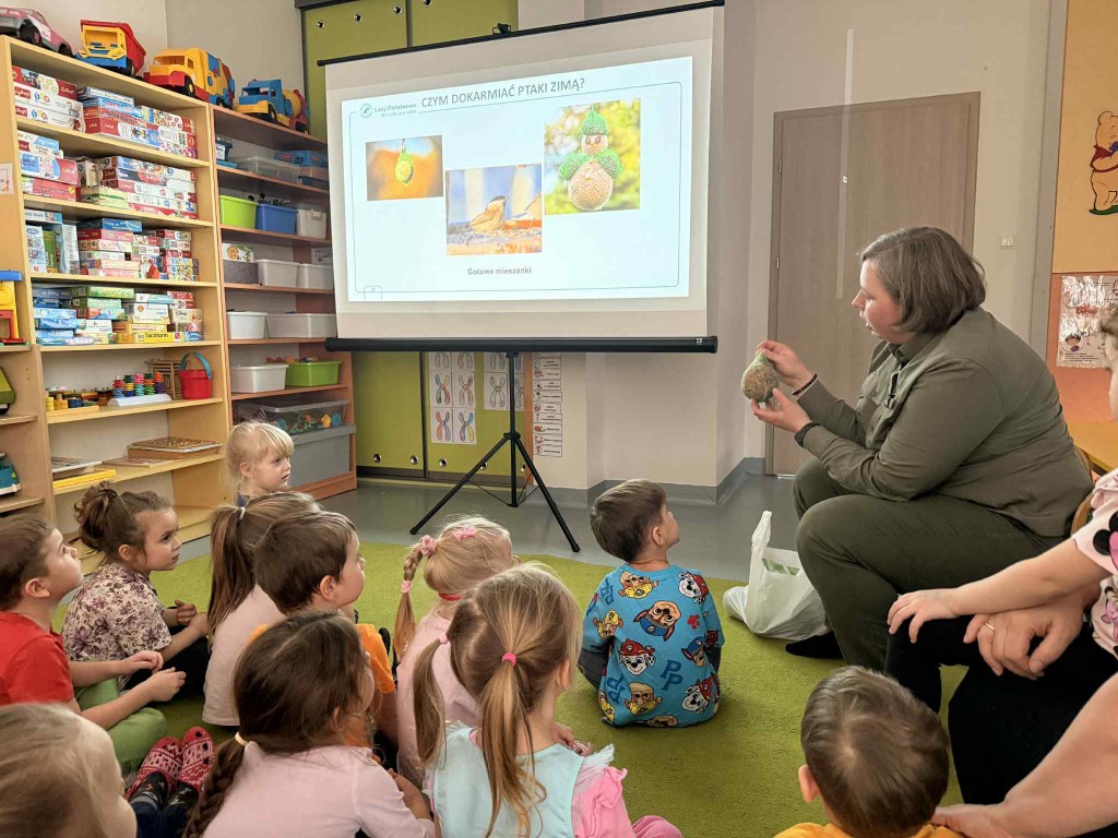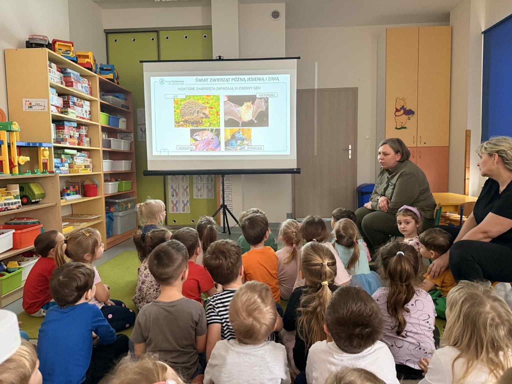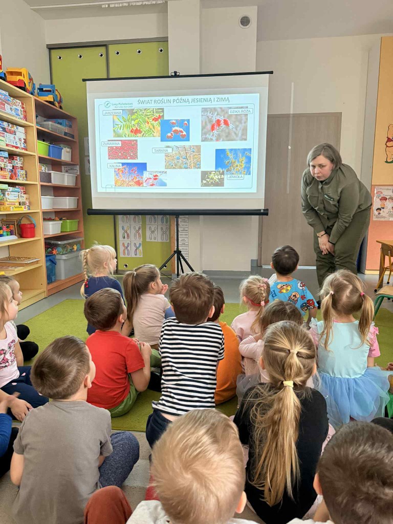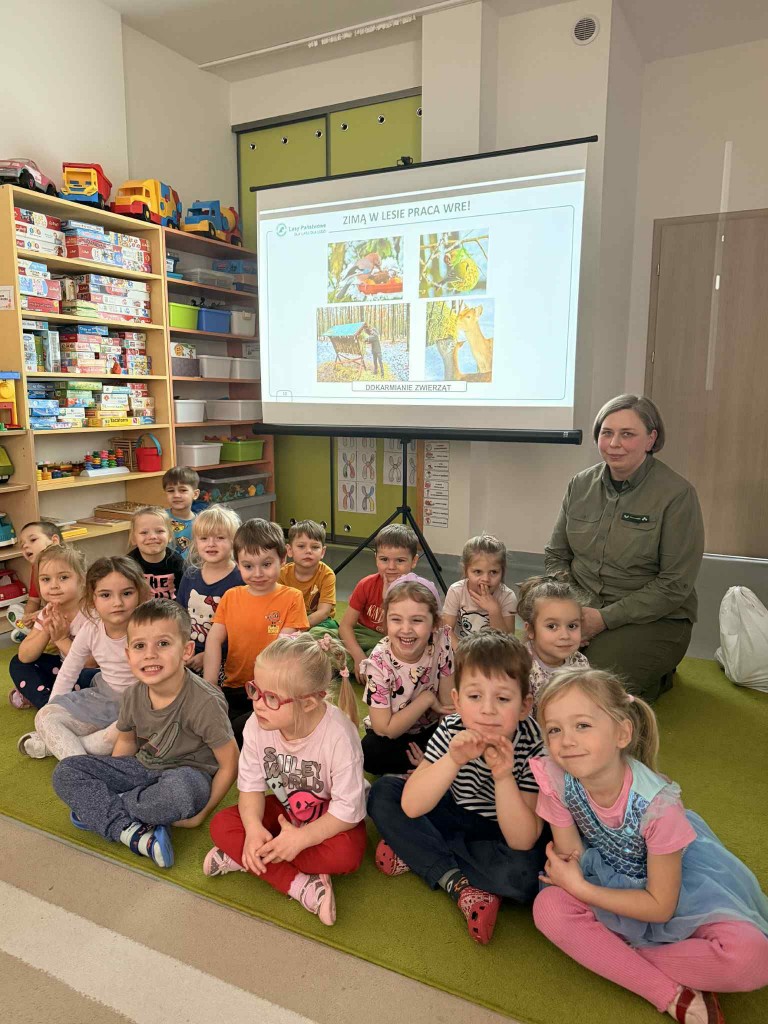 Dnia 27 stycznia naszą grupę odwiedziła pani leśnik - Małgorzata Bielak z Nadleśnictwa Chotyłów. Podczas zajęć dzieci poznały, na czym polega praca leśnika. Dowiedziały się o konieczności dokarmiania zwierząt w okresie zimowym oraz o sposobach pomagania ptakom i zwierzętom leśnych. Dzieci chętnie dzieliły się swoimi spostrzeżeniami i wykazały duże zainteresowanie tematyką przyrody.