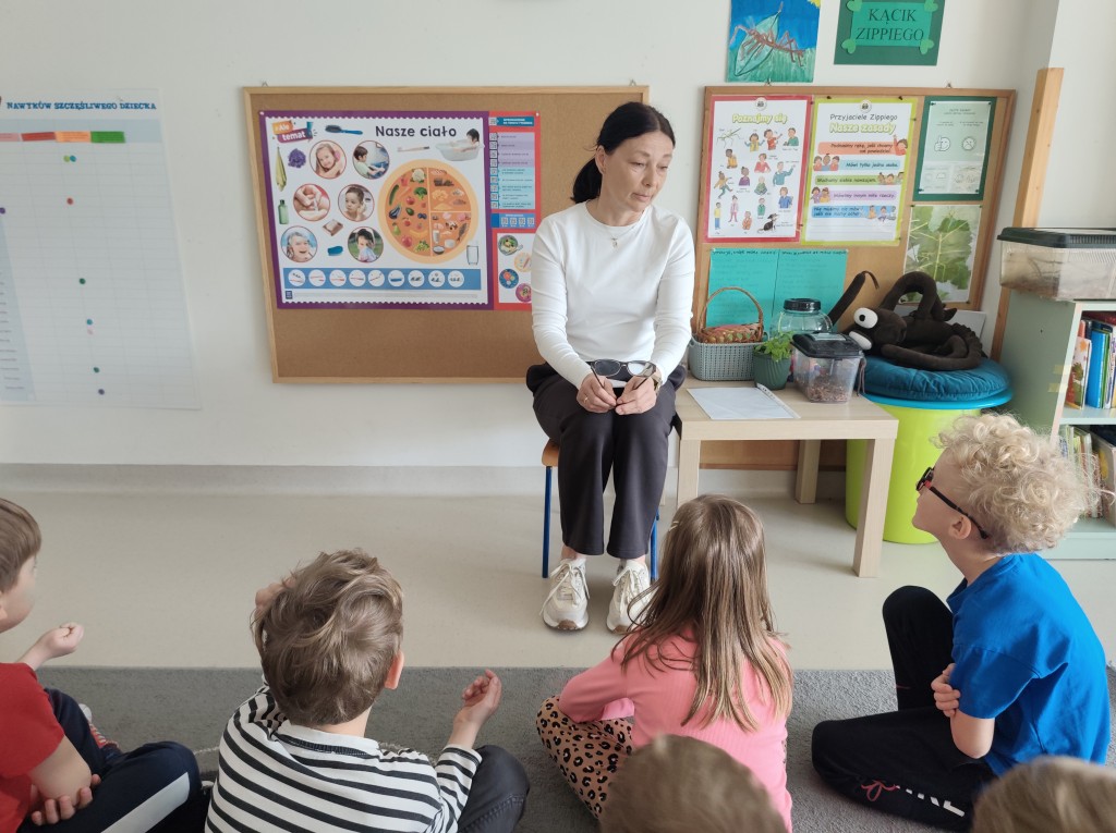 Z zainteresowaniem słuchaliśmy opowieści o tym, co robić, aby nie chorować, a także jak zachować się w sytuacji, gdy ktoś potrzebuje pomocy. Chętnie zadawaliśmy pytania i dzieliliśmy się swoimi doświadczeniami.