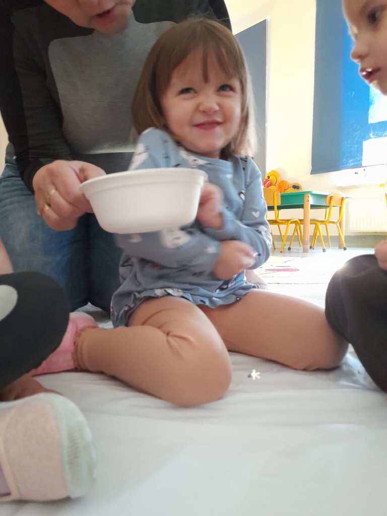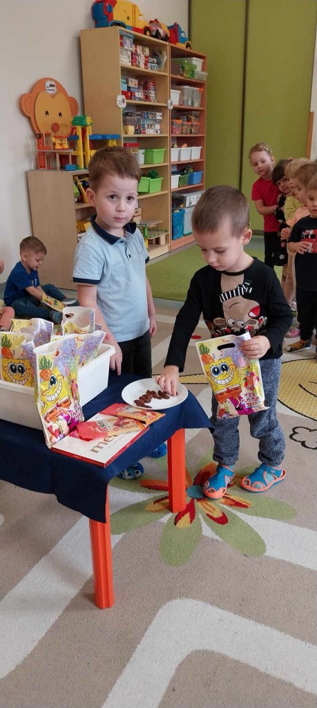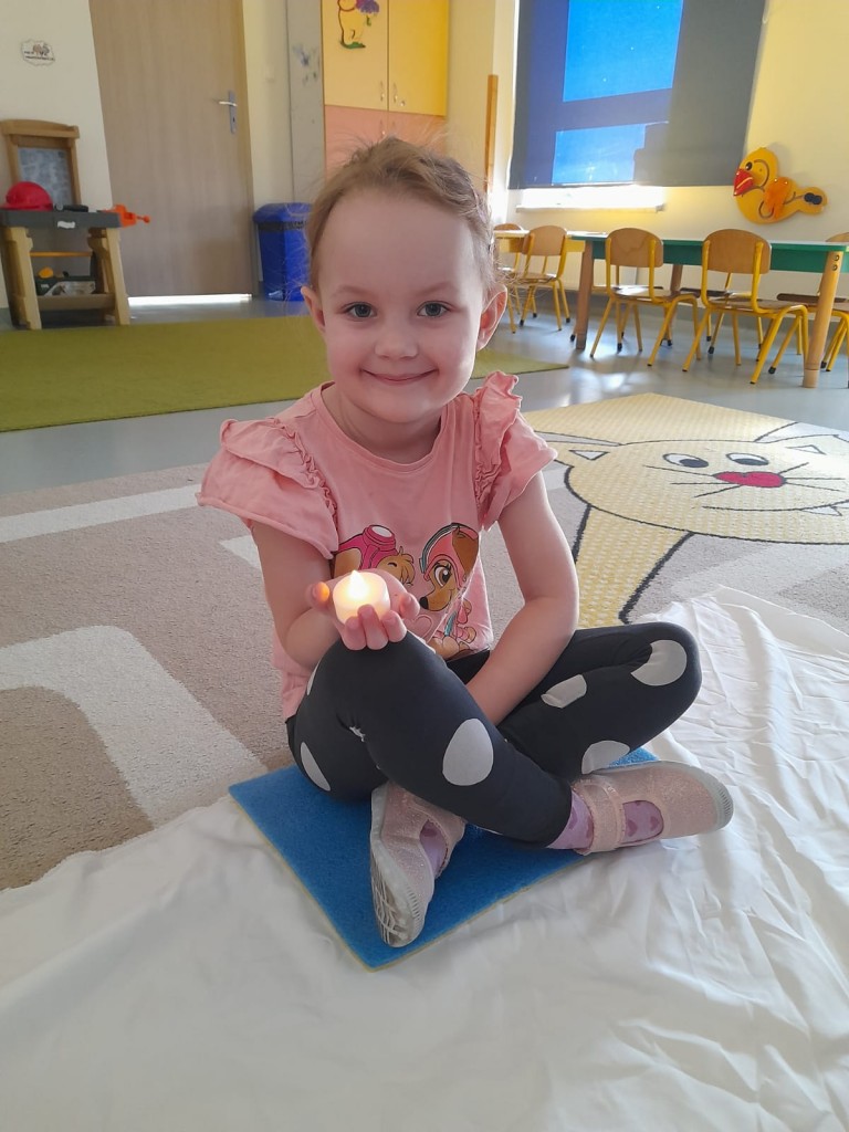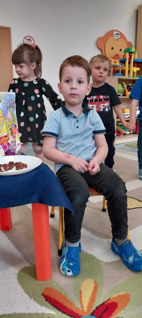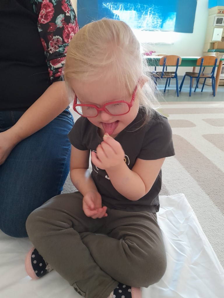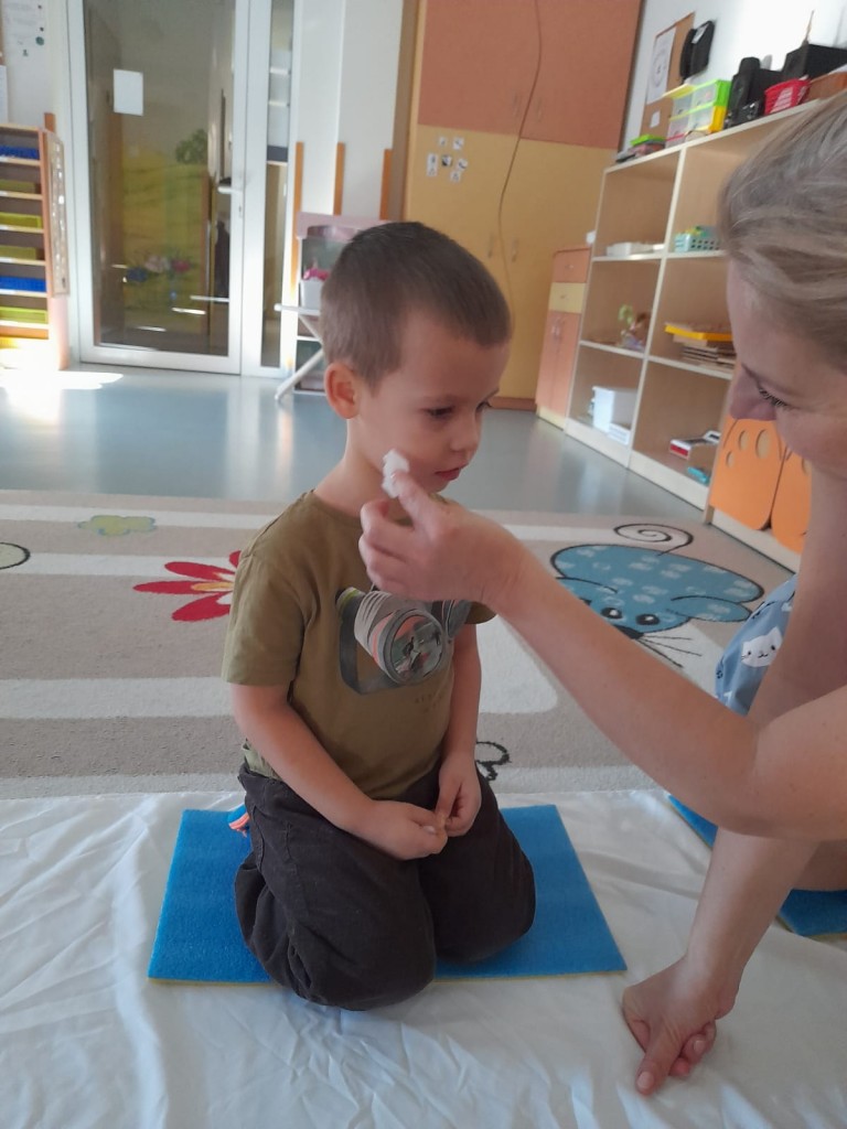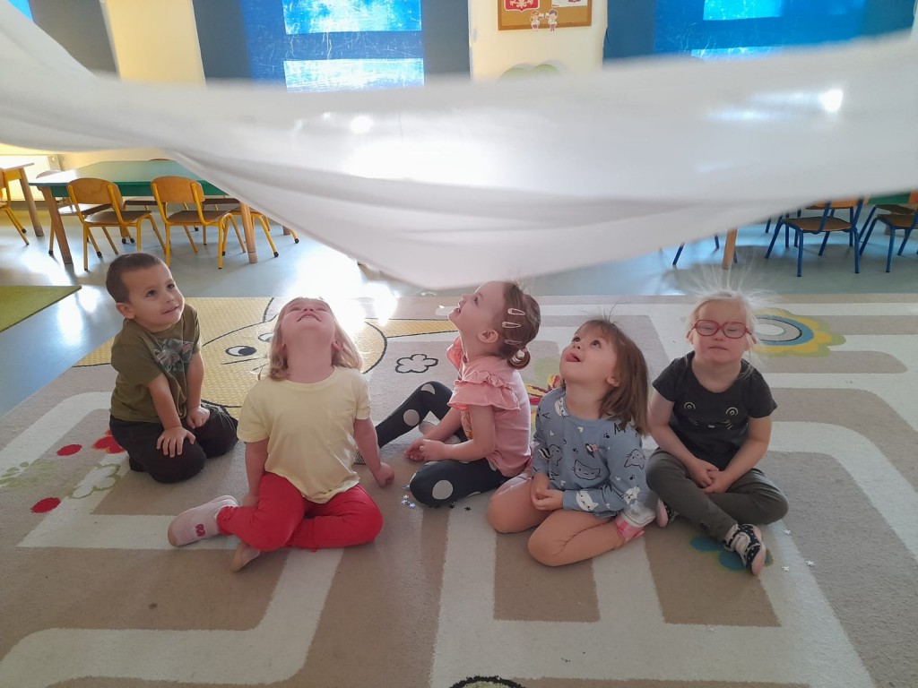 W trzecim tygodniu stycznia wieloma zmysłami poznawaliśmy zimę. Otoczeni kolorem białym, który symbolizuje śnieg oraz niebieskim kojarzącym się z dalą nieba i spokojem, bawiliśmy się wodą w stanie ciekłym i stałym. Woda dostarczyła nam wrażeń dotykowych i termicznych. Zmysł węchu pobudziliśmy mroźnym zapachem mięty, a zmysł smaku herbatką miętową z kostką lodu. Podczas zimowej przejażdżki „sanną” towarzyszyły nam dźwięki dzwoneczków.