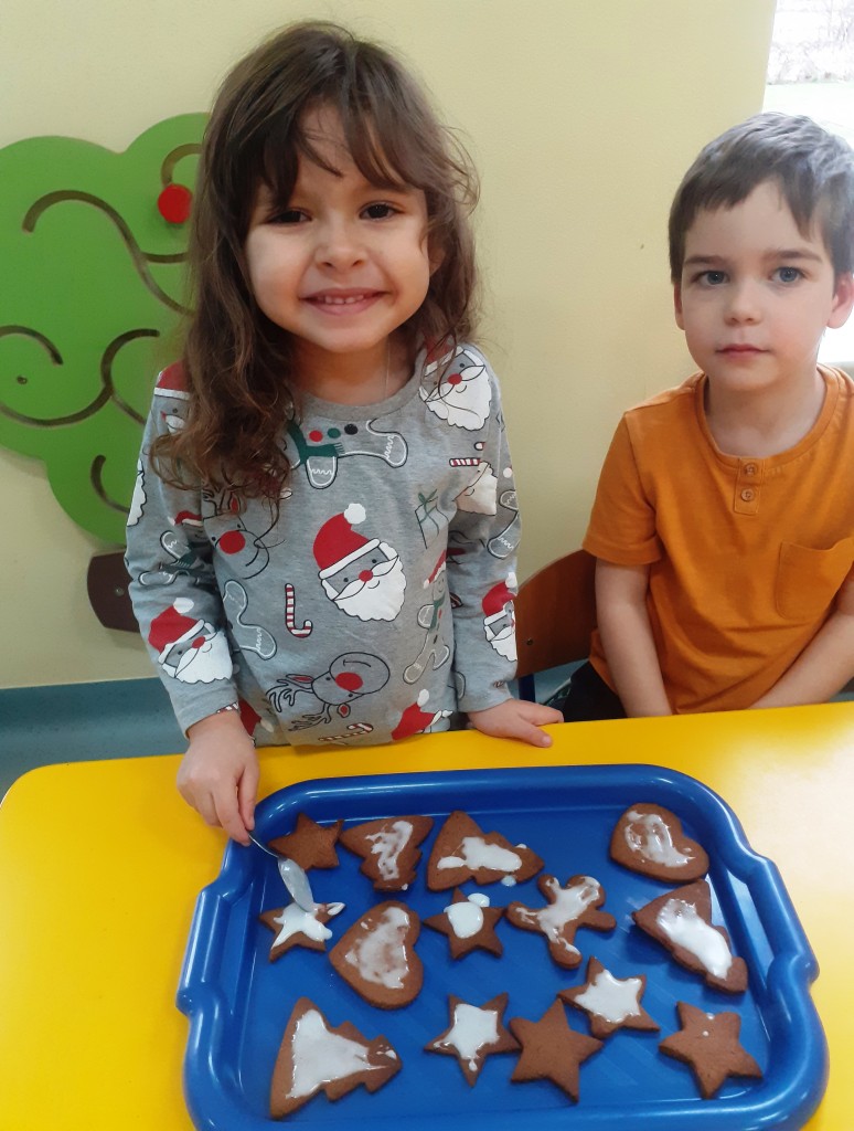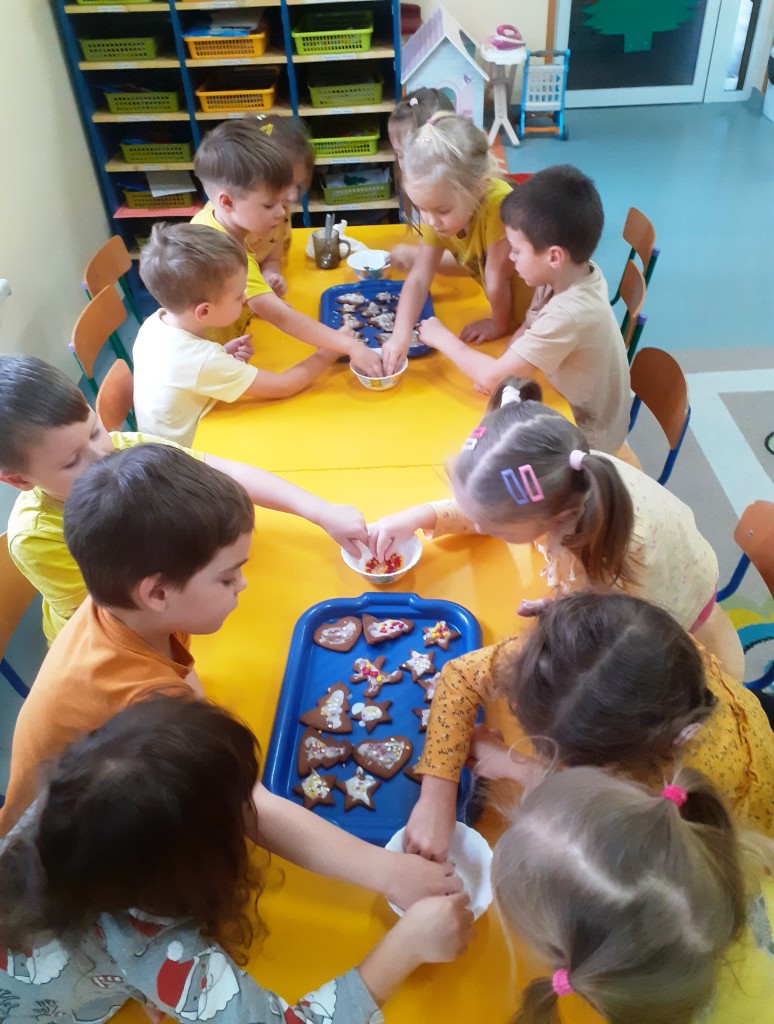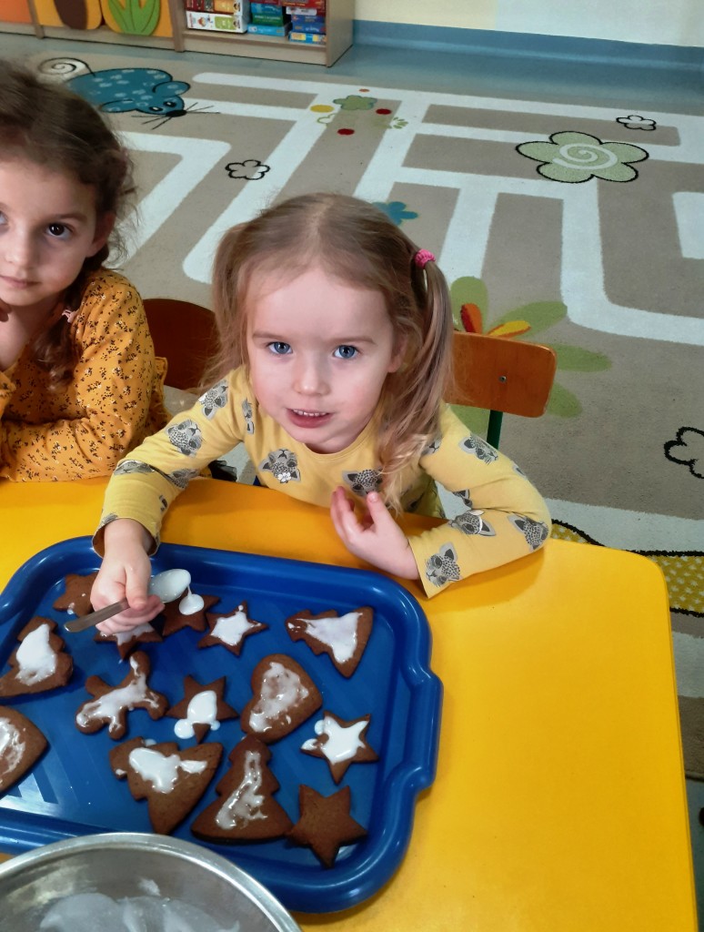Najpierw upiekliśmy pyszne i aromatyczne pierniczki. Najbardziej oczekiwanym jednak momentem było ich późniejsze dekorowanie. Za sprawą naszej fantazji każdy pierniczek stał się słodkim dziełem sztuki.