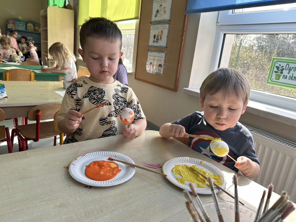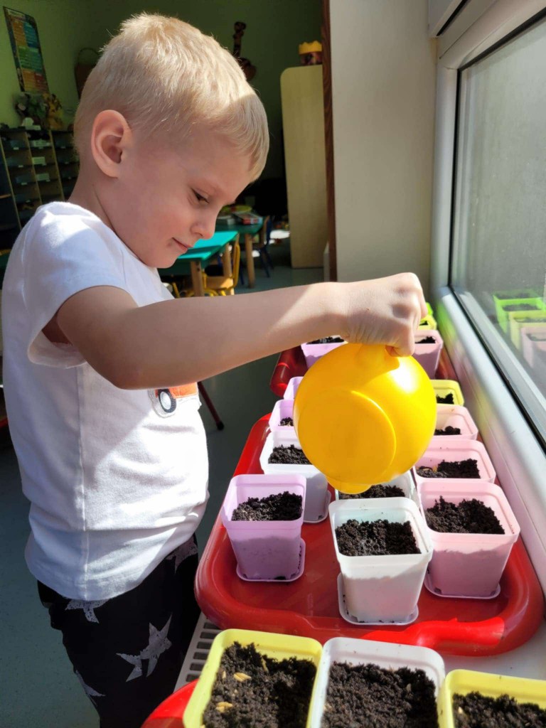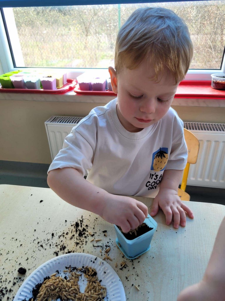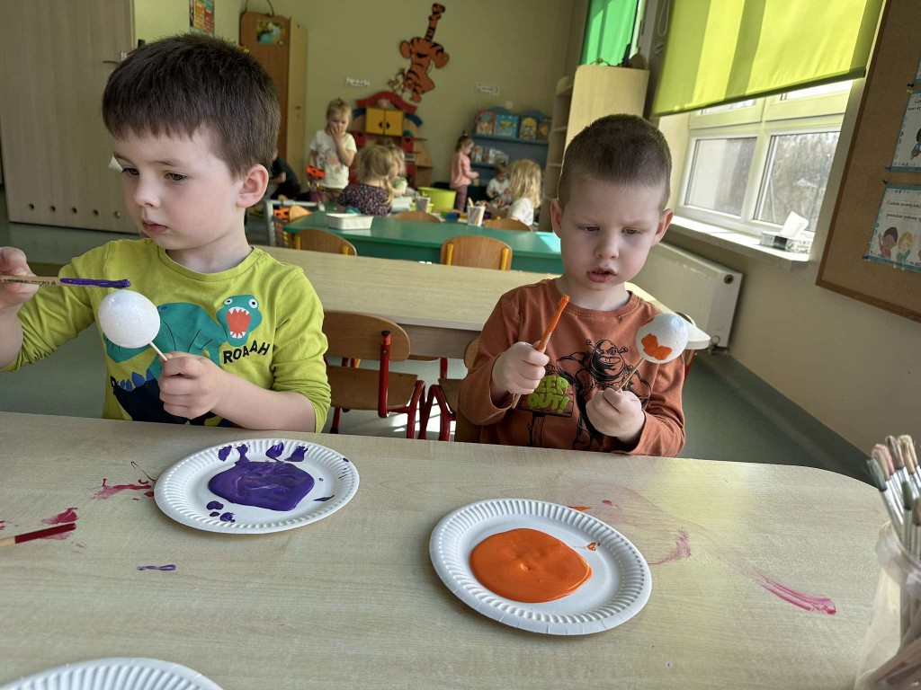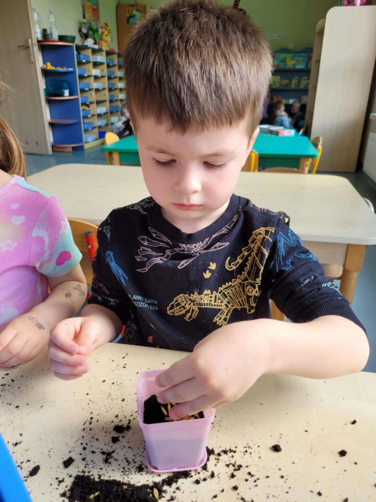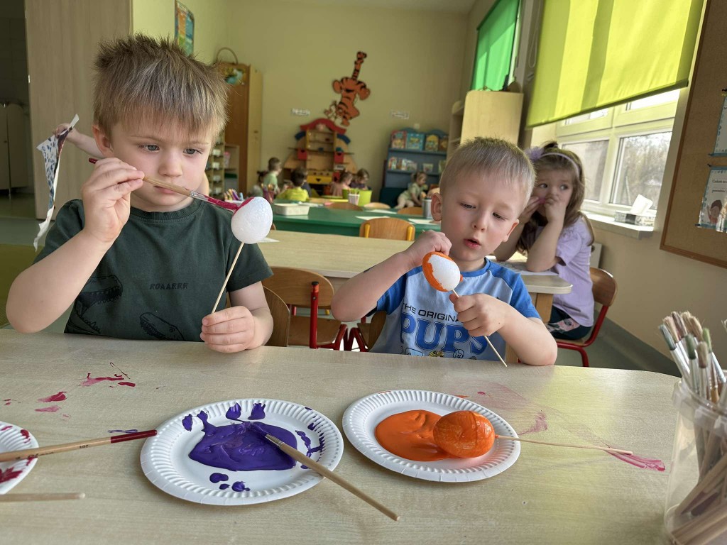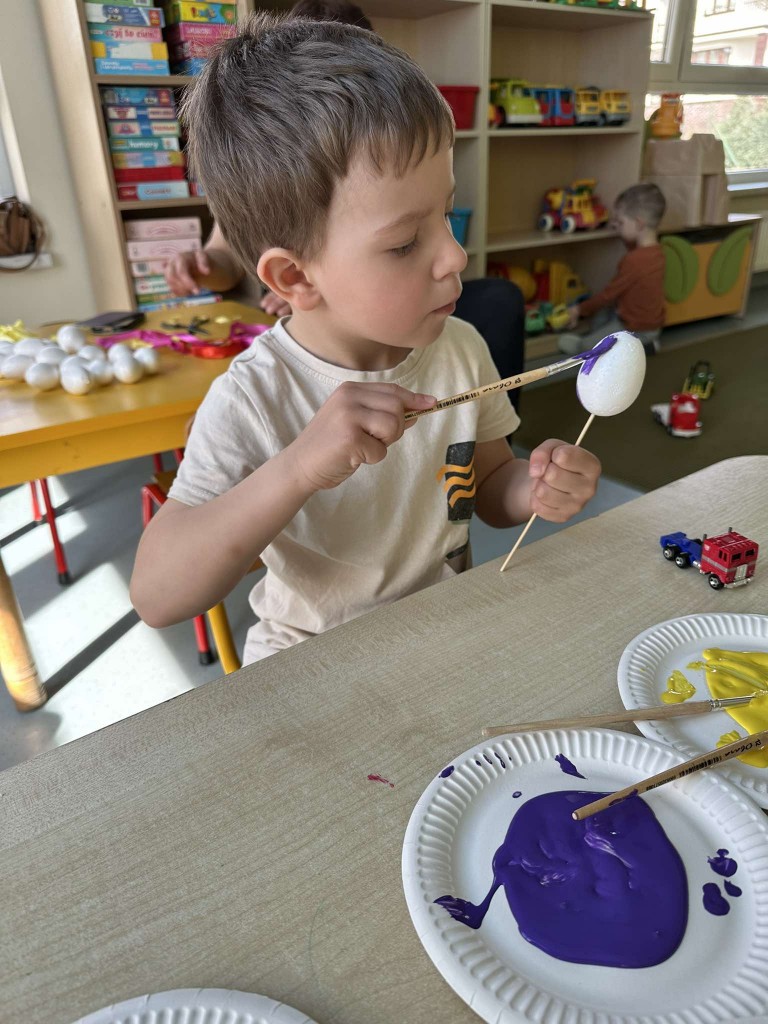 Na kilka dni przed Świętami Wielkanocnymi z wielkim zaangażowaniem zabraliśmy się za przygotowywanie stroików wielkanocnych. Jednym z głównych elementów było sianie owsa, który symbolizuje budzącą się do życia przyrodę. Wsypywaliśmy ziemię do doniczek, wsypywaliśmy nasiona i podlewaliśmy je z wielkim przejęciem, ucząc się przy tym cierpliwości i odpowiedzialności.