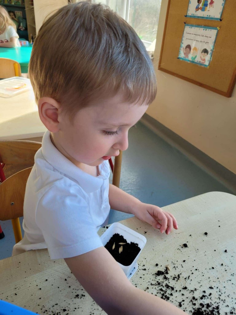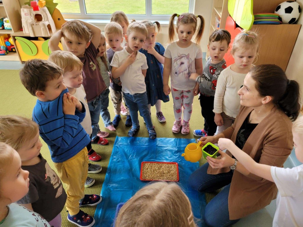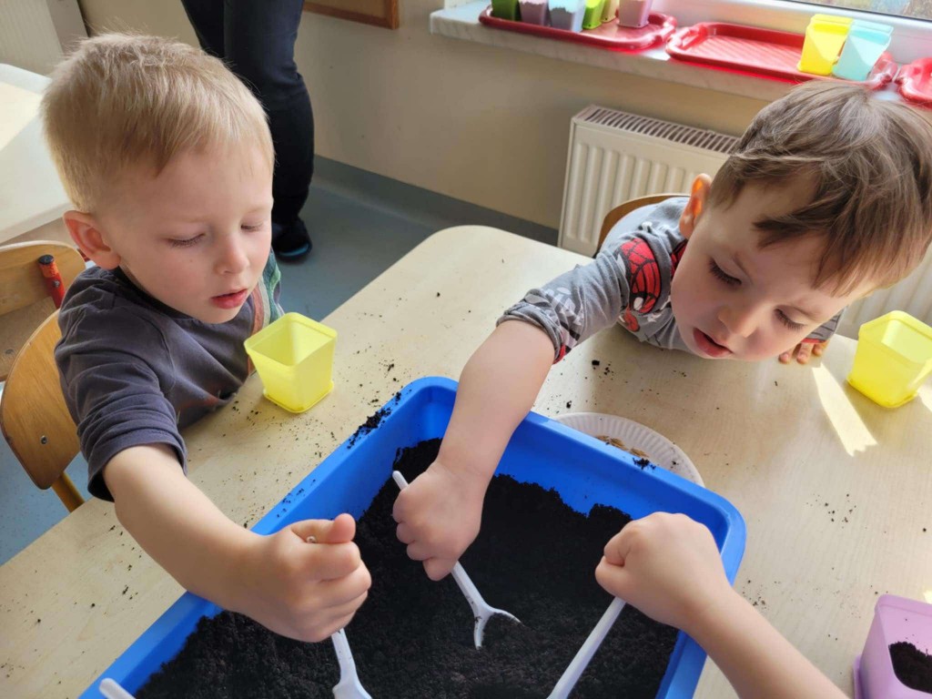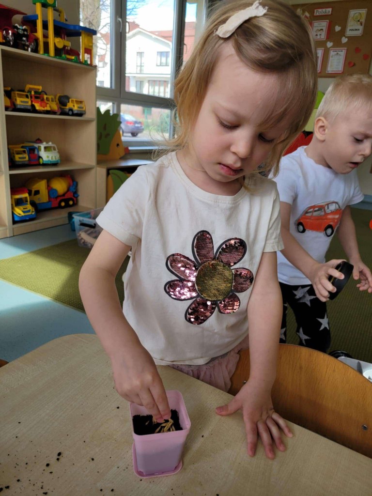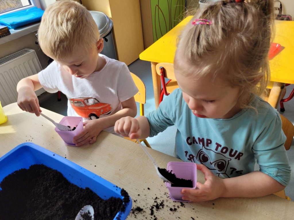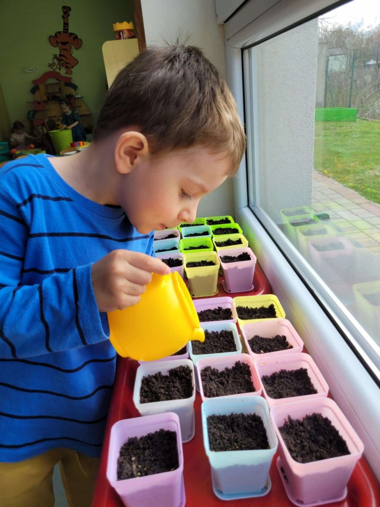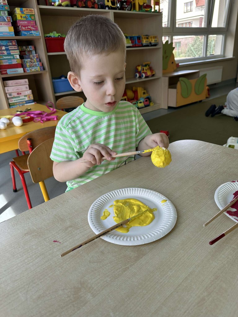 Na kilka dni przed Świętami Wielkanocnymi z wielkim zaangażowaniem zabraliśmy się za przygotowywanie stroików wielkanocnych. Jednym z głównych elementów było sianie owsa, który symbolizuje budzącą się do życia przyrodę. Wsypywaliśmy ziemię do doniczek, wsypywaliśmy nasiona i podlewaliśmy je z wielkim przejęciem, ucząc się przy tym cierpliwości i odpowiedzialności.