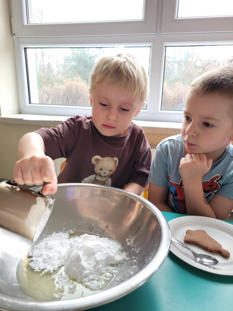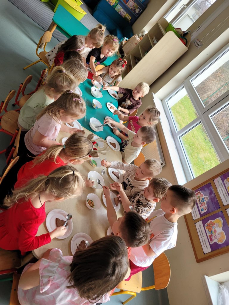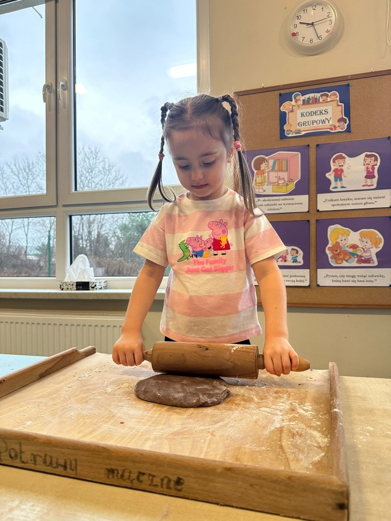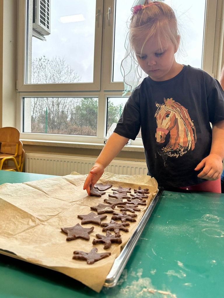 Chociaż do świąt zostało jeszcze trochę czasu, to już w przedszkolu czujemy atmosferę, że się zbliżają. Najpierw 6 grudnia przyszedł Mikołaj i rozdał prezenty, później pieczenie i ozdabianie pierniczków, ubieranie choinki oraz nadchodzi czas na przedstawienie – czas na Jasełka. Ćwiczymy nasze role oraz śpiewamy kolędy, wykonujemy prace plastyczne o tematyce świątecznej. Poznajemy tradycje i obyczaje związane z nadchodzącymi świętami. Tak więc w grudniu mamy dużo roboty, której towarzyszy świąteczny nastrój.