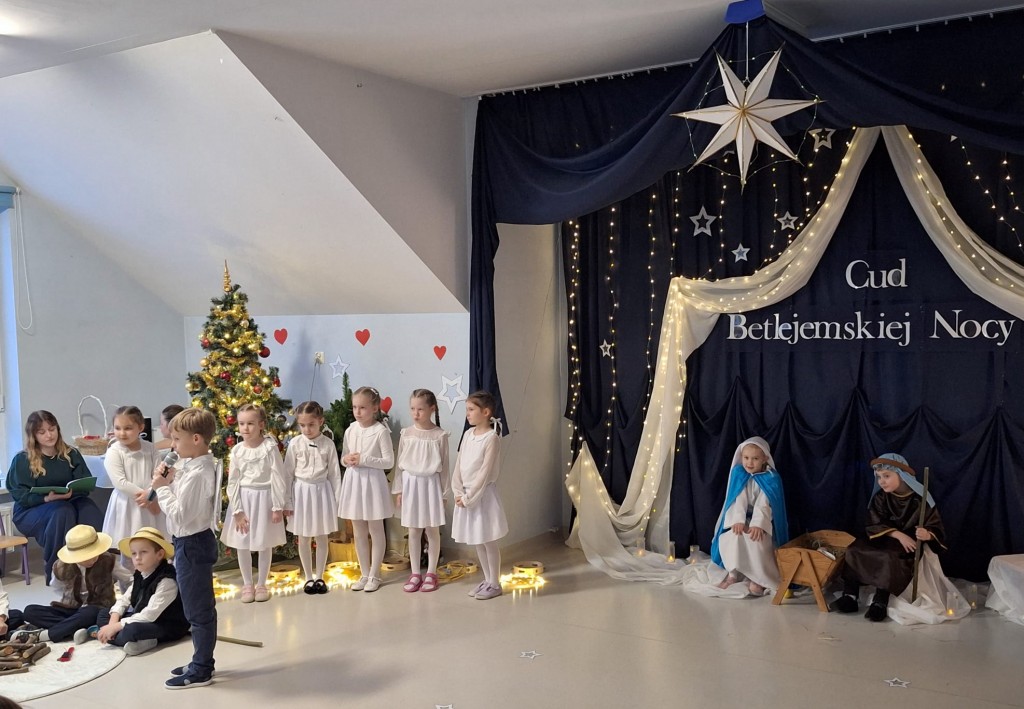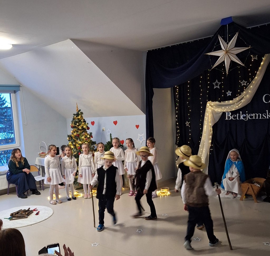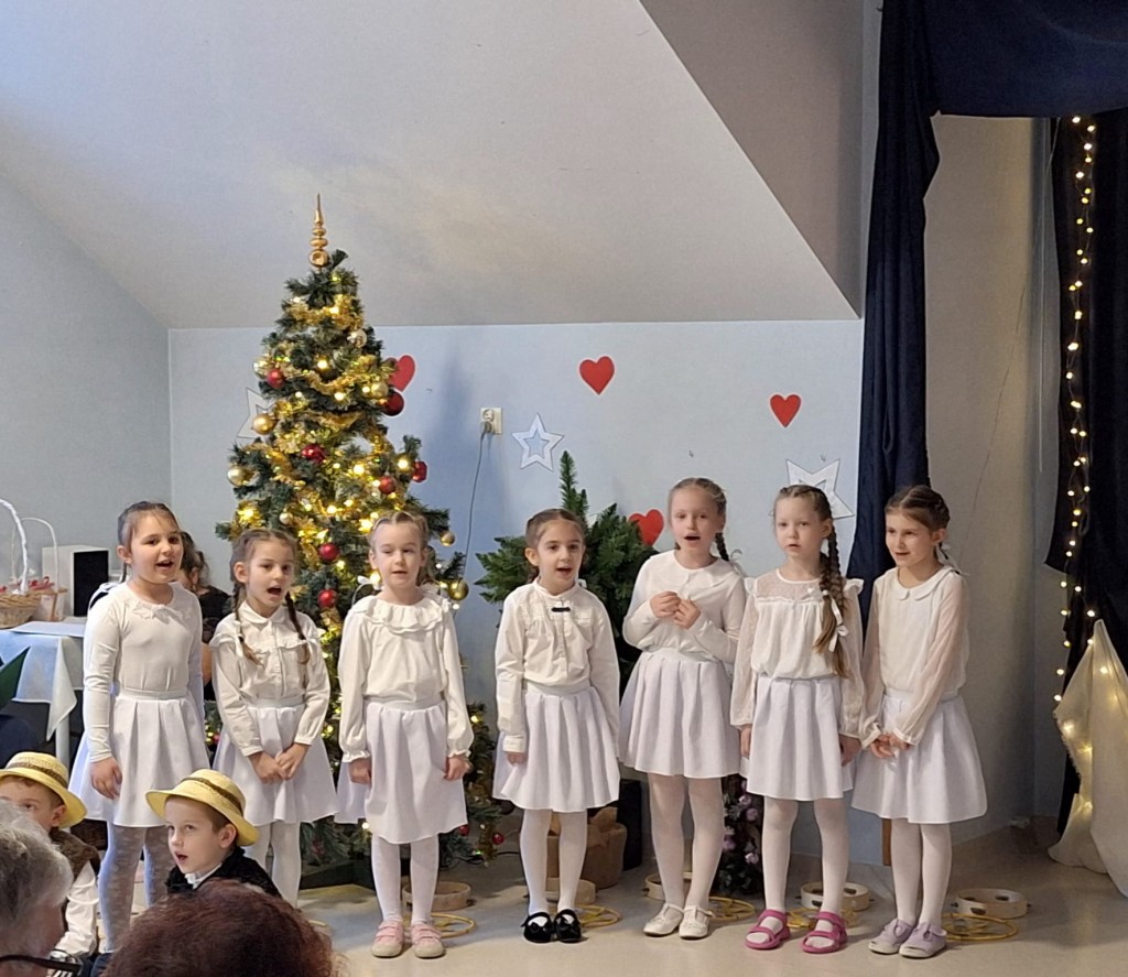Z radością świętowaliśmy Dzień Babci i Dziadka – wyjątkową uroczystość pełną uśmiechów, wzruszeń i ciepłych emocji. Przygotowaliśmy występ artystyczny związany z historią Bożego Narodzenia, podczas którego zaprezentowaliśmy piosenki, wiersze oraz krótkie inscenizacje, dziękując naszym Babciom i Dziadkom za ich miłość, cierpliwość i codzienne wsparcie. Własnoręcznie wykonane upominki były wyrazem naszej wdzięczności i serca włożonego w przygotowania. To był piękny, wspólnie spędzony czas, który na długo pozostanie w naszej pamięci.