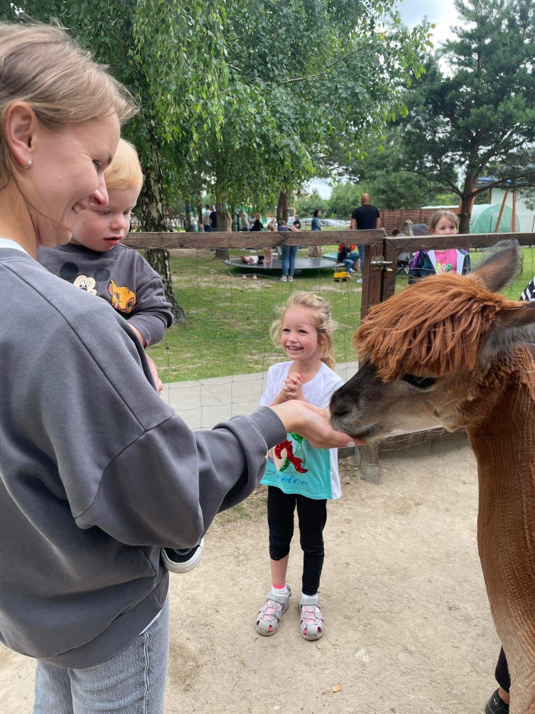 Mieliśmy także okazję poznać życie alpak, dowiedzieć się jak żyją i co jedzą. Samodzielnie nakarmiliśmy zwierzęta. Na wszystkich czekały również ciepłe kiełbaski oraz super plac zabaw.