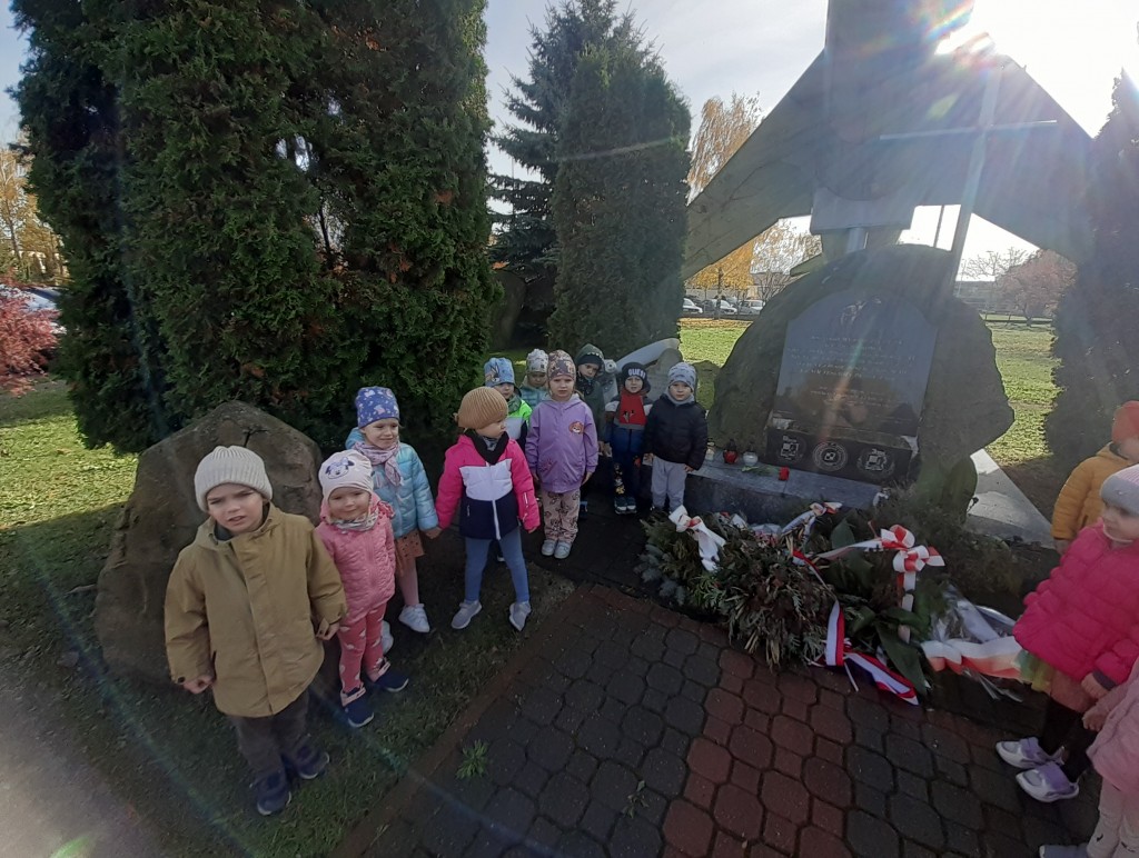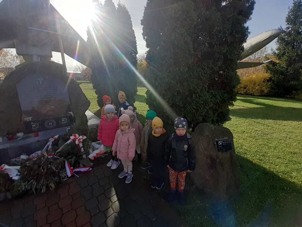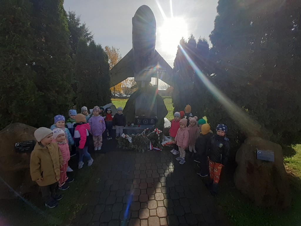 Nasze przedszkolaki po raz pierwszy wzięły udział w akcji Ministerstwa Edukacji i Nauki pt. „Szkoła pamięta 2023”, która ma na celu uwrażliwienie młodych ludzi na potrzebę pielęgnowania pamięci o bohaterach naszej wolności. 30 października odbył się finał tej akcji z tego tytułu wybraliśmy się do miejsca pamięci w naszym regionie pod pomnik poległych lotników przy ulicy Dokudowskiej, by uczcić pamięć tych, którzy walczyli za naszą ojczyznę.