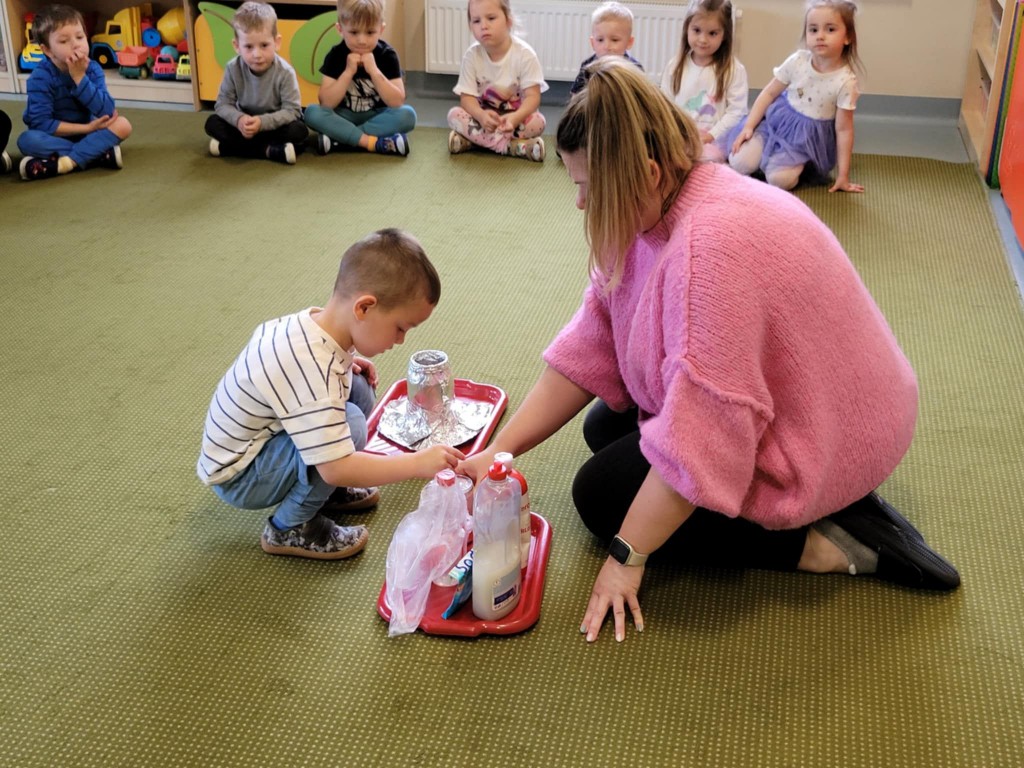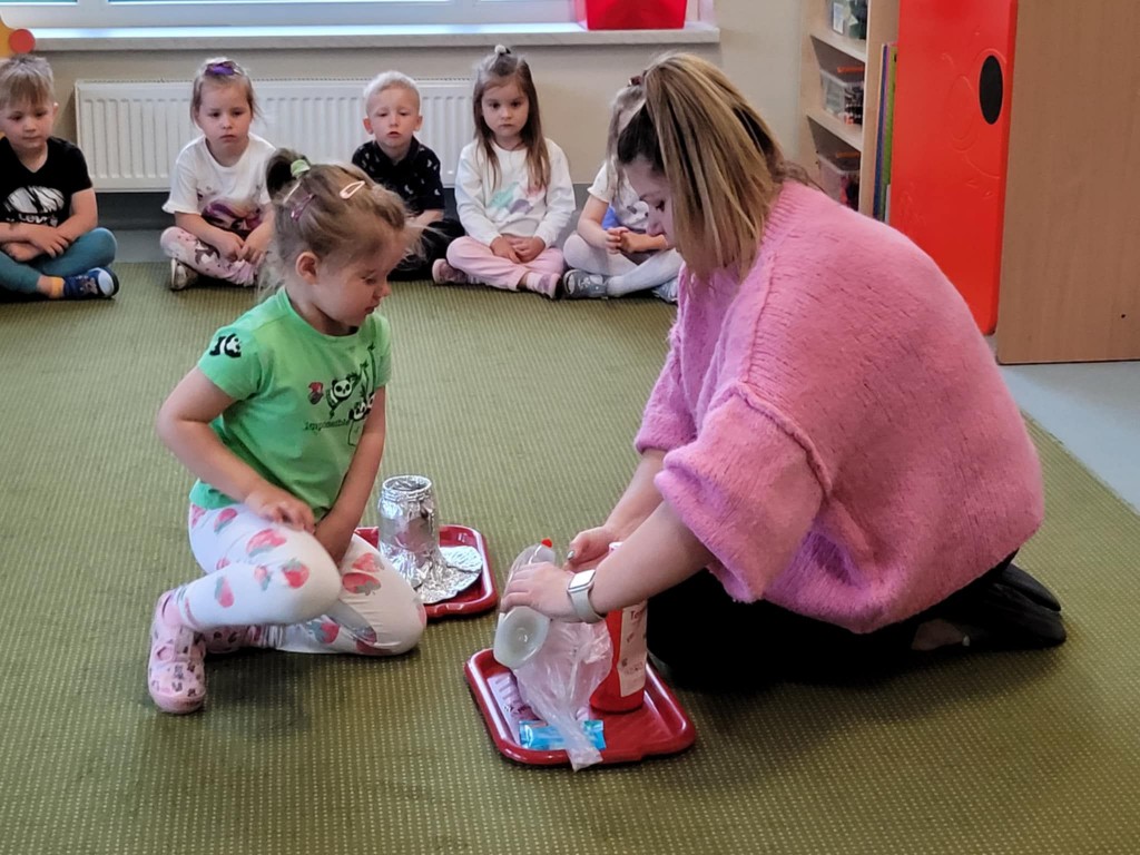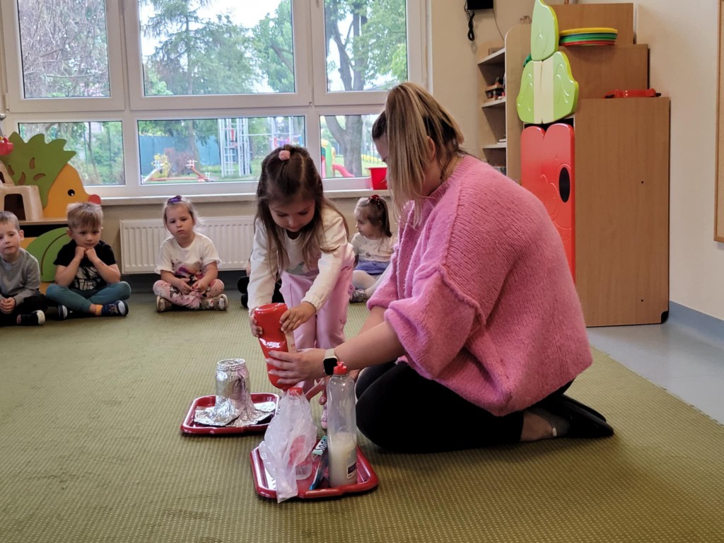 W czasie majowych zajęć dowiedzieliśmy się ciekawych informacji na temat wulkanów, miejsc ich powstawania, kiedy wybuchają i co się z nich wydobywa. Zainspirowani tymi wiadomościami, postanowiliśmy zrobić nasz własny wulkan. Wspólnie wykonaliśmy doświadczenie, w którym uzyskaliśmy wybuch wulkanu. Było bardzo ekscytująco!