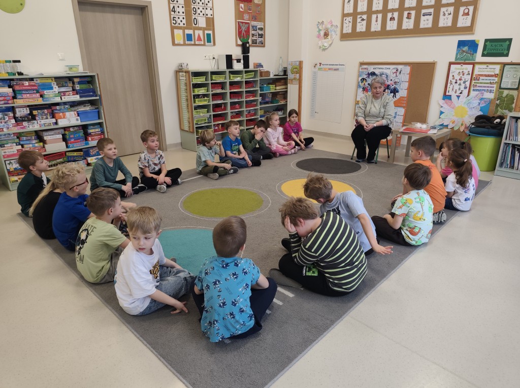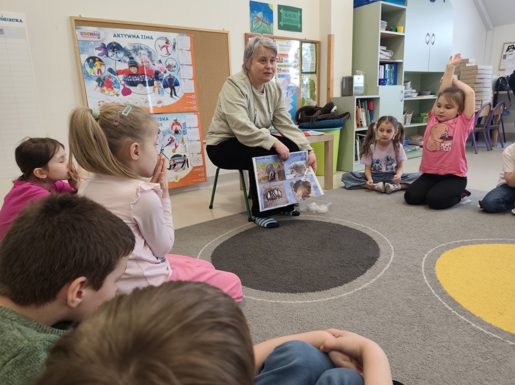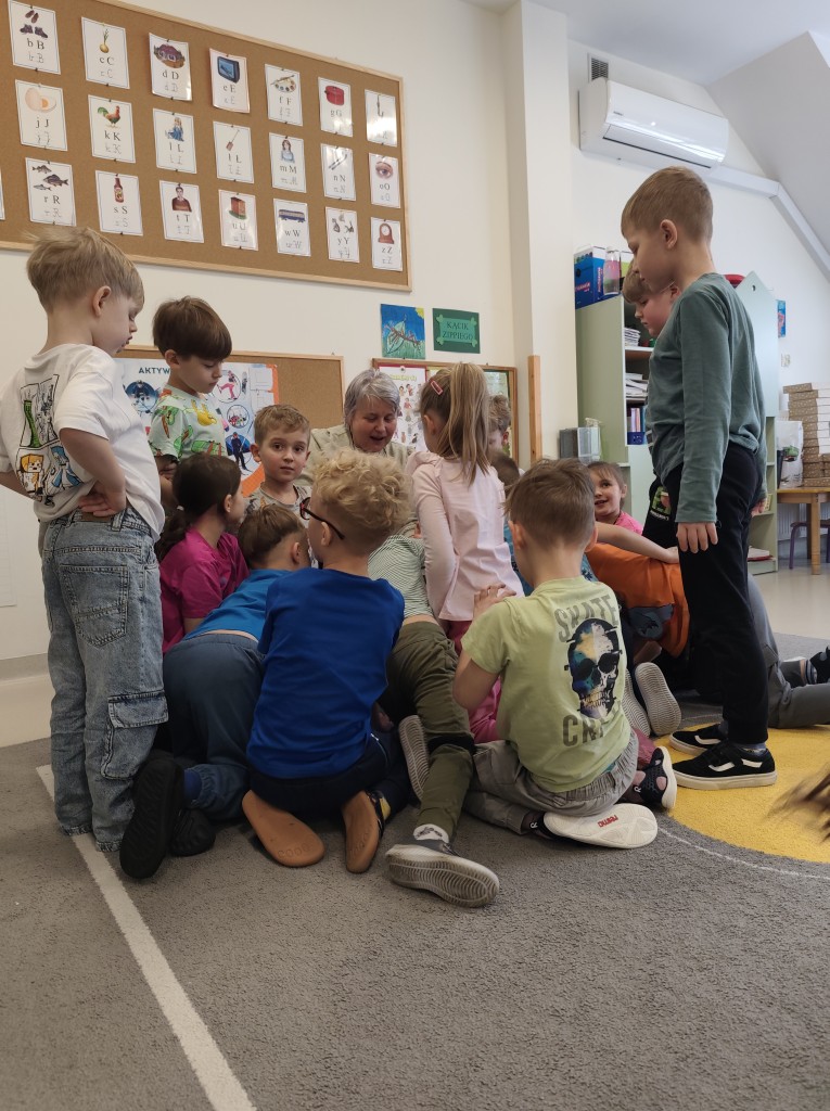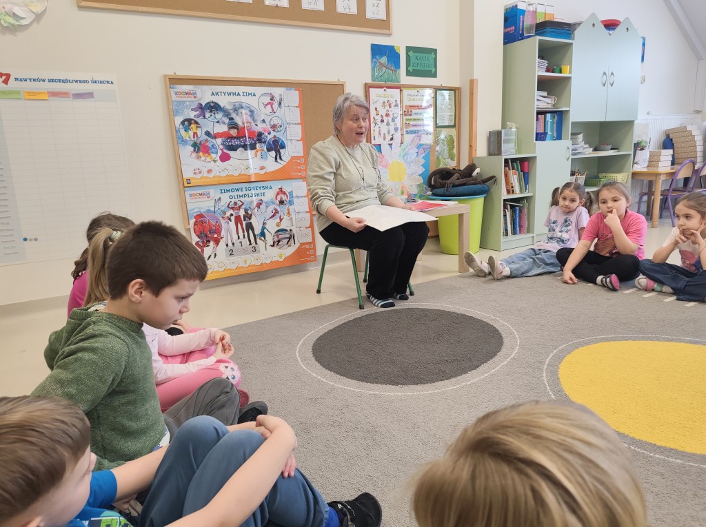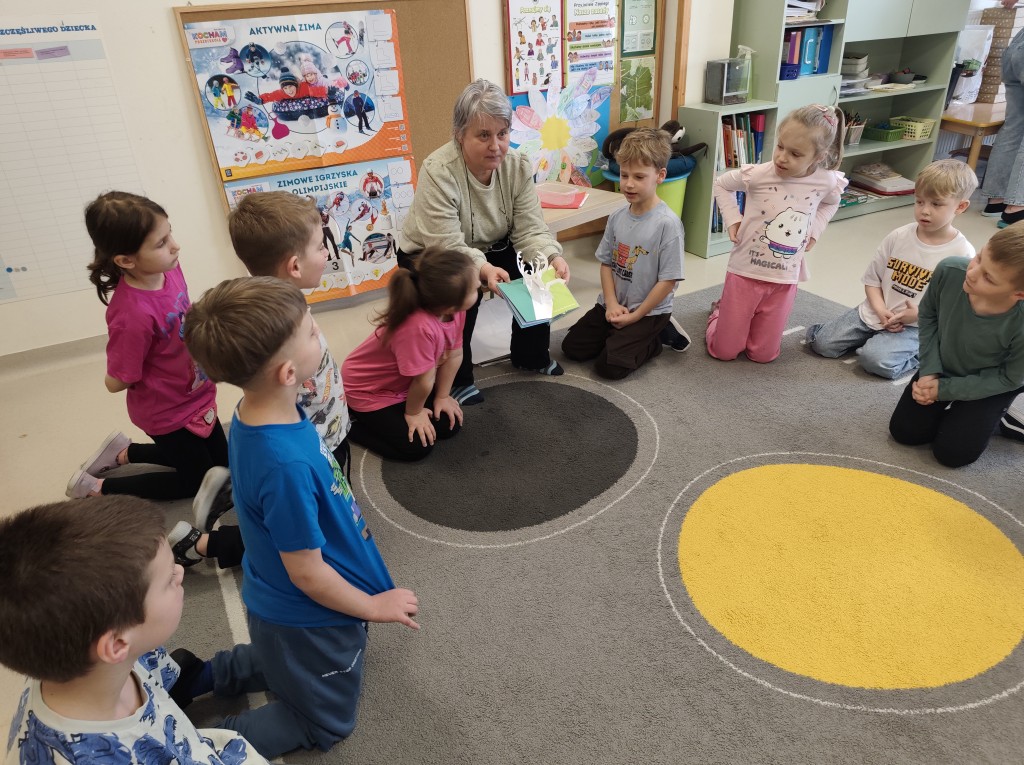 Dnia 28 stycznia wzięliśmy udział w zajęciach bibliotecznych pt. „To i owo na zimowo”, zorganizowanych we współpracy z Biblioteką Pedagogiczną. Podczas spotkania poznaliśmy zimowe opowieści, rozmawialiśmy o tej porze roku oraz wspólnie wykonywaliśmy ciekawe zadania i zabawy tematyczne. Zajęcia były dla nas doskonałą okazją do rozwijania zainteresowań czytelniczych, wyobraźni oraz dalszego poznawania biblioteki jako miejsca pełnego inspirujących książek i pomysłów. Spotkanie upłynęło w miłej, twórczej atmosferze i dostarczyło nam wielu radosnych wrażeń.