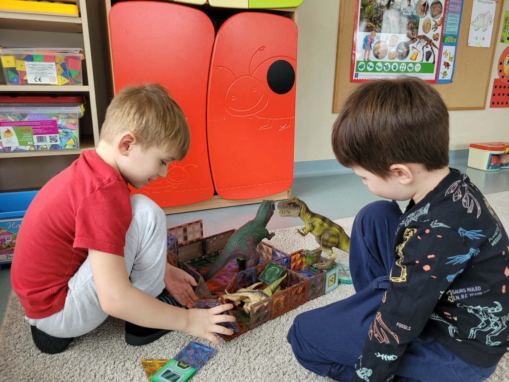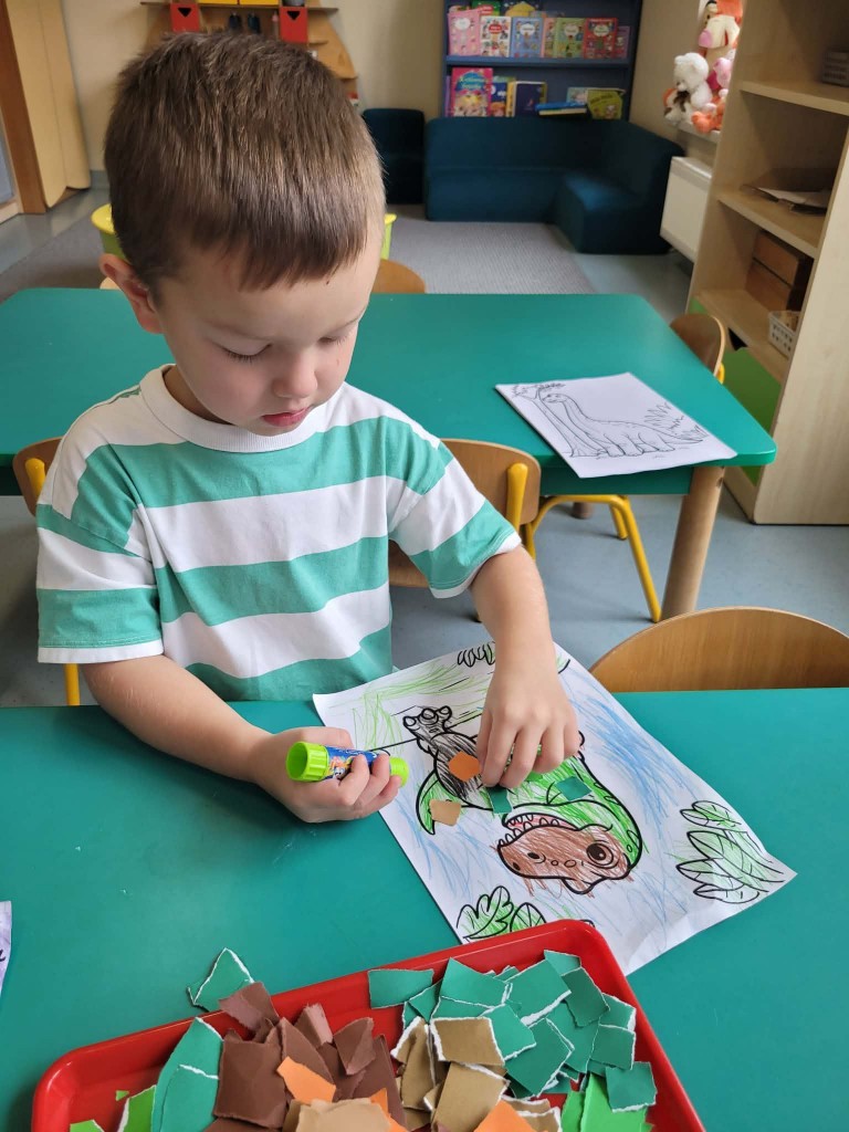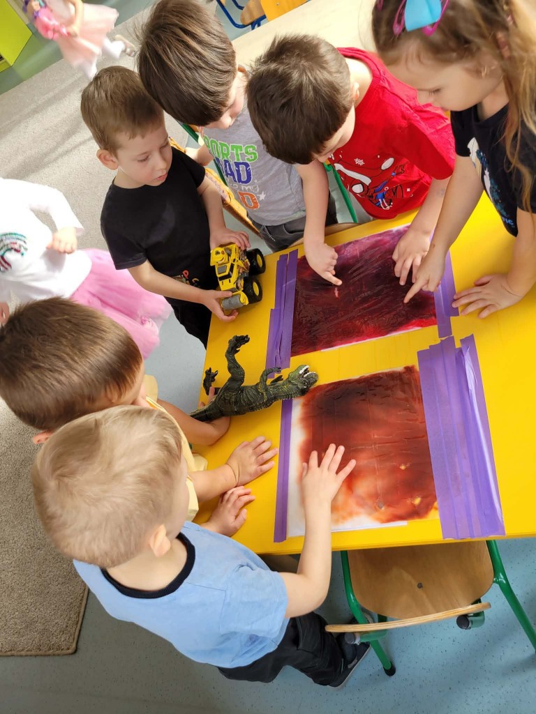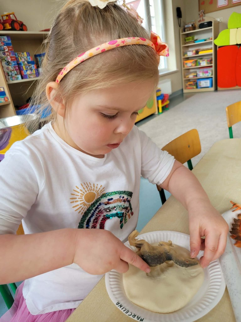 26 lutego świętowaliśmy Dzień Dinozaura. Cały tydzień był fascynującym czasem podróży w czasy gdzie żyły te potężne gady. Mieliśmy okazję zamienić się w paleontologów: doświadczyć jak to jest pracować przy „wykopaliskach” i co można tam znaleźć (skamieniałości) oraz zobaczyć co znajduje się w jajach dinozaura.