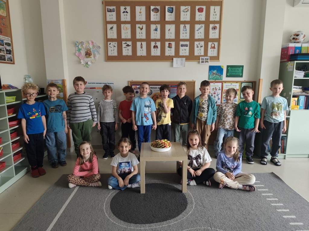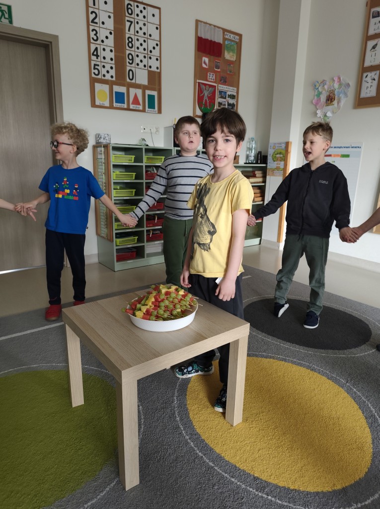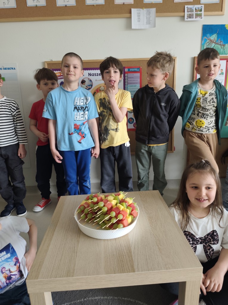 Podczas świętowania nie zabrakło również zdrowego, owocowego poczęstunku. Z apetytem zajadaliśmy się pysznymi i kolorowymi owocami, które dodały nam energii i wprawiły nas w jeszcze lepszy nastrój.