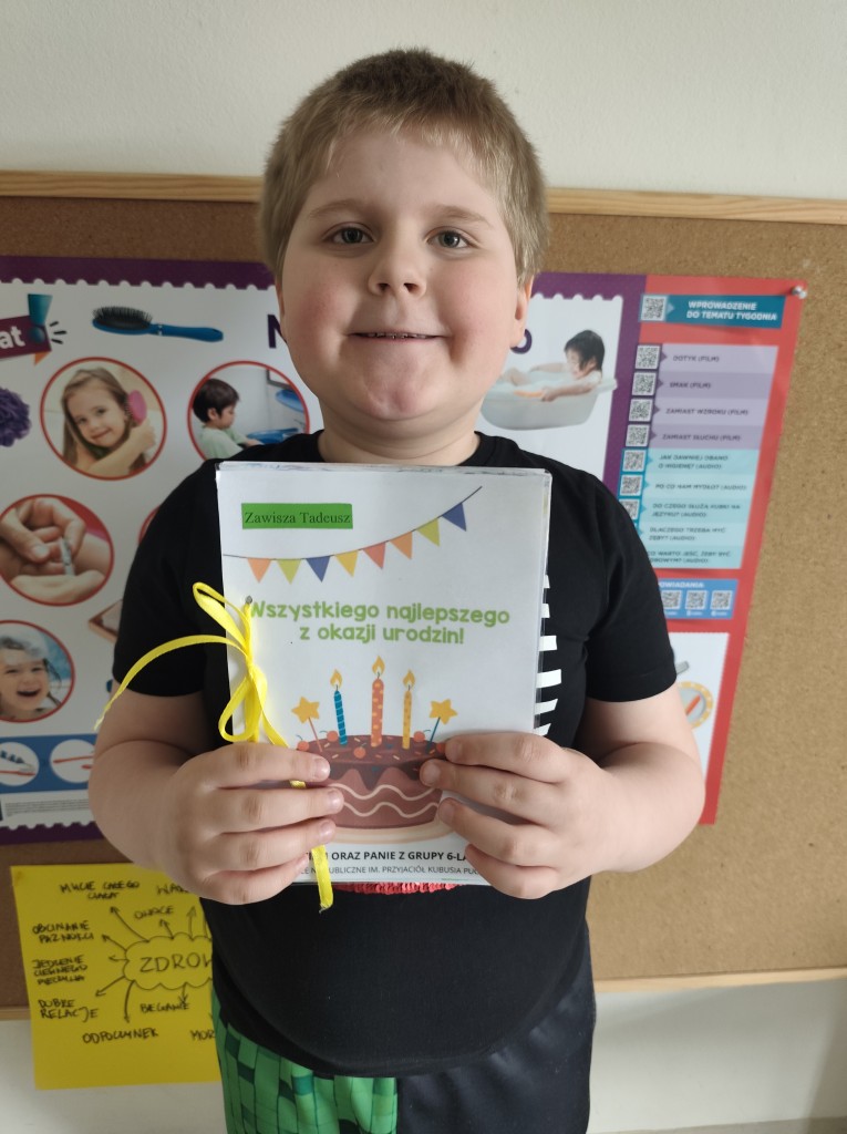 W kwietniu w naszej grupie świętowaliśmy kolejne urodziny. Był to dla nas bardzo radosny i wyjątkowy czas! Z tej okazji przygotowaliśmy wspólnie miłą niespodziankę – wykonaliśmy książeczkę urodzinową, w której każdy z nas umieścił rysunki oraz serdeczne słowa dla solenizanta. Włożyliśmy w to dużo serca i pracy, aby sprawić im radość.