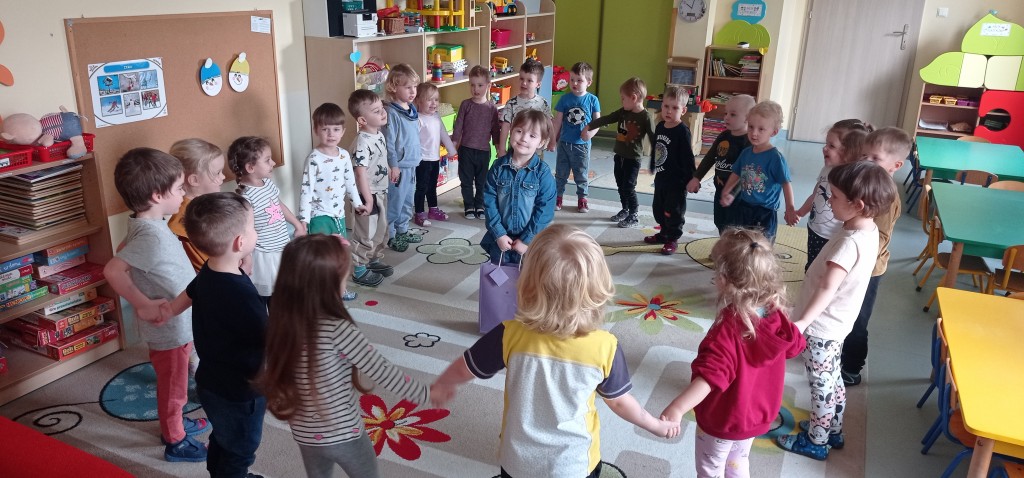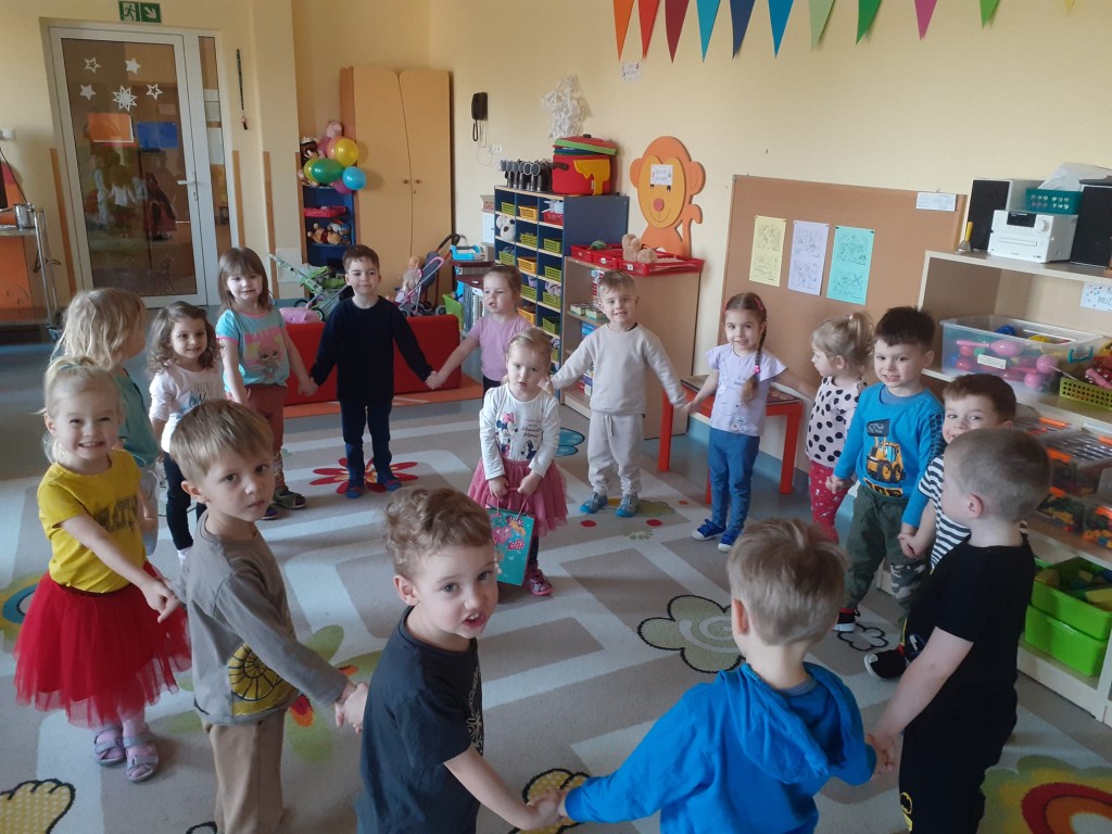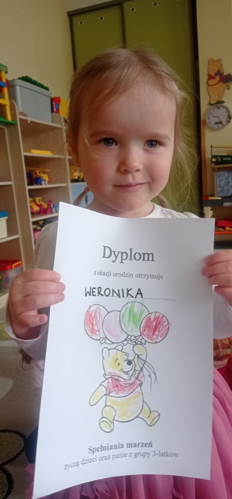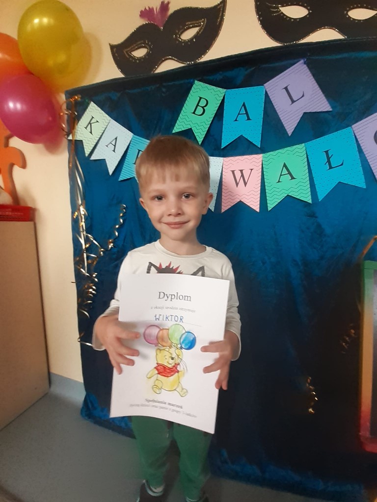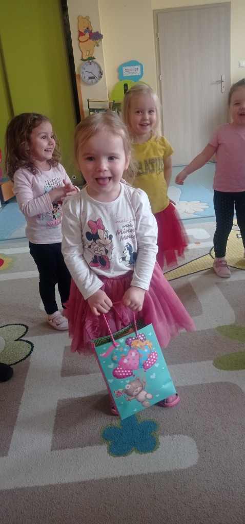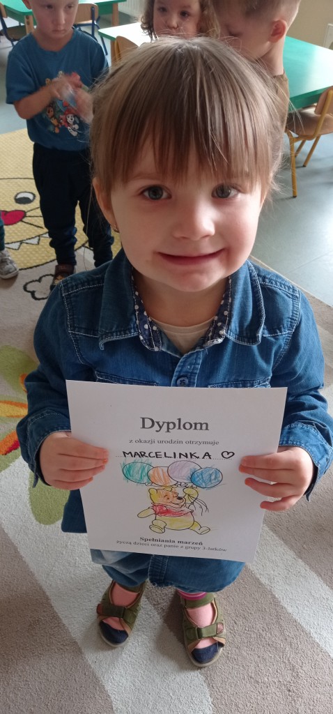 Po tej oficjalnej części urodzin czekała na nas niespodzianka w postaci słodkiego poczęstunku przygotowanego przez rodziców solenizantów, za który serdecznie dziękujemy! Na pamiątkę urodzin w przedszkolu solenizanci otrzymali od nas wyjątkowe dyplomy.