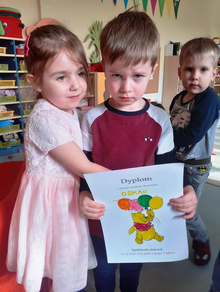 Wszystkiego najlepszego życzymy Wojtkowi B. Oskarowi i Maksowi to właśnie oni swoje urodziny świętowali w marcu. Po odśpiewaniu „100 lat” złożeniu życzeń jubilatom, mogliśmy uczestniczyć we wspaniałym poczęstunku, który przygotowali rodzice.