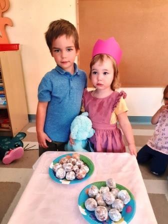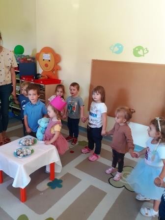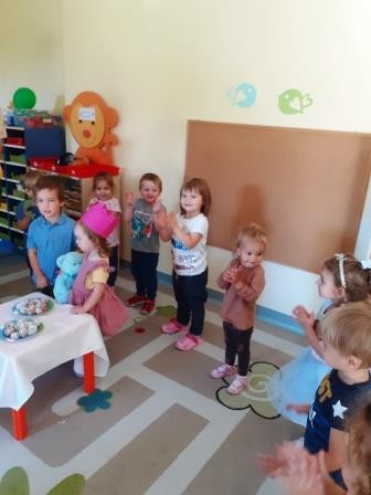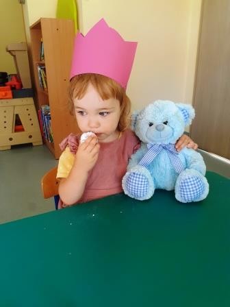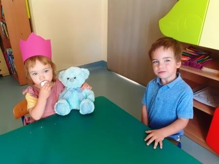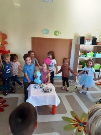 Pierwszy miesiąc naszej przygody w przedszkolu był okazją do świętowania urodzin Heleny. Za sprawą wyjątkowego dla naszej koleżanki święta wdrażaliśmy się do wspólnego śpiewania „Sto lat”, a także składania życzeń. Nie zabrakło również słodkiego poczęstunku przygotowanego przez rodziców naszej koleżanki.
