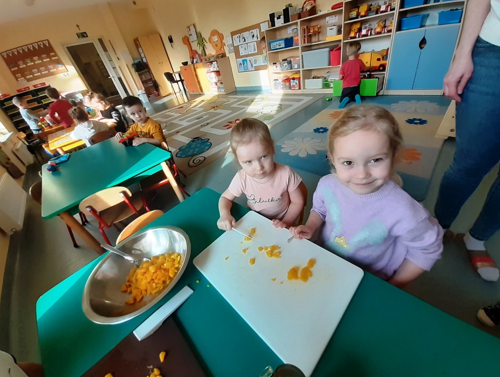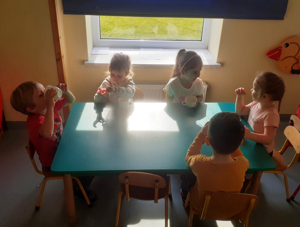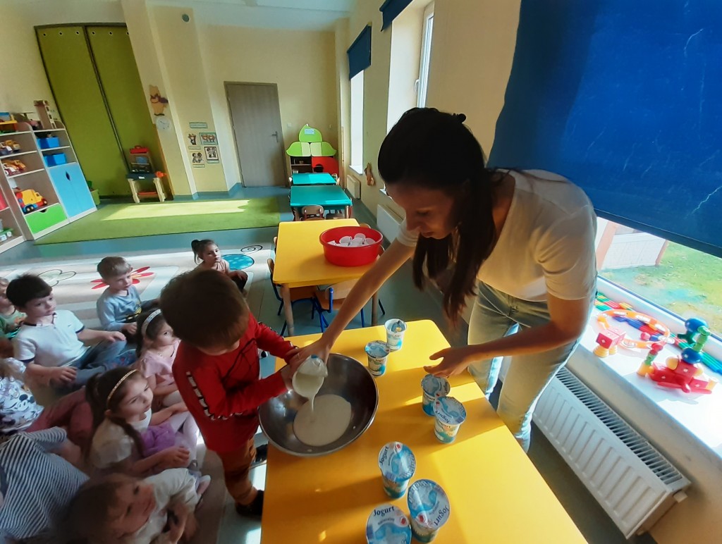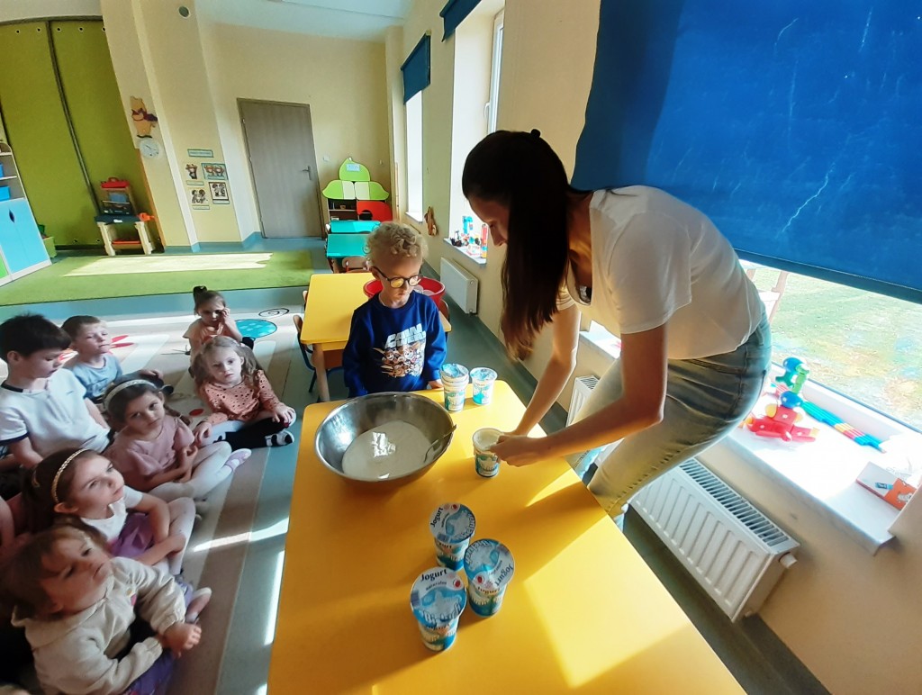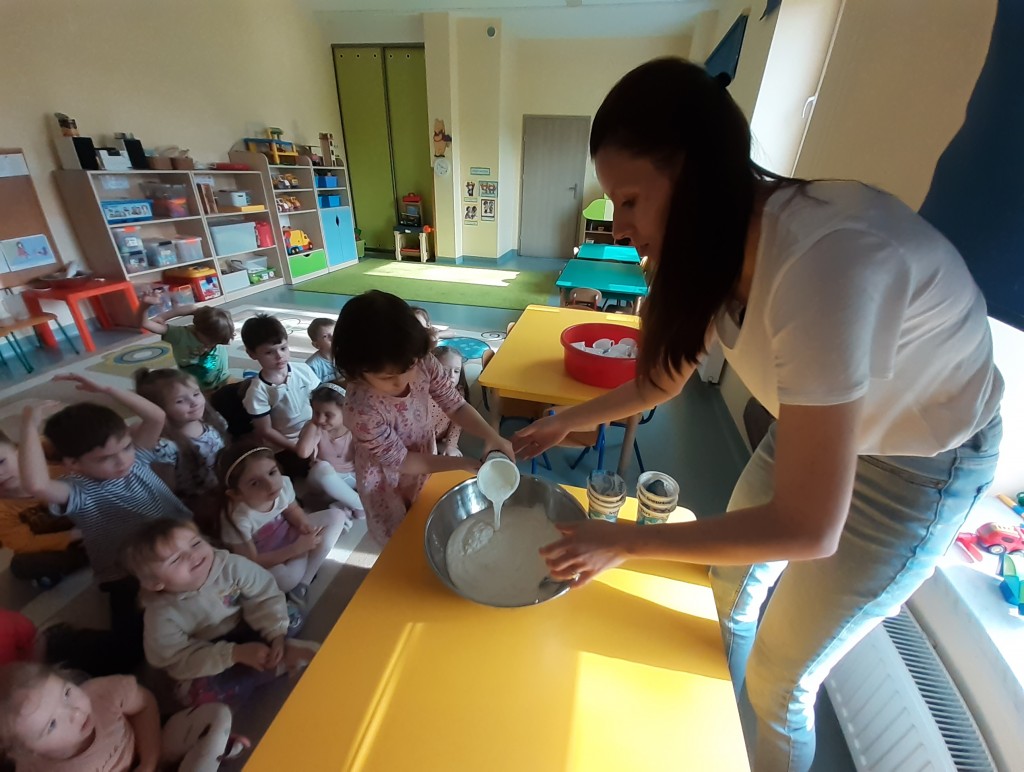 Realizując tematykę tygodnia związaną z urządzeniami elektrycznymi mieliśmy możliwość poszerzyć wiedzę na ich temat. Poznawaliśmy nazwy, wygląd i działanie urządzeń elektrycznych, które ułatwiają nam życie codzienne. Działanie niektórych z nich poznawaliśmy w praktyce- odkurzacz, blender. Blender wykorzystaliśmy do zrobienia jogurtu naturalnego o smaku brzoskwiniowym. W tym tygodniu również mogliśmy zaprojektować lampkę nocną wykorzystując do tego skrawki kolorowych tkanin.