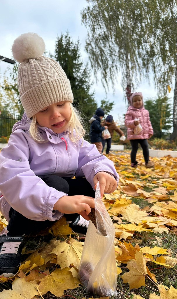 W naszym przedszkolu nie brakuje okazji do nauki przez zabawę – zwłaszcza, gdy za oknem króluje piękna, kolorowa jesień! W ostatnich dniach wyruszyliśmy na spacer w poszukiwaniu darów jesieni. Z wielkim zaangażowaniem zbieraliśmy kasztany, żołędzie, szyszki i kolorowe liście. Podczas spaceru doskonaliliśmy umiejętność obserwacji i rozpoznawania przyrodniczych skarbów, ale również rozmawialiśmy o tym, jak przyroda przygotowuje się do zimy.
