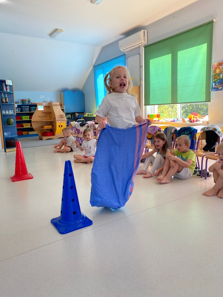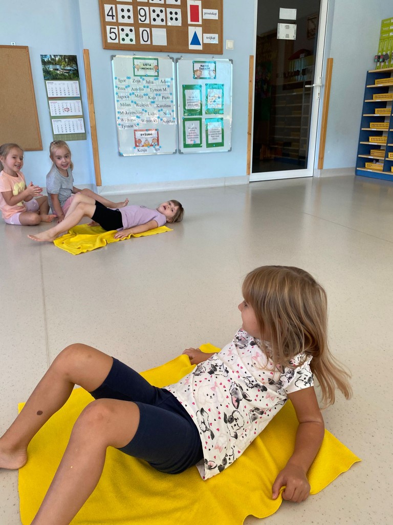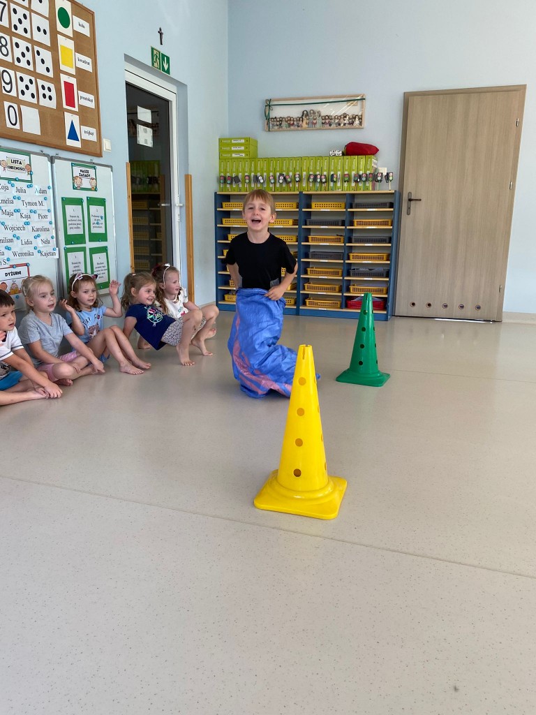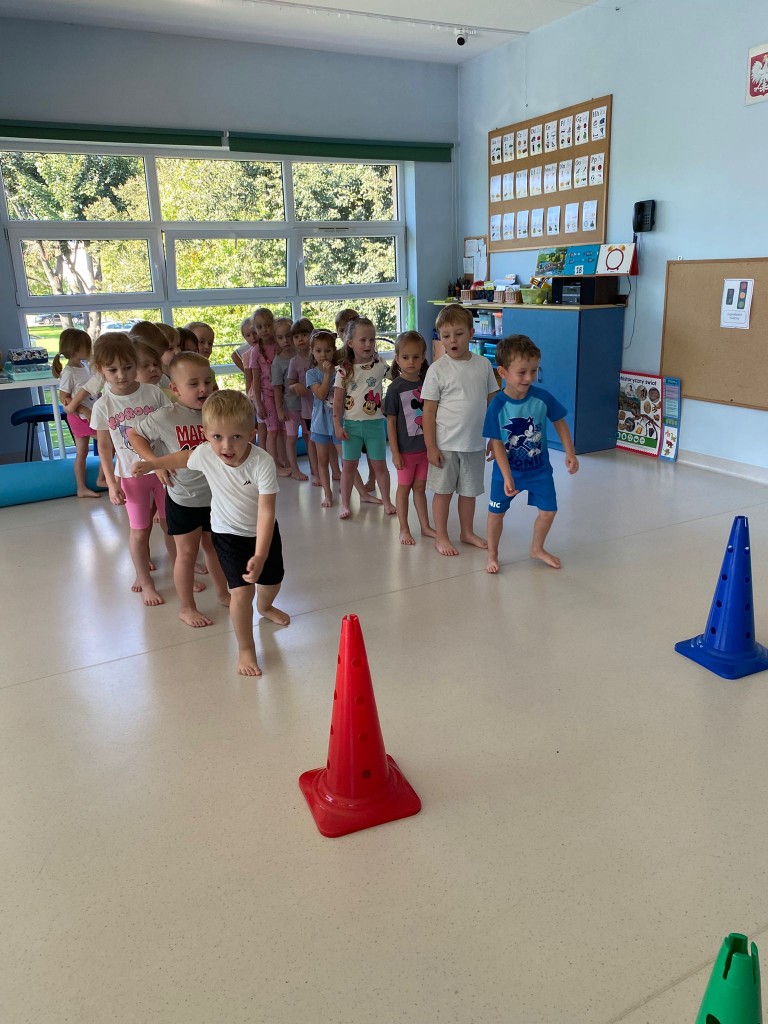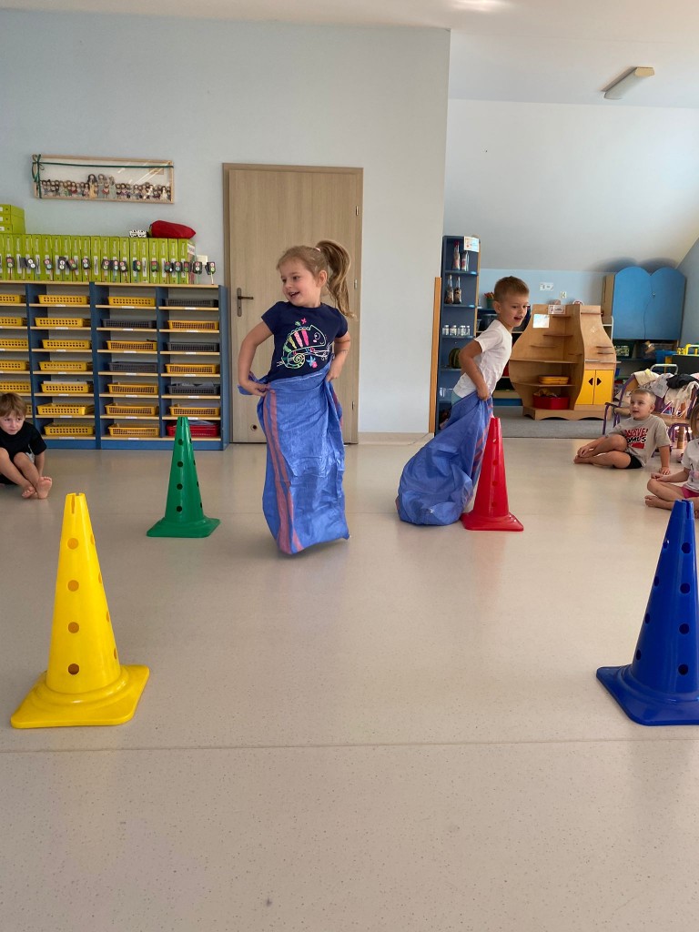 Bardzo lubimy przebierać się w stroje gimnastyczne i w nich ćwiczyć, a najbardziej lubimy ze sobą rywalizować. Wiemy, że ruch to zdrowie, a na co dzień mamy energii co niemiara! Takie zajęcia pozwalają nam ją efektywnie spożytkować, a przy tym uczą nas szybkiej reakcji, rozwijają naszą zwinność, szybkość, wzmacniają siłę naszych mięśni, kształtują prawidłową postawę. A ile jest przy tym radości ze wspólnej zabawy i dopingowania sobie nawzajem