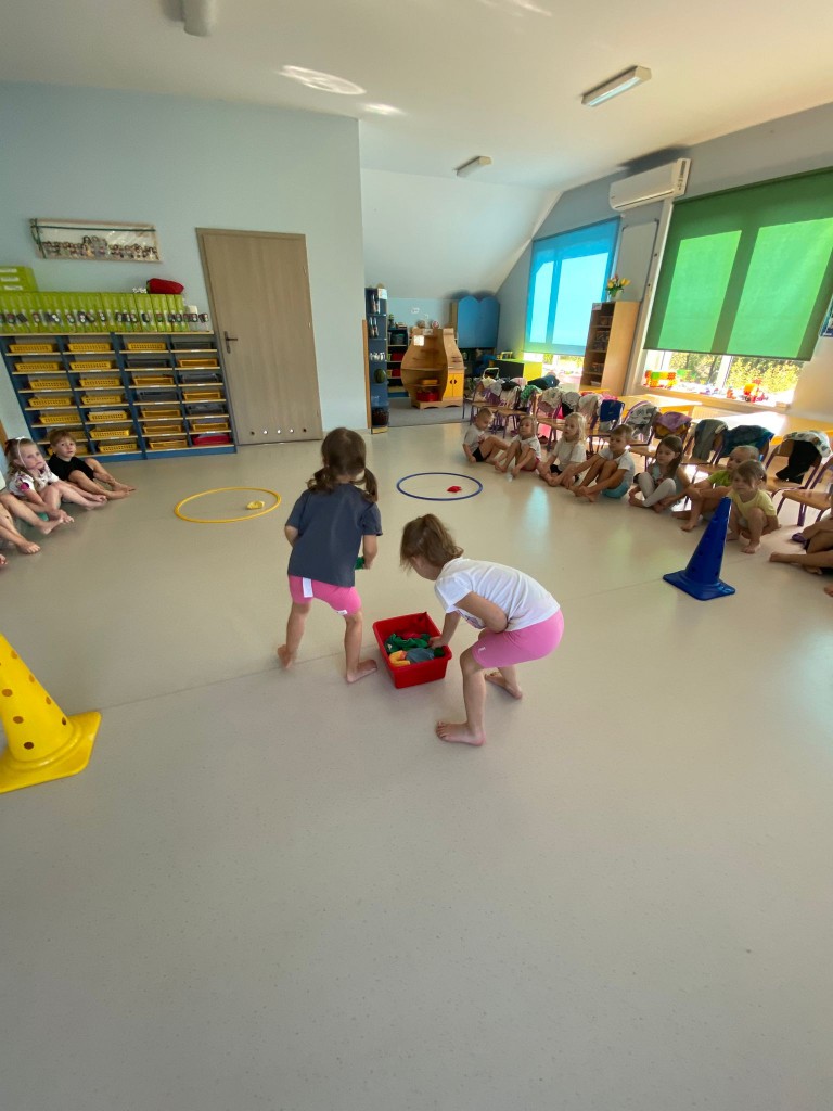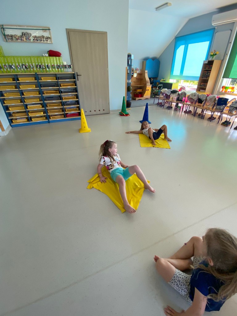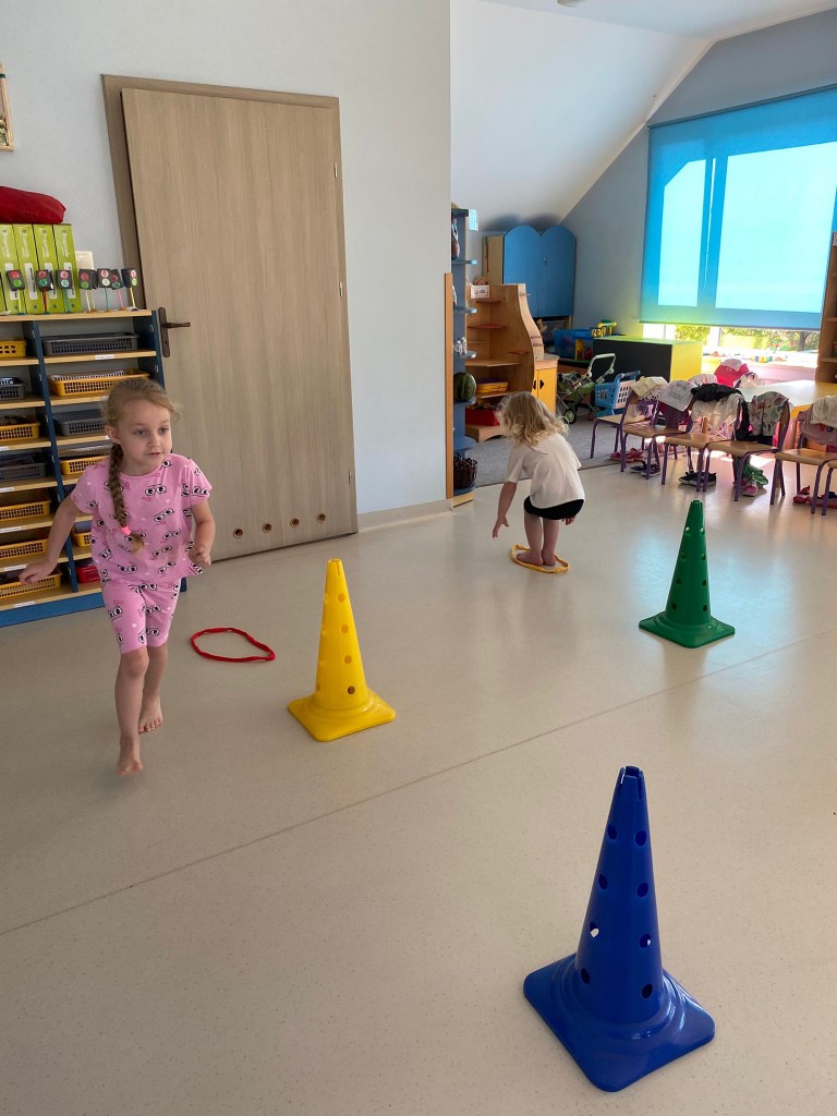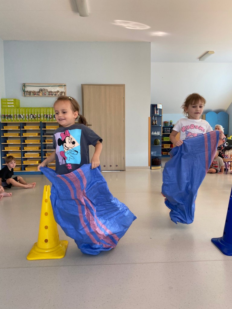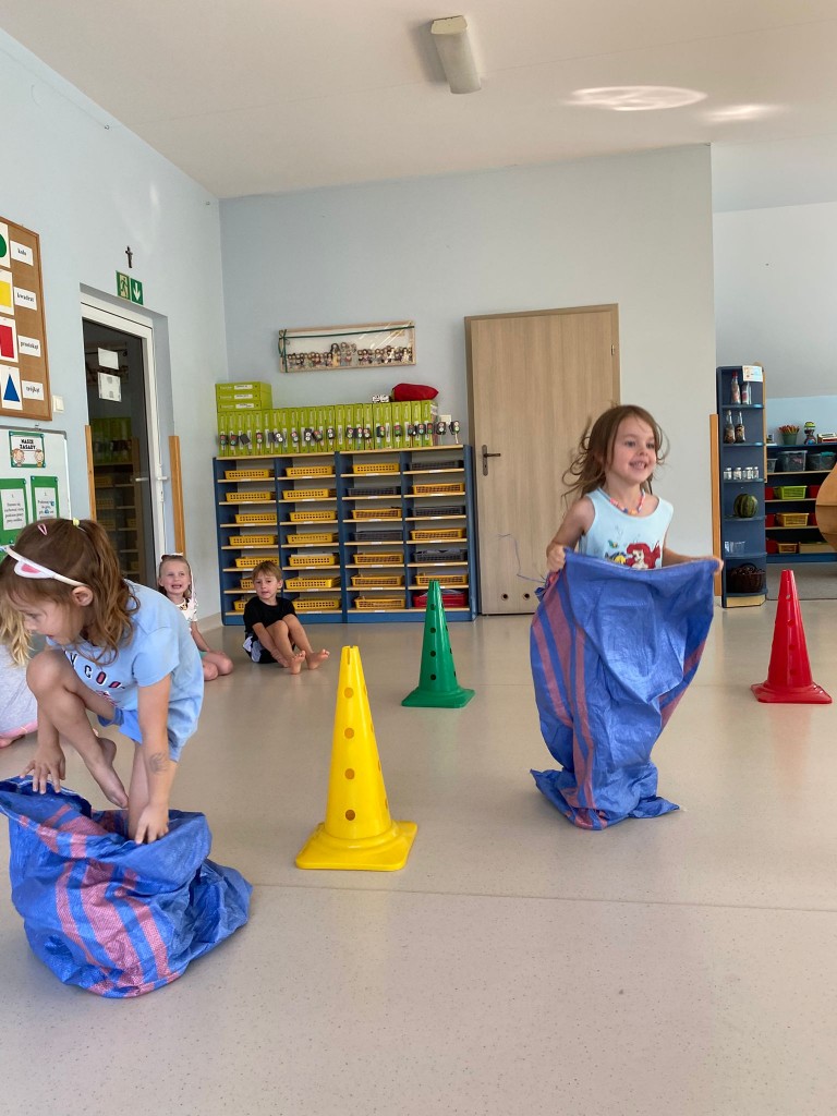 Bardzo lubimy przebierać się w stroje gimnastyczne i w nich ćwiczyć, a najbardziej lubimy ze sobą rywalizować. Wiemy, że ruch to zdrowie, a na co dzień mamy energii co niemiara! Takie zajęcia pozwalają nam ją efektywnie spożytkować, a przy tym uczą nas szybkiej reakcji, rozwijają naszą zwinność, szybkość, wzmacniają siłę naszych mięśni, kształtują prawidłową postawę. A ile jest przy tym radości ze wspólnej zabawy i dopingowania sobie nawzajem