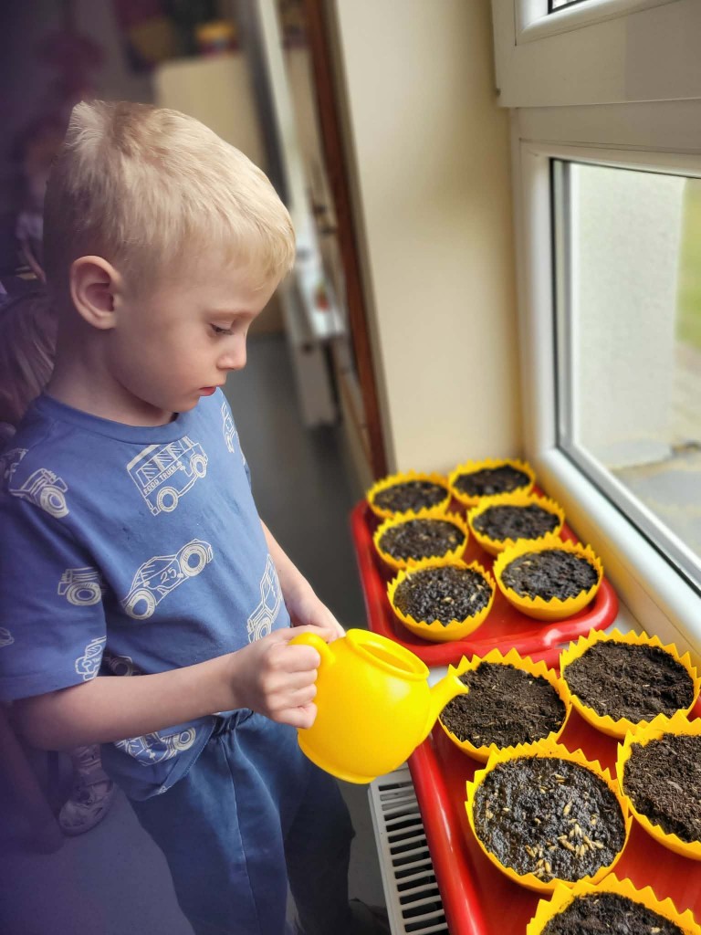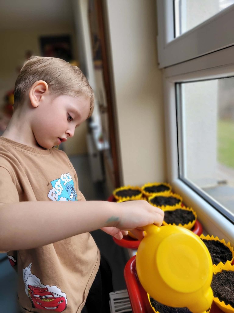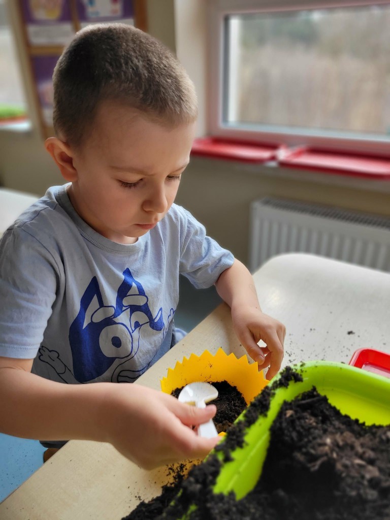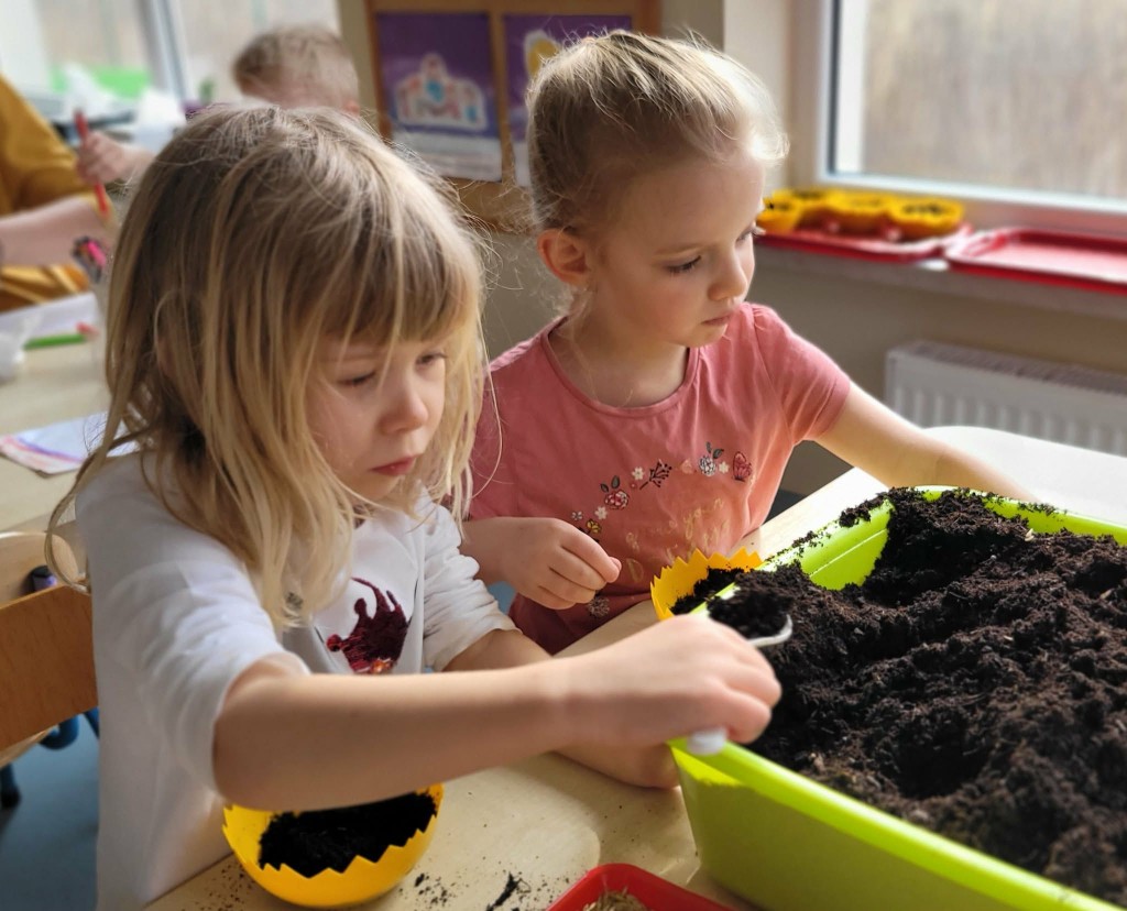 W ostatnich dniach w naszej grupie panowała prawdziwie wiosenna i świąteczna atmosfera. W ramach przygotowań do Świąt Wielkanocnych posialiśmy owies, ucząc się przy tym cierpliwości i systematycznej troski o rośliny. Każdego dnia z ciekawością obserwowaliśmy, jak z małych ziarenek wyrastają zielone źdźbła.