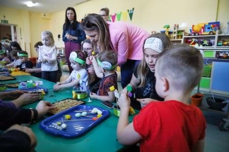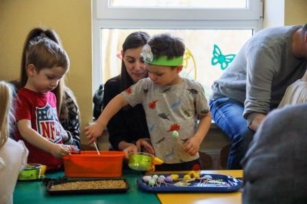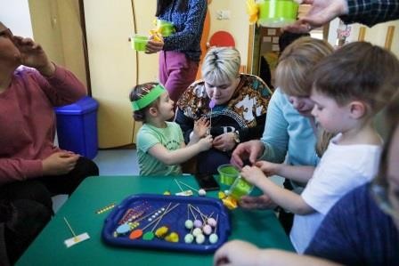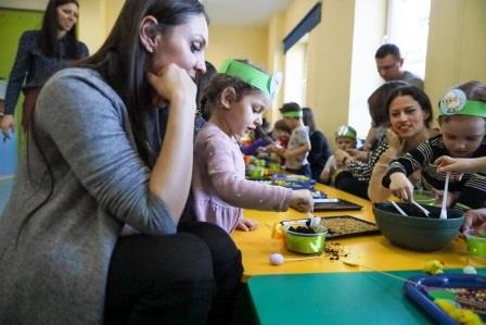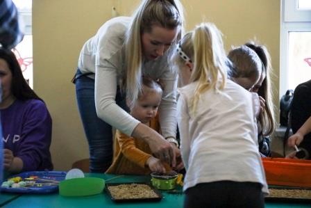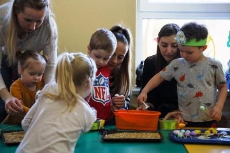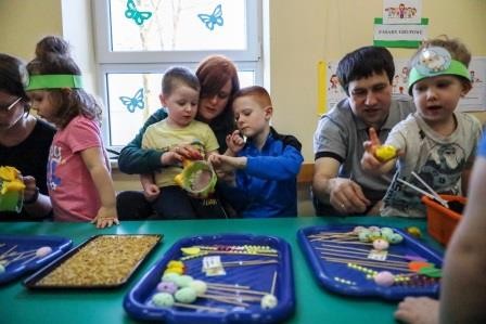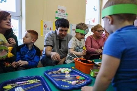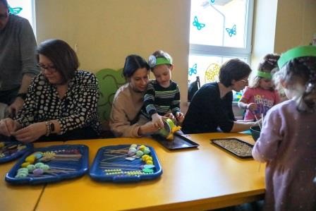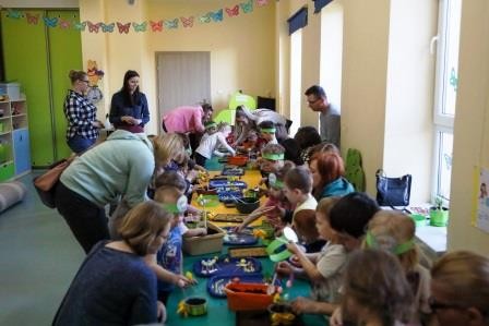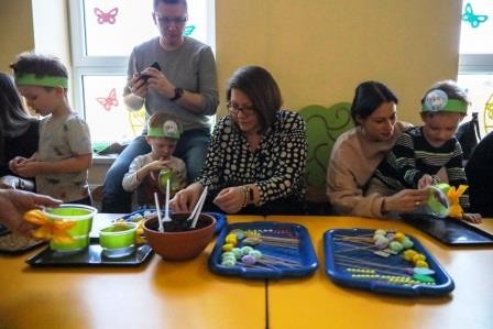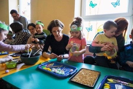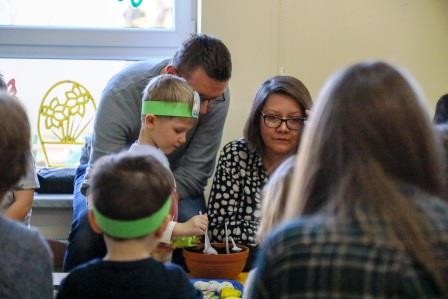Zajęcia wprowadziły nas w radosną atmosferę nadchodzących świąt, która przyczyniła się do złożenia życzeń. A uwieńczeniem tego dnia był długo wyczekiwany przez dzieci warsztat plastyczny, w którym, to właśnie one wspólnie z rodzicami mogły zasiać owies, a następnie go udekorować. Wykonany stroik z owsa, który jest symbolem życia stał się idealną dekoracją Wielkanocnego stołu.