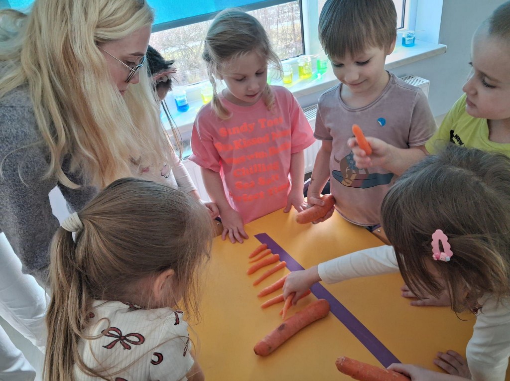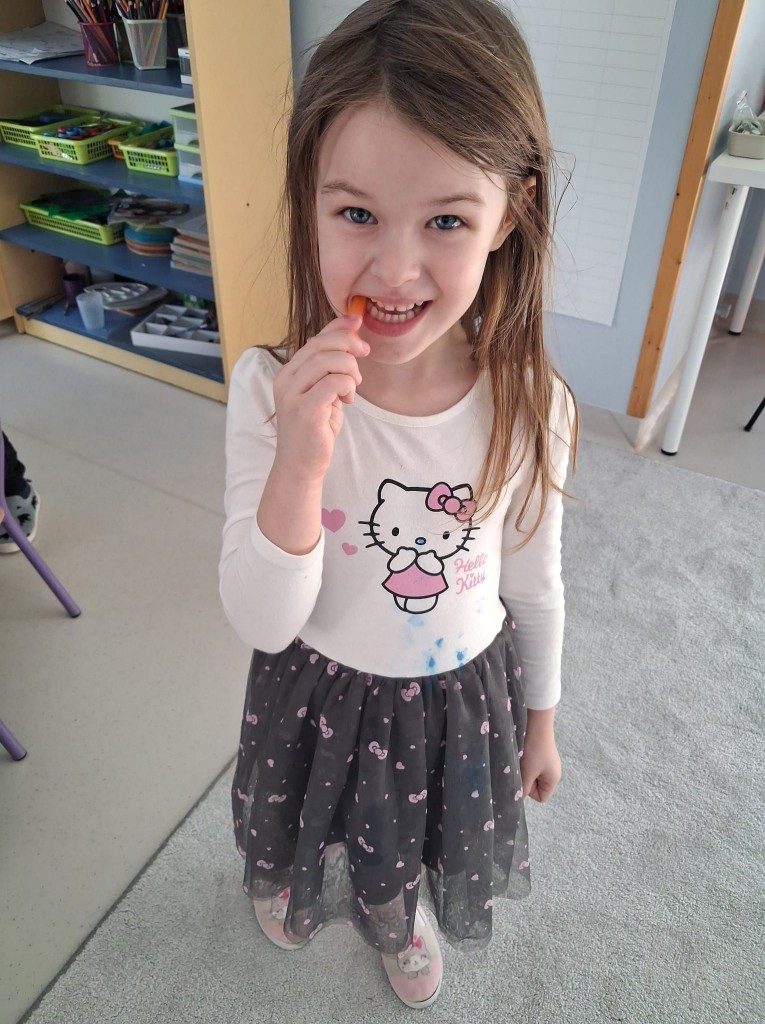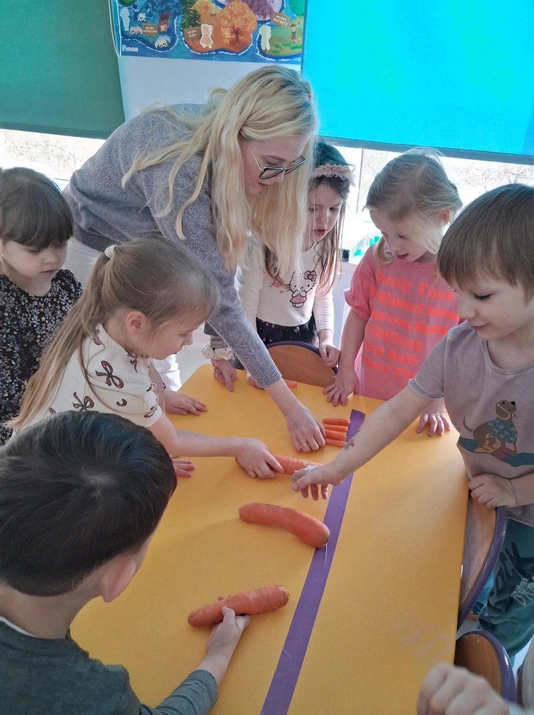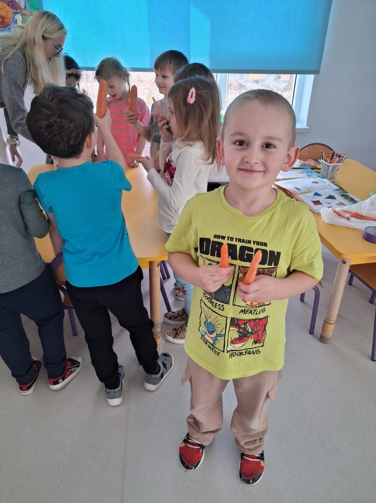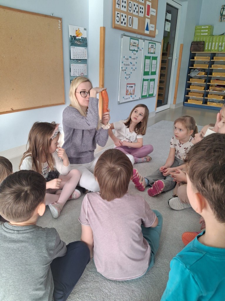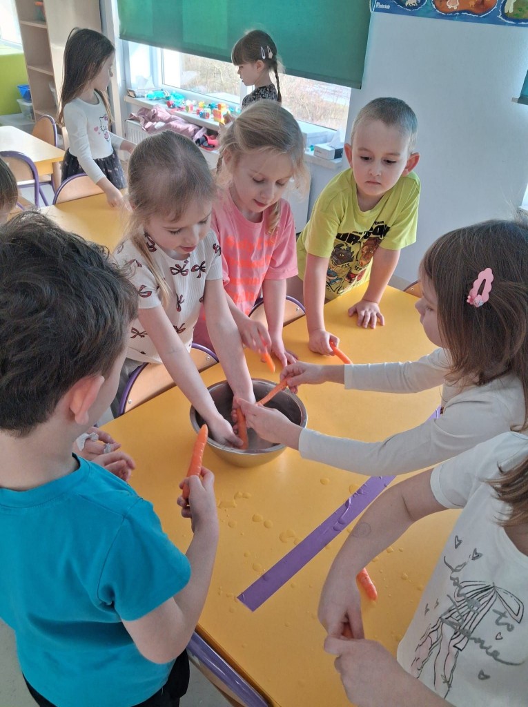 W lutym, w ramach projektu “Witaminki” pod patronatem “Bliżej przedszkola”, poznaliśmy bliżej marchewkę. Dowiedzieliśmy, jakie właściwości ma te warzywo, zabawiliśmy się w marchewkową matematykę, w czasie której porównywaliśmy kształty i wielkości marchewek. Mieliśmy także okazję posmakować marchewki na surowo, a także skosztować przepysznej surówki przygotowanej przez nasze wspaniałe Panie kucharki.