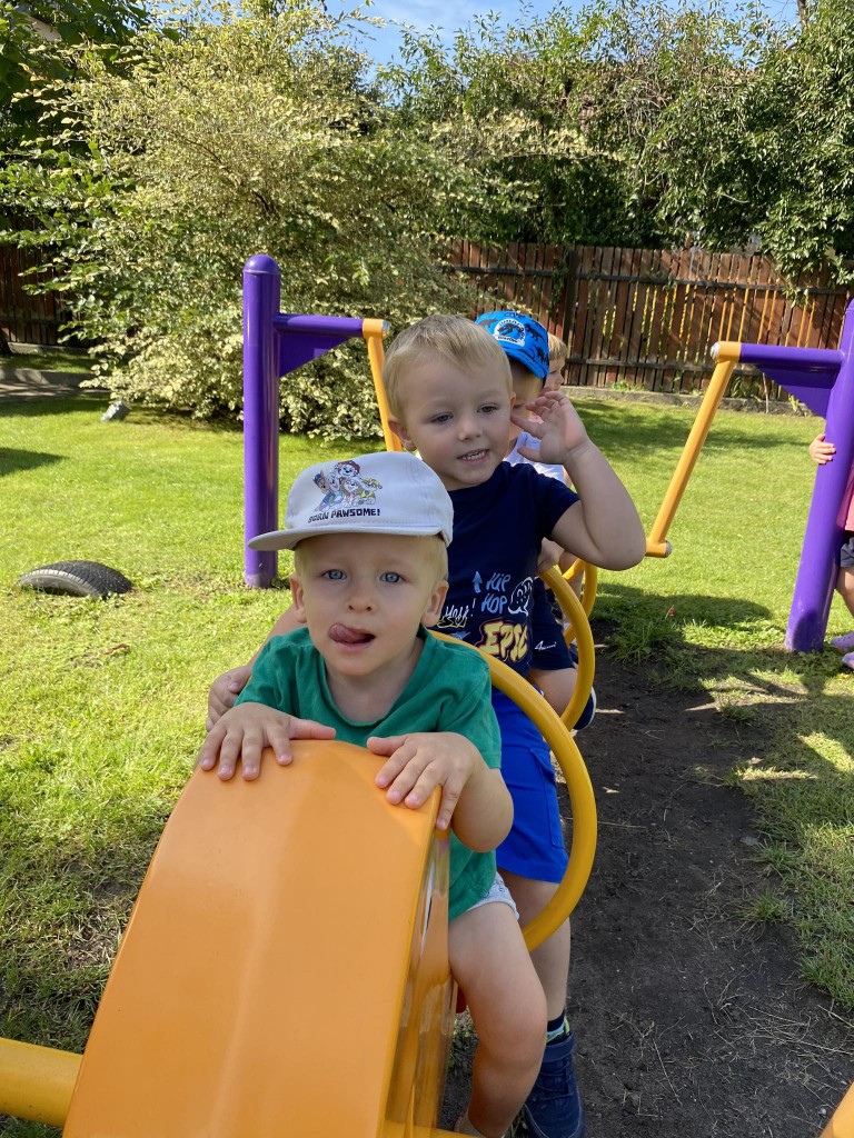 Dzieci chętnie uczęszczają do przedszkola. Są pogodne, otwarte i aktywne zarówno podczas zabaw dowolnych, jak i zorganizowanych. Ogromną radość sprawiają im także zabawy na świeżym powietrzu.