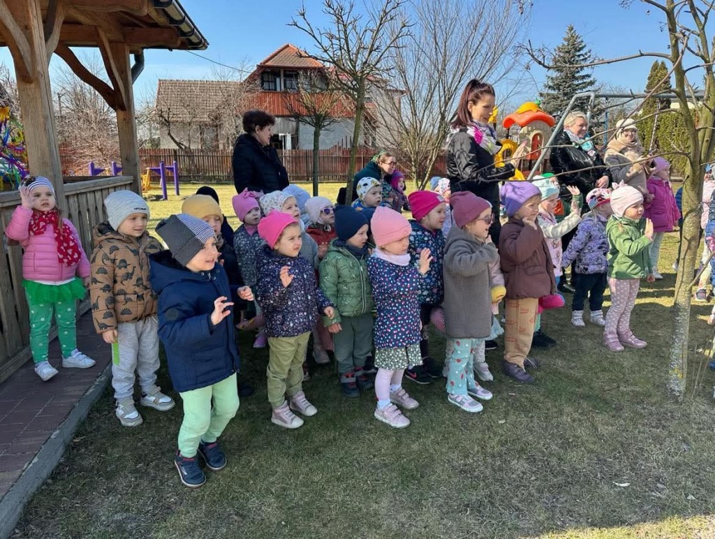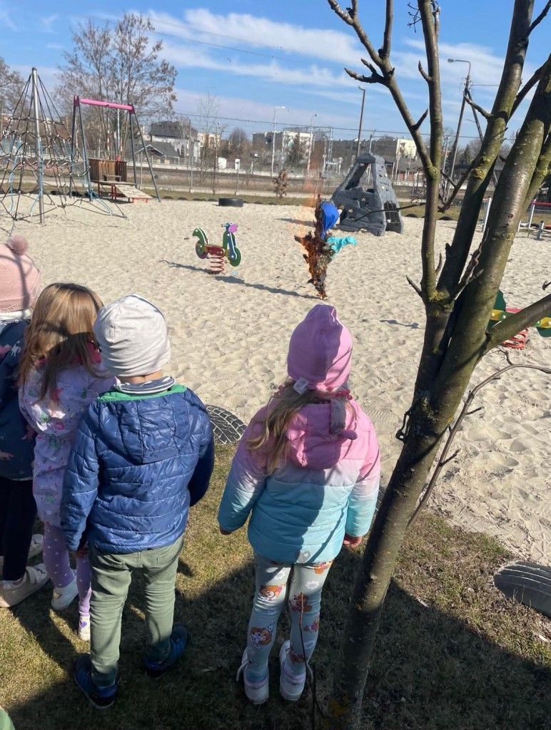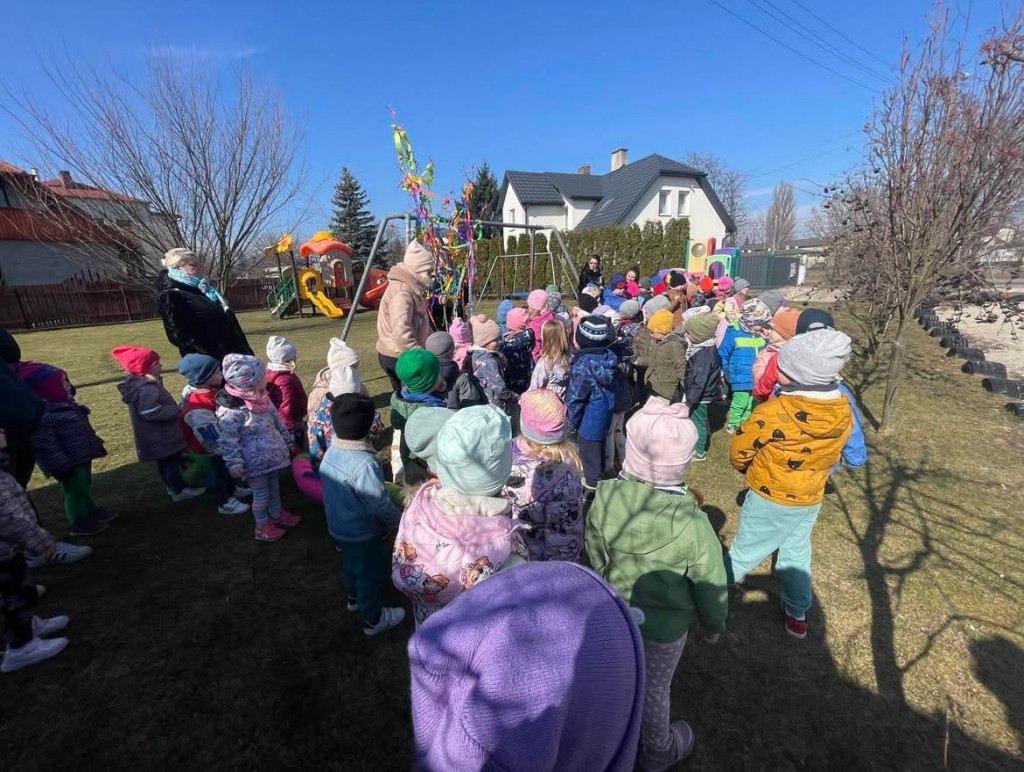 Dnia 21 marca obchodziliśmy w naszej grupie Pierwszy Dzień Wiosny. Z tej okazji wszystkie dzieci w tym dniu przyszły ubrane na zielono. Zabawę rozpoczęliśmy od szukania zielonych przedmiotów znajdujących się w naszej sali, rozwiązywaliśmy zagadki związane wiosną, omawialiśmy pierwsze oznaki wiosny, ptaki, zwierzęta, które wracają do nas na wiosnę z ciepłych krajów, bądź budzą się z zimowego snu. Następnie poznaliśmy dawny zwyczaj palenia Marzanny, która symbolizuje odchodzącą zimę oraz Gaik – Maik, który przypominał nadchodzącą wiosnę.