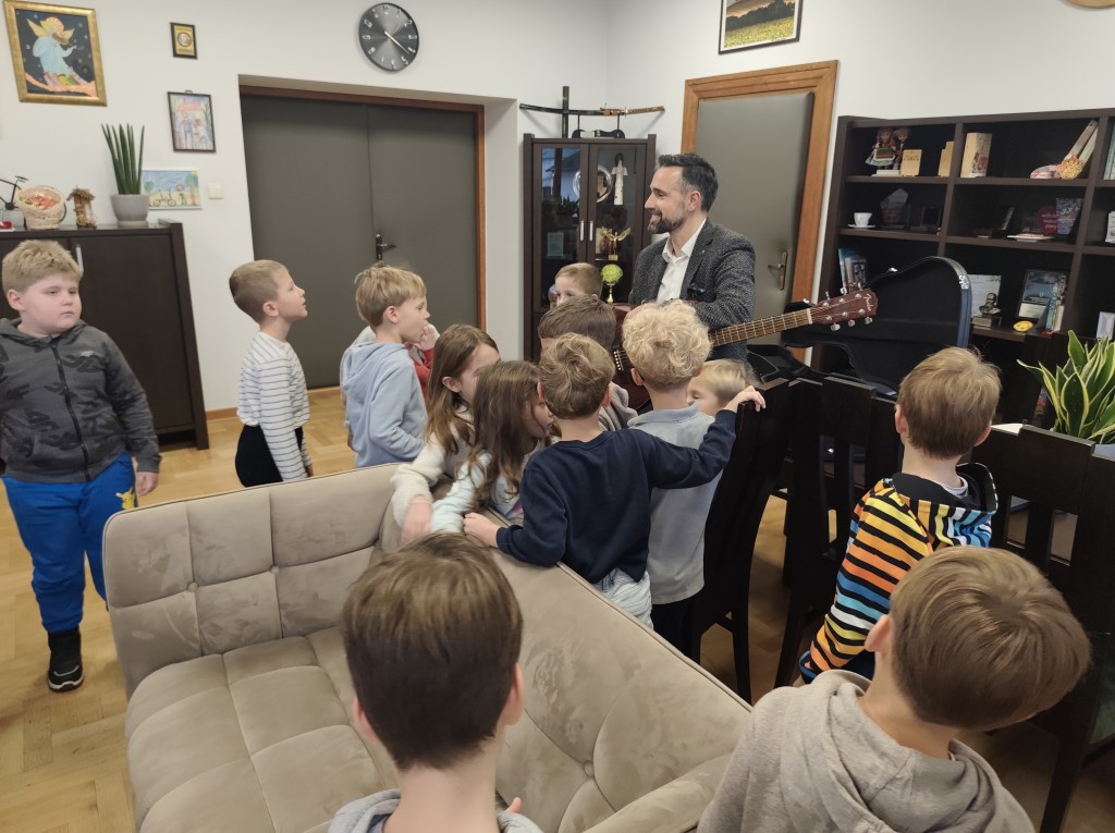Z ogromnym zainteresowaniem słuchaliśmu opowieści o funkcjonowaniu miasta, zadawaliśmy wiele ciekawych pytań i wysłuchaliśmy piosenki w wykonaniu włodarza miasta.