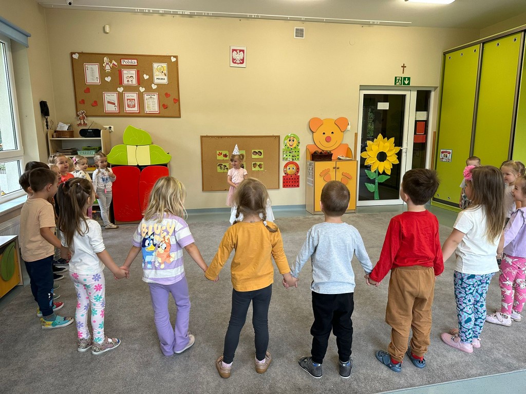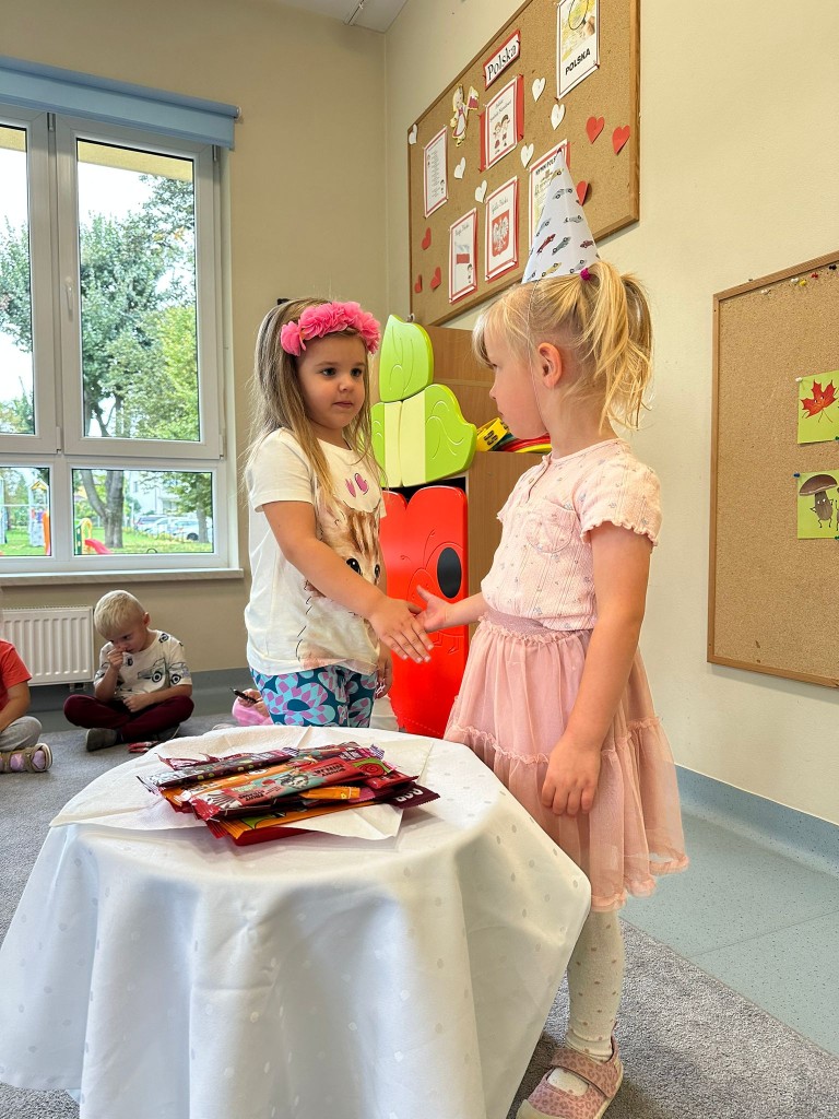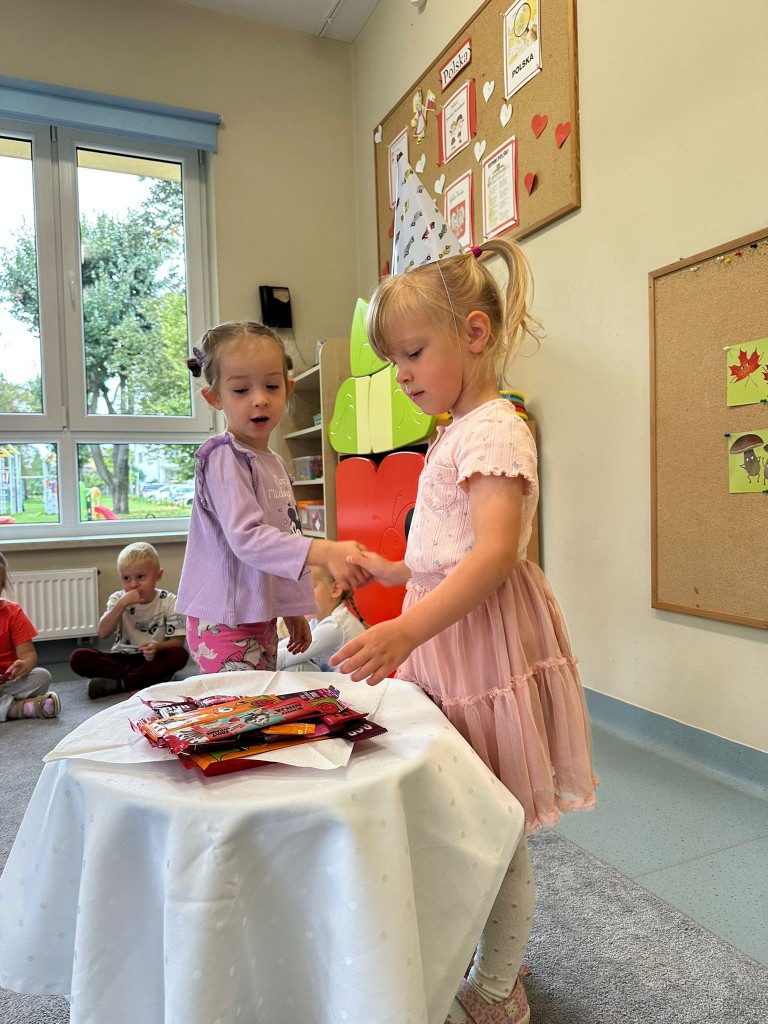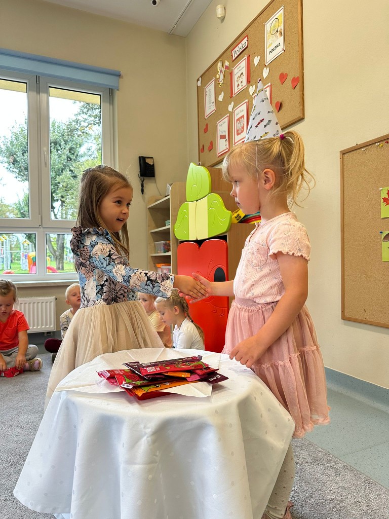 We wrześniu w naszej grupie świętowaliśmy urodziny Juli Dz. Był poczęstunek, „Sto lat!”, wspólne zabawy i dużo uśmiechu. Julka z dumą nosiła urodzinową czapeczkę, a my wykonaliśmy dla niej pamiątkowe kolorowanki, z których powstała piękna urodzinowa książka.