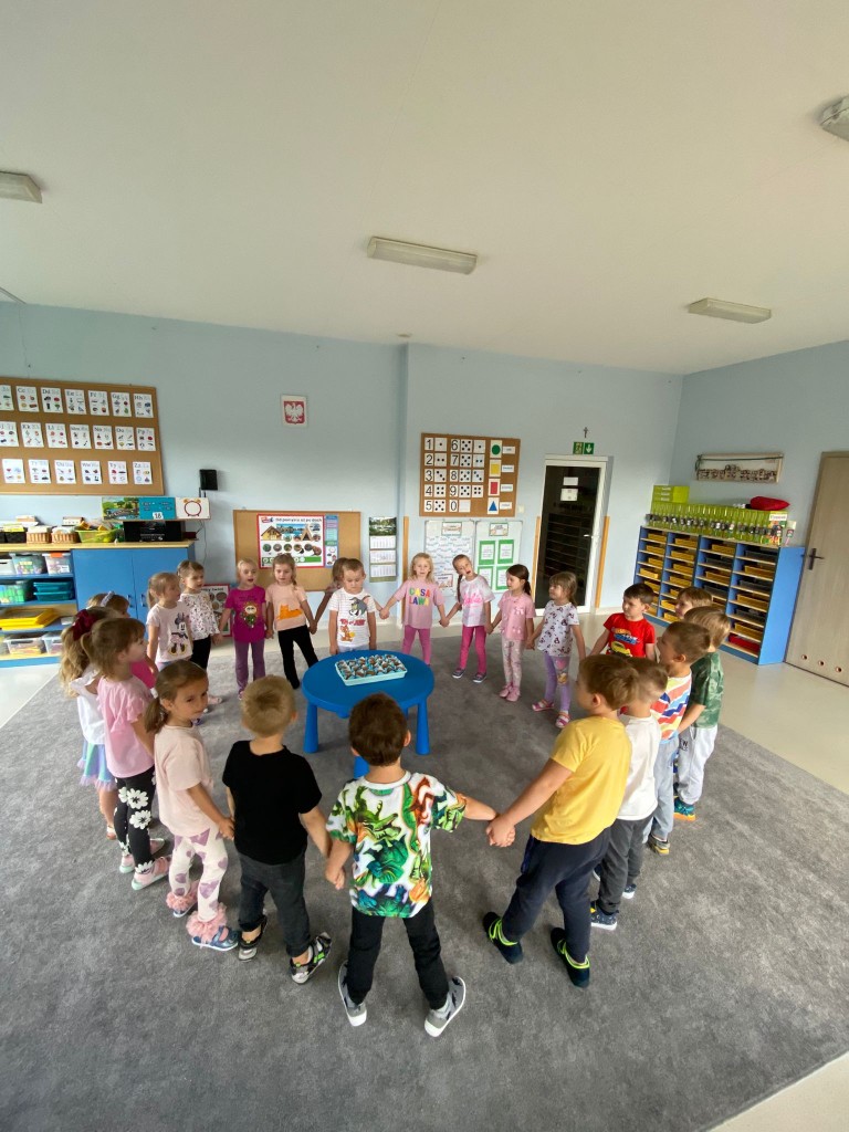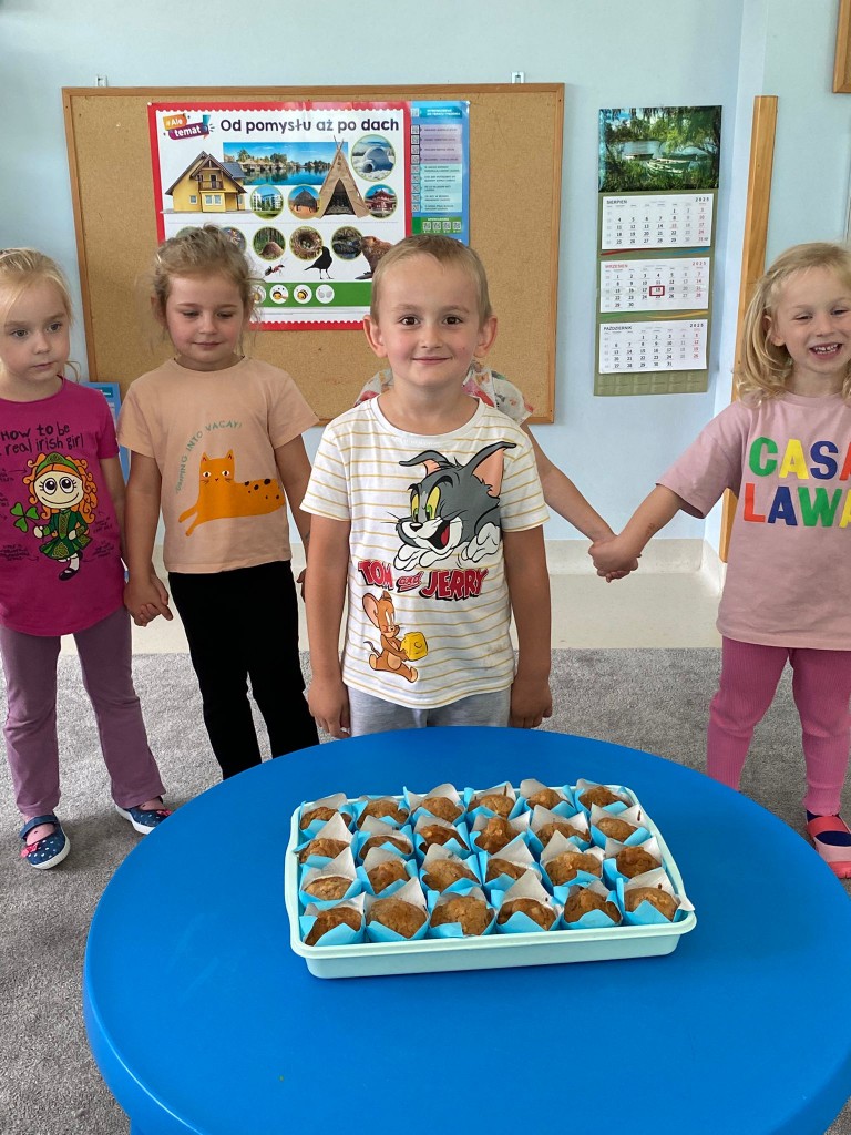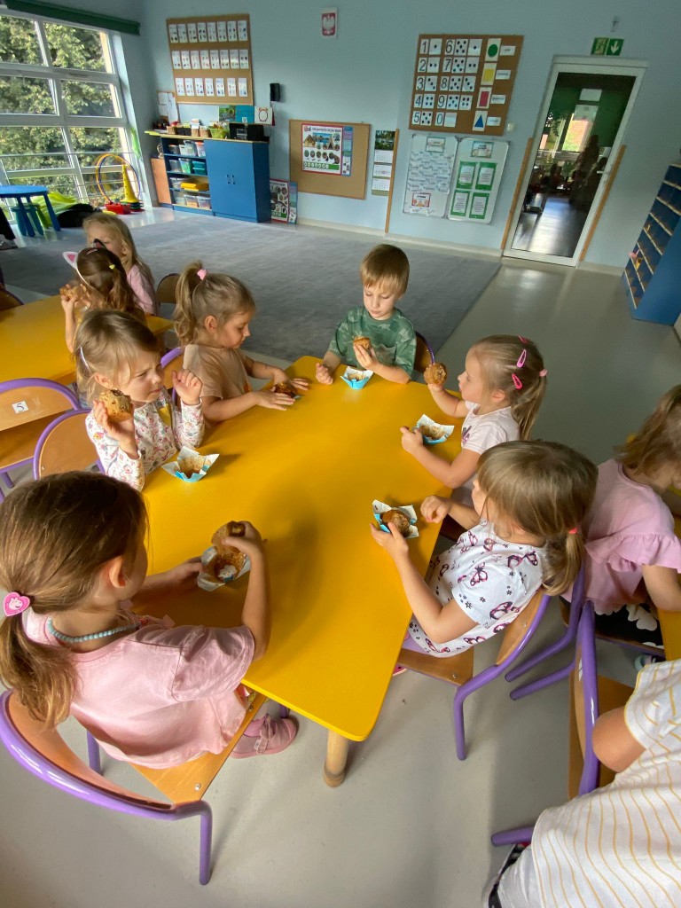 We wrześniu swoje 5. urodziny świętowała Helenka, Adaś oraz Tymek M. Jak zawsze odśpiewaliśmy solenizantom “Sto lat”, złożyliśmy im najpiękniejsze życzenia, a także przygotowaliśmy album z naszymi rysunkami. Każdy z nas bardzo się starał, aby był on wyjątkowy. Nasi jubilaci poczęstowali nas czymś słodkim: wykonanymi wspólnie z rodzicami babeczkami. Były przepyszne!!