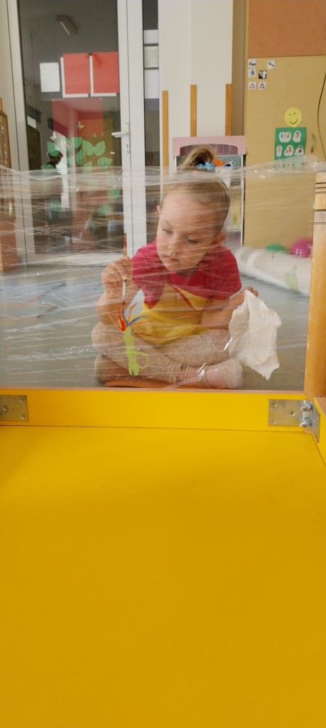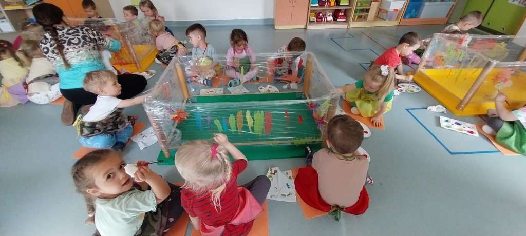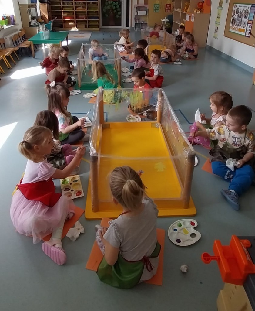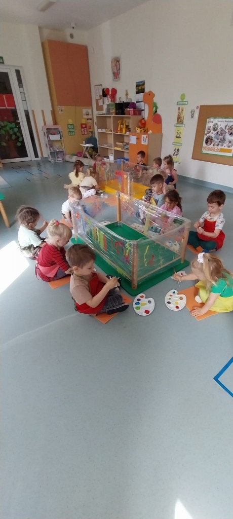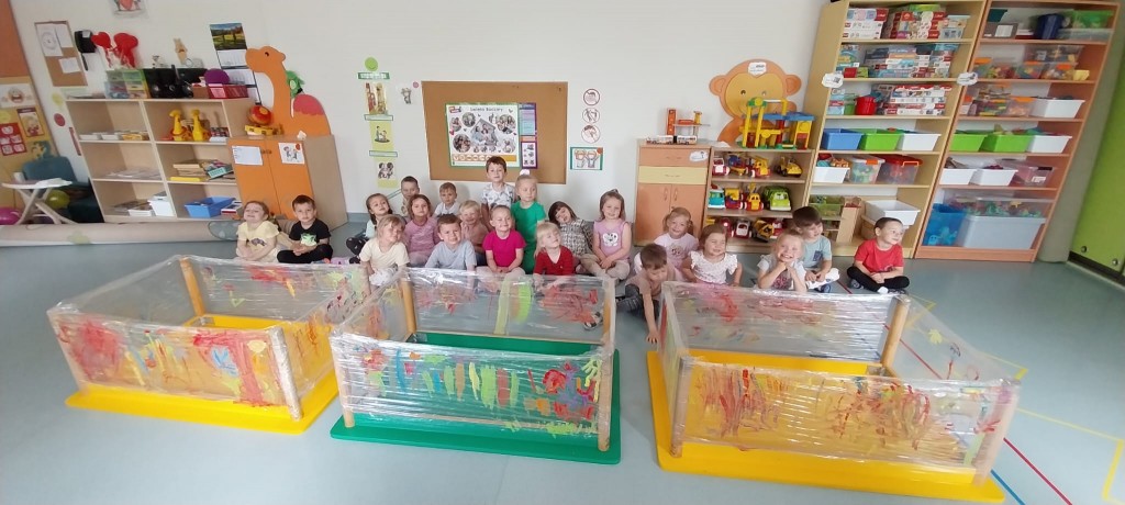 W środę 28 maja poznaliśmy nowa technikę plastyczną jaką jest malowanie na folii. Malowaliśmy kwiatki dla naszych Rodziców ćwicząc przy tym motorykę małą oraz koordynacje wzrokowo-ruchową. Zauważyliśmy, że malowanie na folii jest zupełnie inne niż malowanie na papierze. Przezroczysta folia pozwoliła nam zobaczyć swoje dzieło z dwóch stron i okazała się świetną zabawą, która pobudziła nasze zmysły.