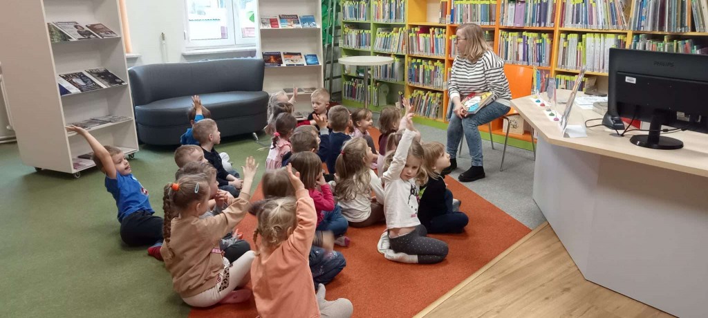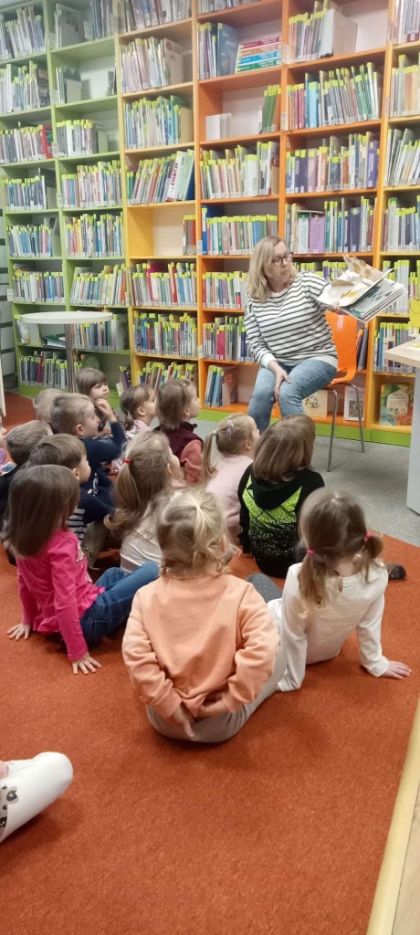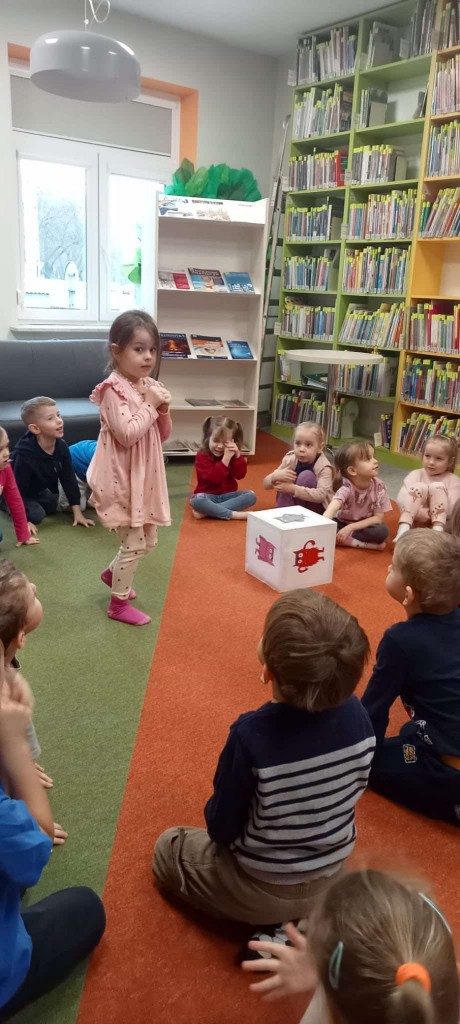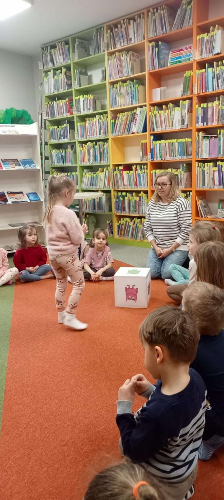 W poniedziałek, 03.03.2025r., po raz kolejny wybraliśmy się na zajęcia do Biblioteki Pedagogicznej. Tym razem Pani bibliotekarka zabrała nas w niezwykły świat emocji kolorowego potwora. Rzucaliśmy dużą kostką i nazywaliśmy emocje na niej przedstawione, a także przedstawialiśmy emocje własną mimiką twarzy. Bardzo podobały nam się zajęcia i świat kolorowego potwora. Już nie możemy doczekać się naszej kolejnej wizyty w Bibliotece!