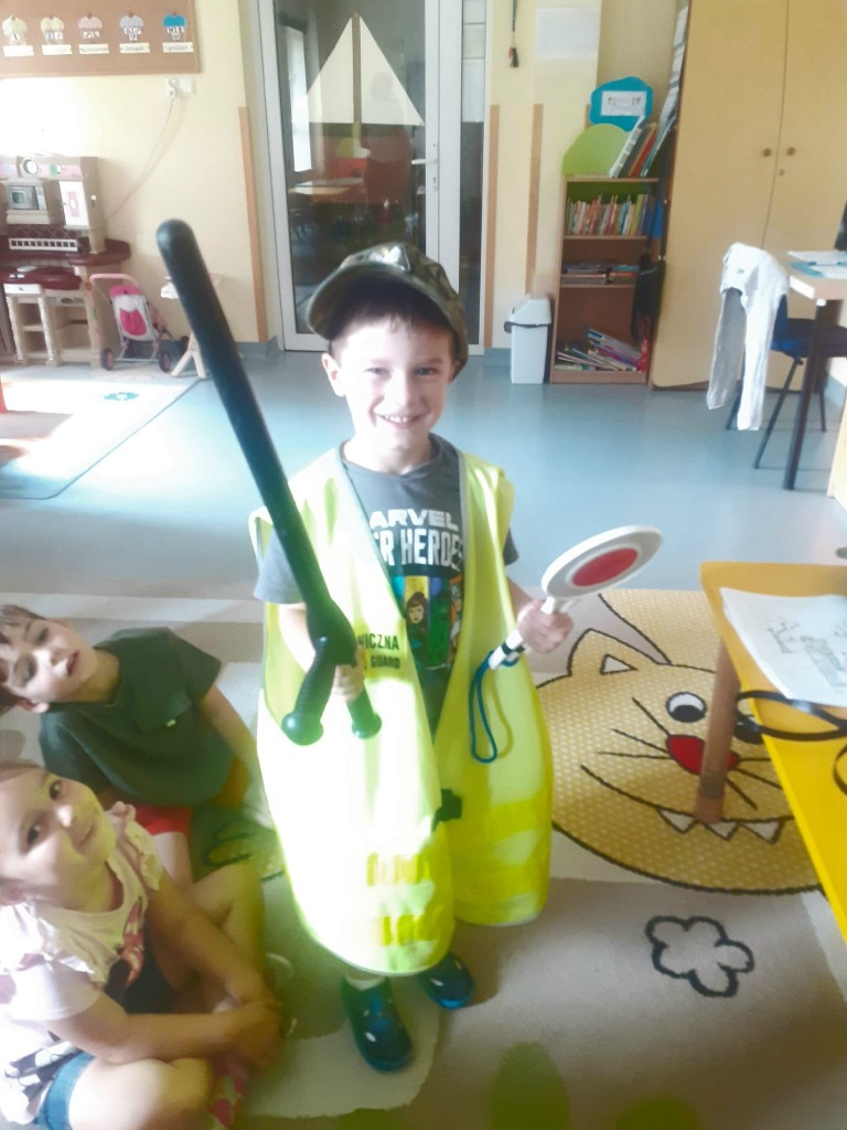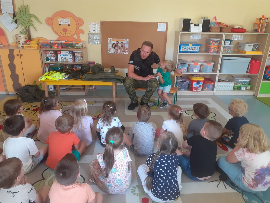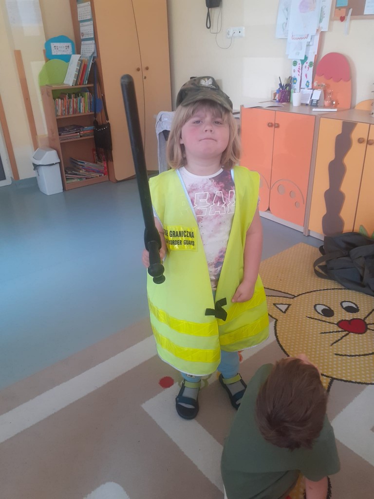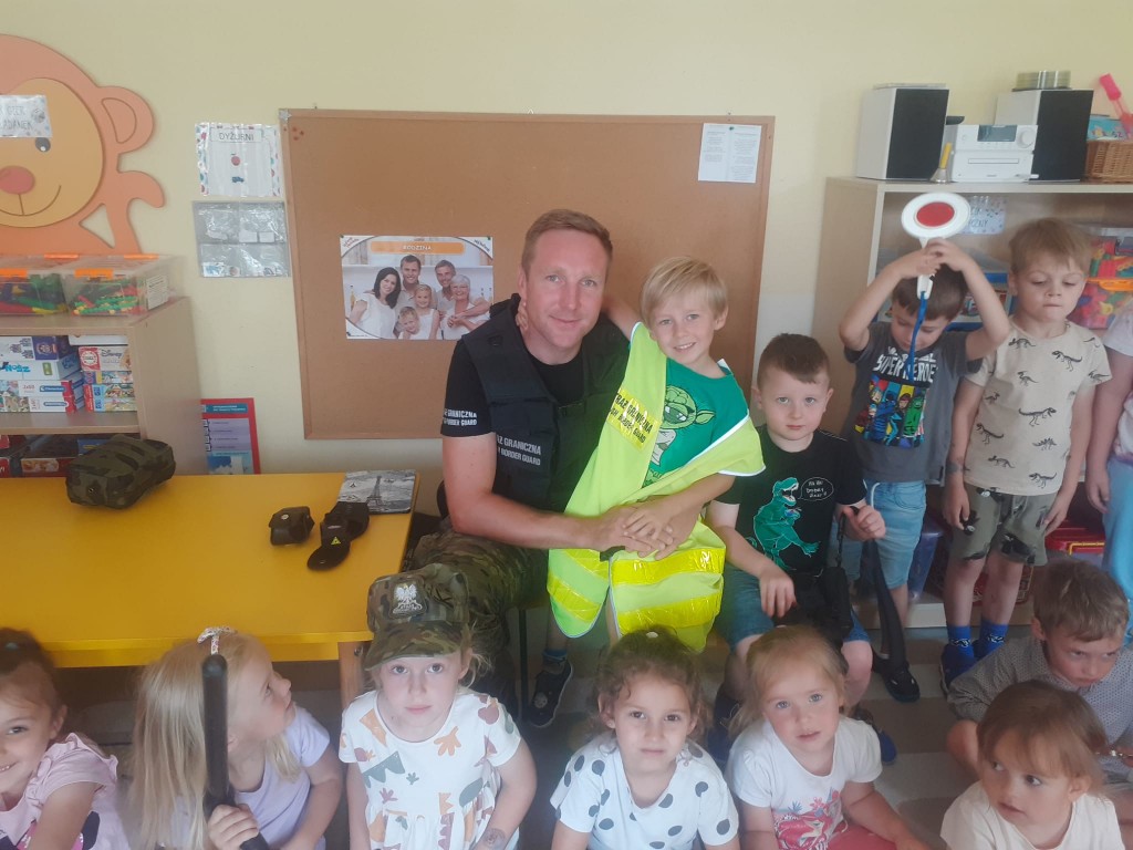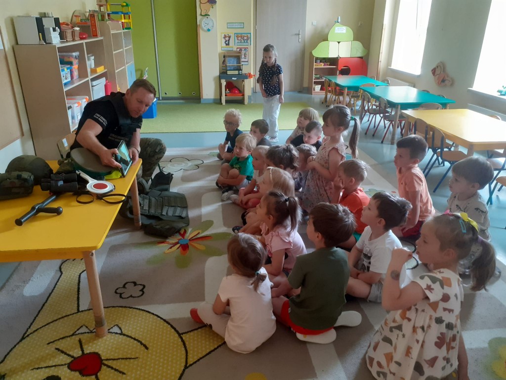 Realizując tematykę tygodnia poświęconą Tacie mieliśmy możliwość przyjrzeć się zawodom, jakie wykonują nasi tatusiowie. 17 czerwca naszą sale odwiedził tata Juliana funkcjonariusz Straży Granicznej, który opowiedział nam o swojej pracy. Główną atrakcją spotkania był pokaz sprzętu, który funkcjonariusze Straży Granicznej używają w czasie pełnienia służby. Oglądaliśmy krótki film, na którym widać było jak strzeże się granic Polski. Dzieci na zakończenie spotkania otrzymały biuletyn z zadaniami do wykonania.