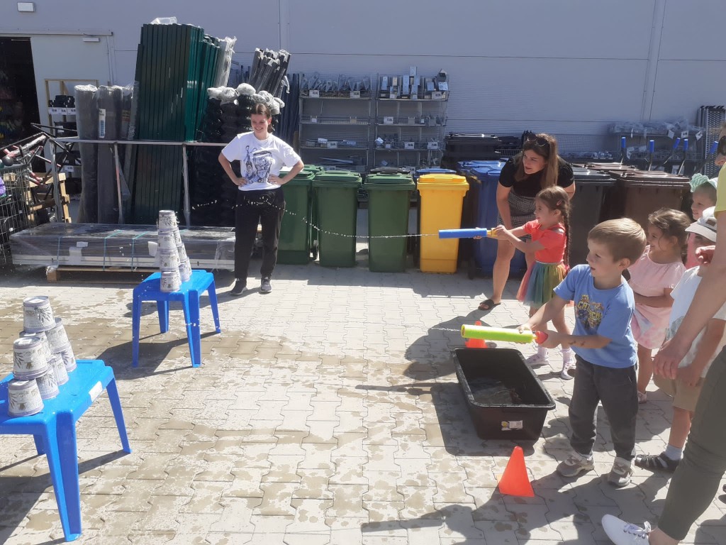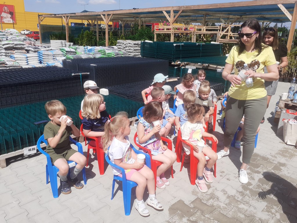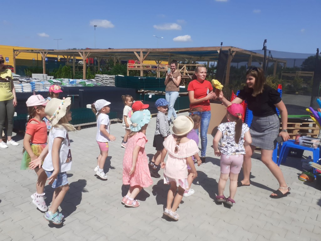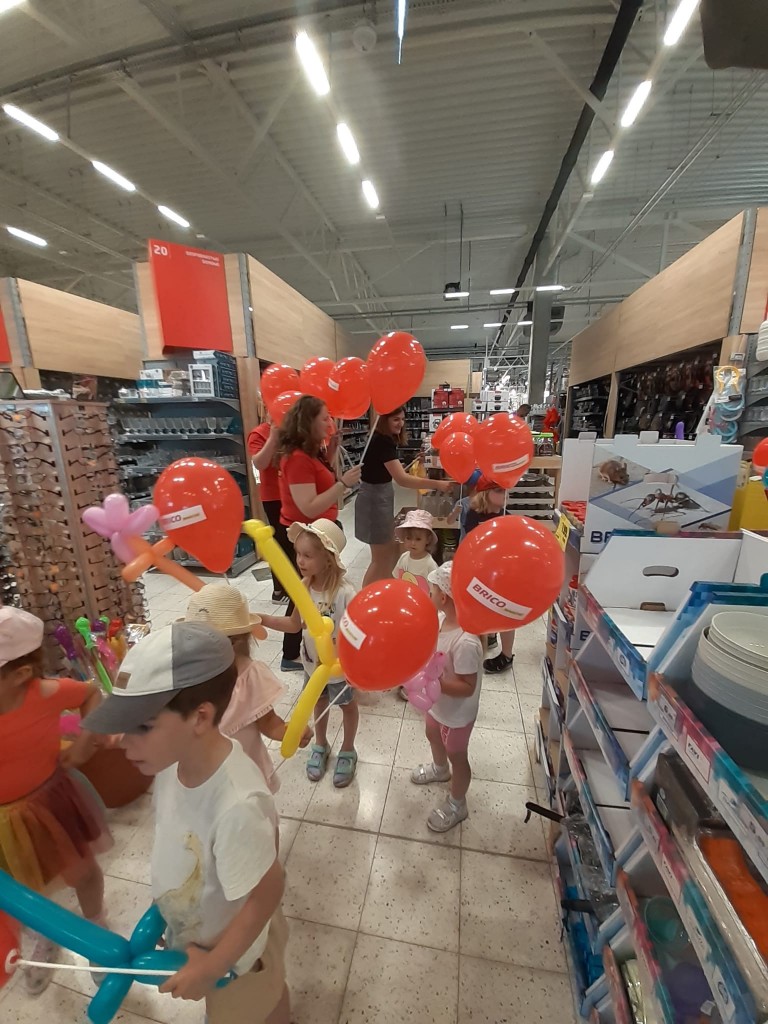 Zaś 21 czerwca wybraliśmy się na wycieczkę do sklepu Bricomarche, który jest prowadzony przez rodziców Dagmary. Dowiedzieliśmy się, w jaki asortyment jest wyposażony sklep i że prowadzenie tak dużego sklepu wymaga dużo pracy i wysiłku. Oprócz tego czekała na nas miła niespodzianka w postaci zabaw sportowych, kolorowych balonów jak też brokatowych tatuaży.