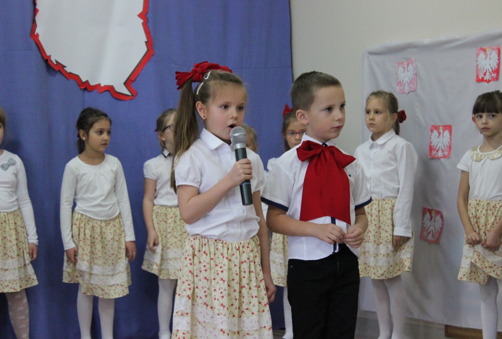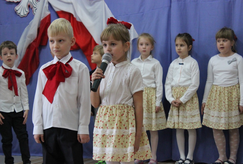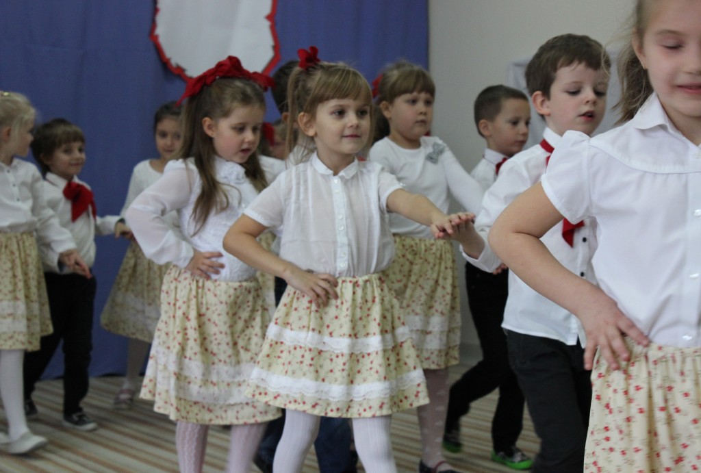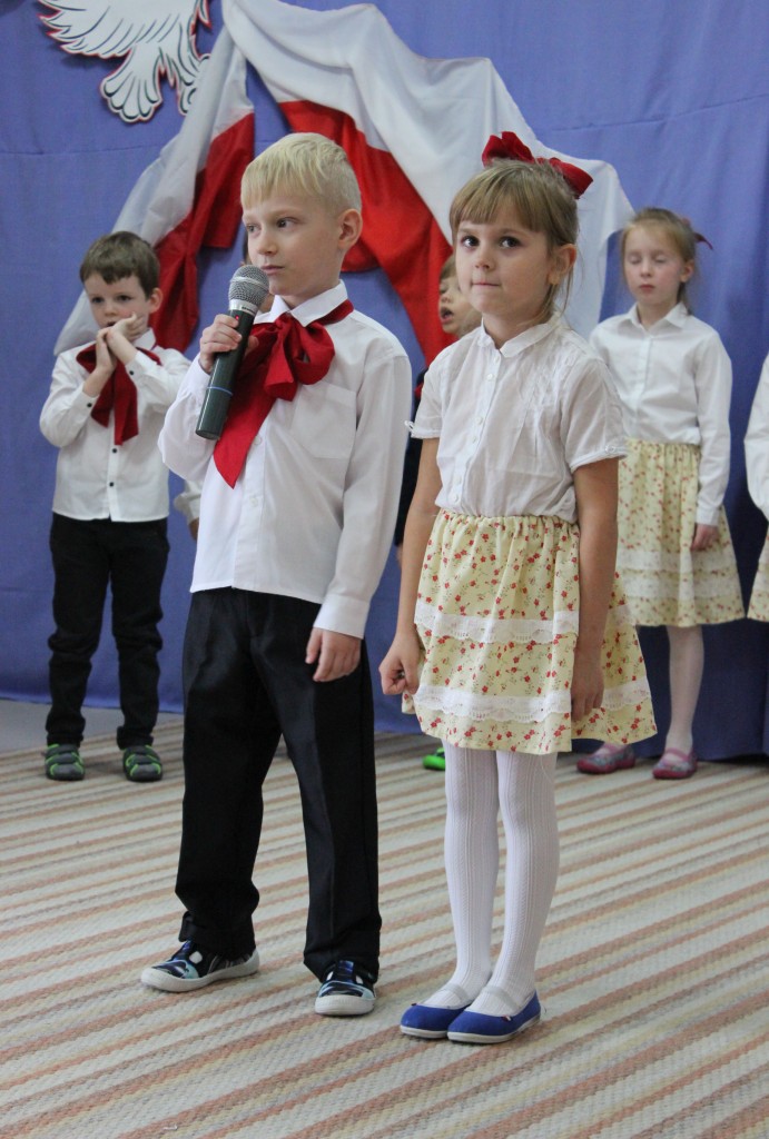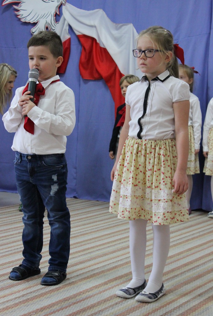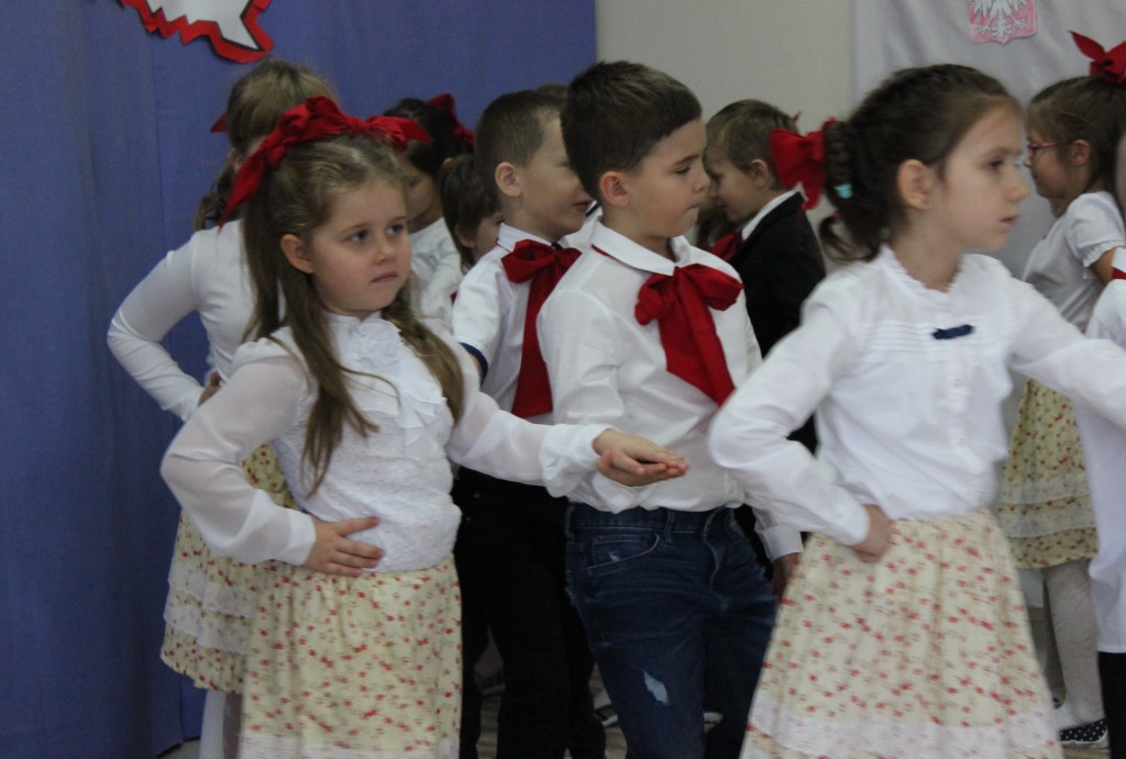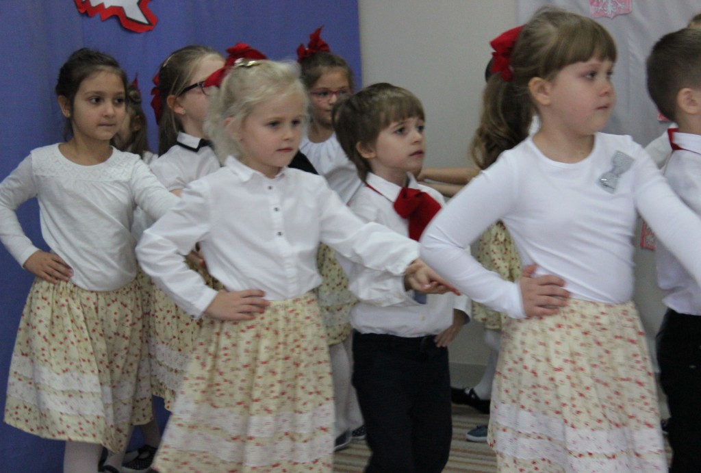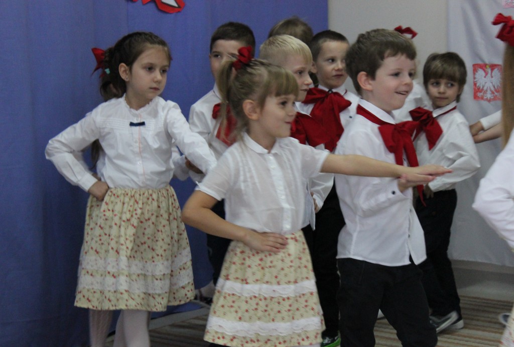 9 listopada, dzieci z grupy 6-latków zaprezentowały pozostałym przedszkolakom uroczyste wystąpienie upamiętniające 99. rocznicę odzyskania przez Polskę niepodległości. Montaż słowno-muzyczny wzbogacony był o odśpiewanie Mazurka Dąbrowskiego, naszego Hymnu Narodowego, co dodało podniosłego charakteru wydarzeniu. 6-latki ponadto zatańczyły Poloneza - reprezentacyjny polski taniec narodowy oraz odśpiewały wiele pieśni patriotycznych. Cała oprawa pozwoliła szczególnie mocno odczuć ducha dumy narodowej, zarówno paniom, jak i dzieciom - naszym małym Polakom. Pani Dyrektor, podsumowując uroczystość wydobyła istotę tego Święta i doceniła wkład włożony w staranne przygotowanie wystąpienia. Podtrzymanie tradycji obchodów 11 listopada, pozwoliło dzieciom lepiej zrozumieć czym jest Święto Niepodległości, ale niewątpliwie zaowocuje też w przyszłości, wlewając w serca naszych małych Polaków ducha patriotyzmu i wierności ojczyźnie.