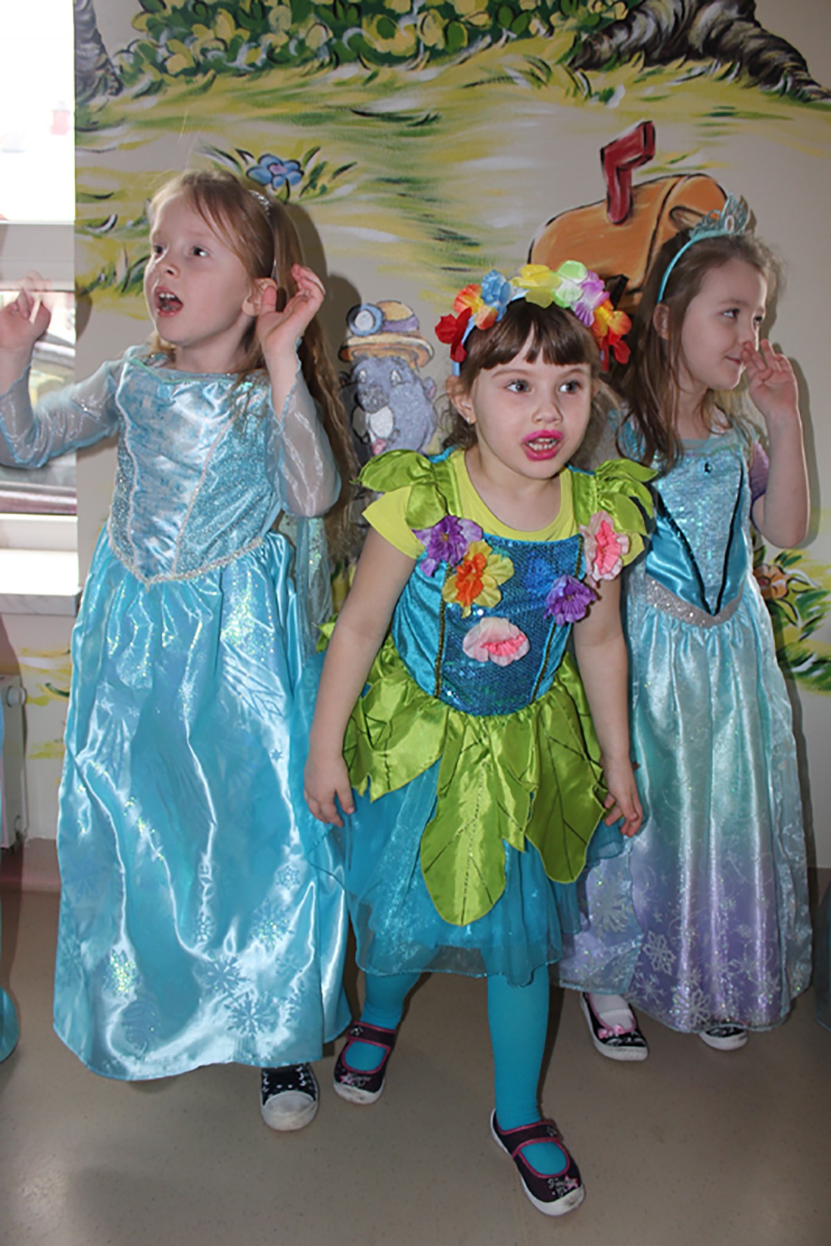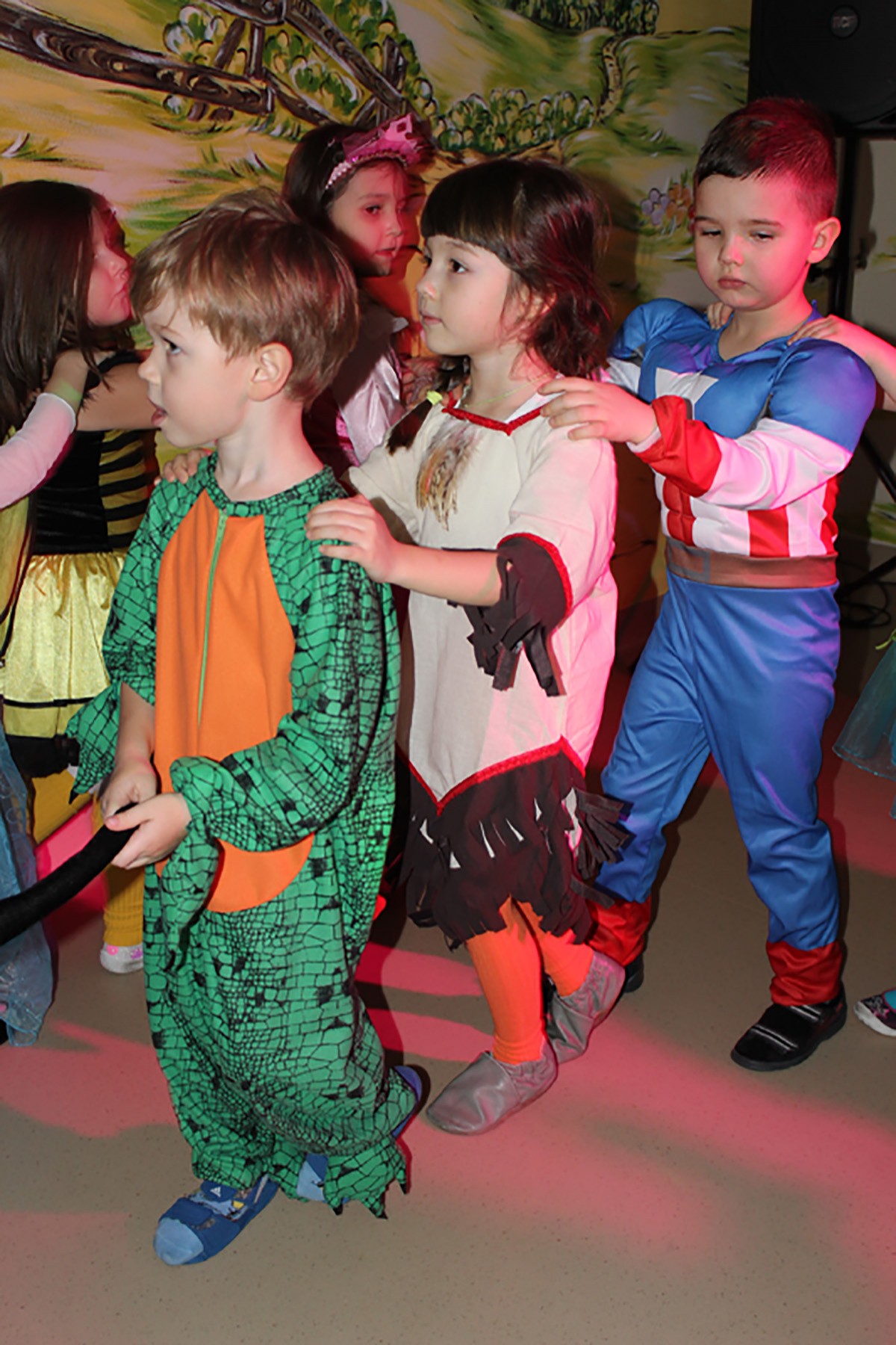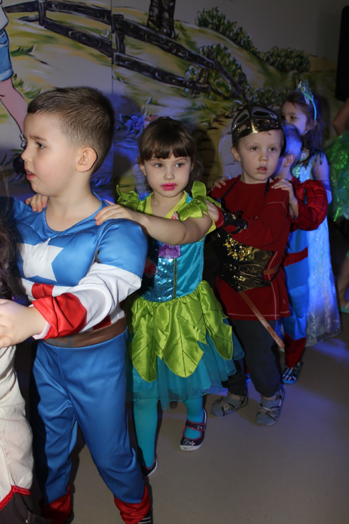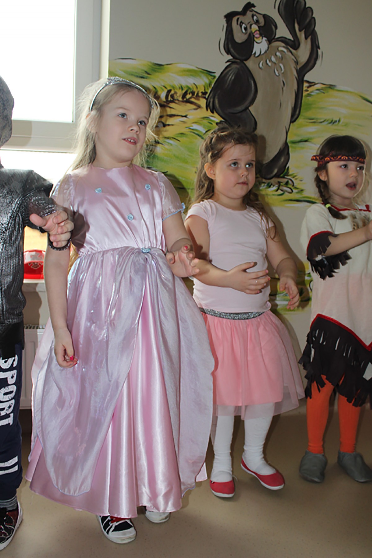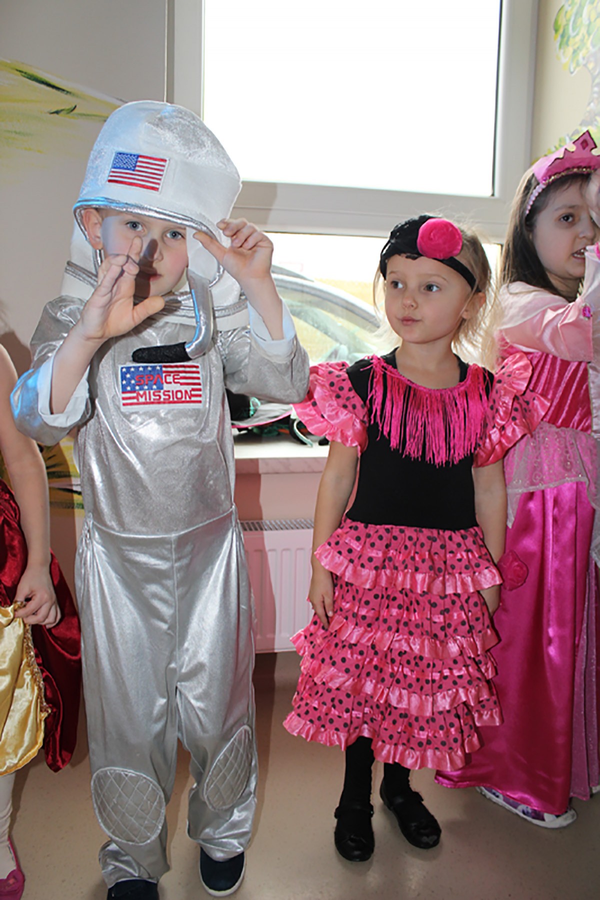 Tego dnia, po śniadaniu, dzieci z pomocą pań przebrały się w kolorowe stroje. Jak za dotknięciem czarodziejskiej różdżki, w salach zaroiło się od wróżek, biedronek, motyli, Elz, Batamnów, Spidermanów i innych postaci. W rytm skocznej melodii, wśród kolorowych baniek mydlanych, mali tańcerze wspaniale się bawili. Dzięki temu wydarzeniu, przedszkolaki miały okazję spędzić czas w atmosferze radości i choć na chwilę wcielić się w swoją ulubioną postać z bajki. Dodatkową atrakcją były prezenty od Kubusia Puchatka, które pojawiły się w naszych salach w kolorowych workach, wraz z listem od patrona naszego przedszkola.