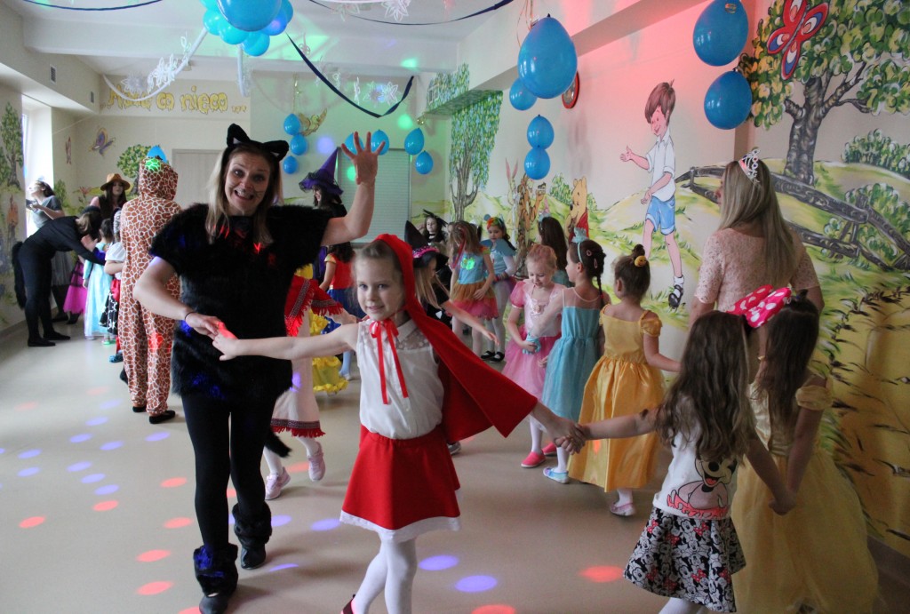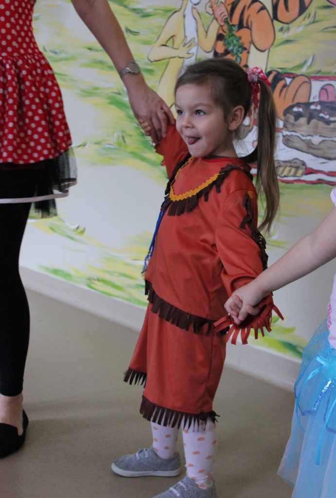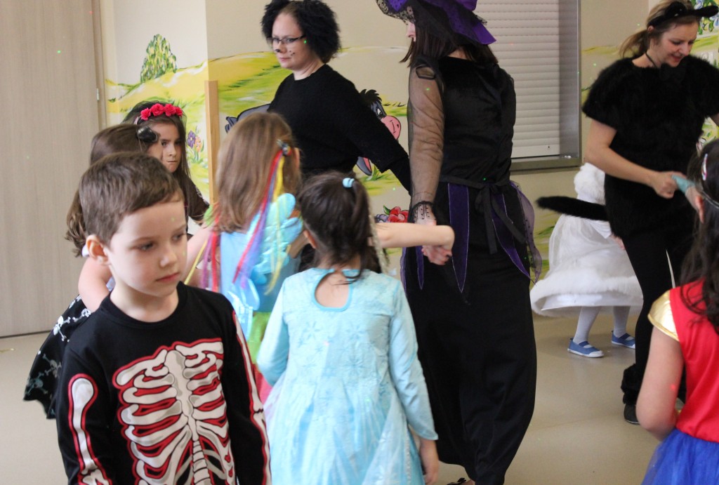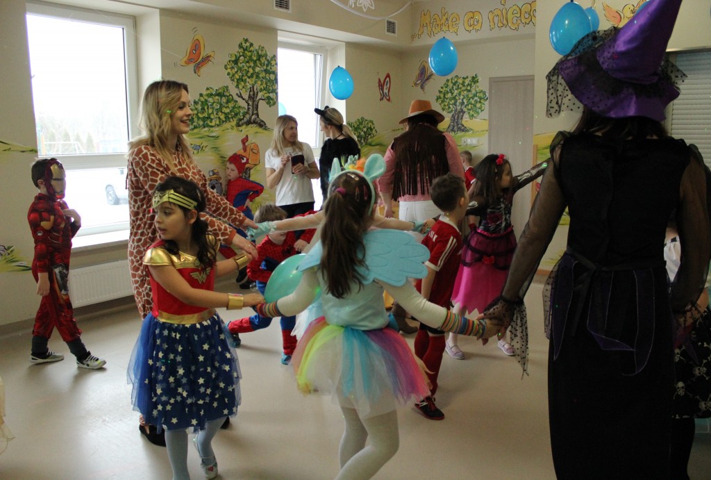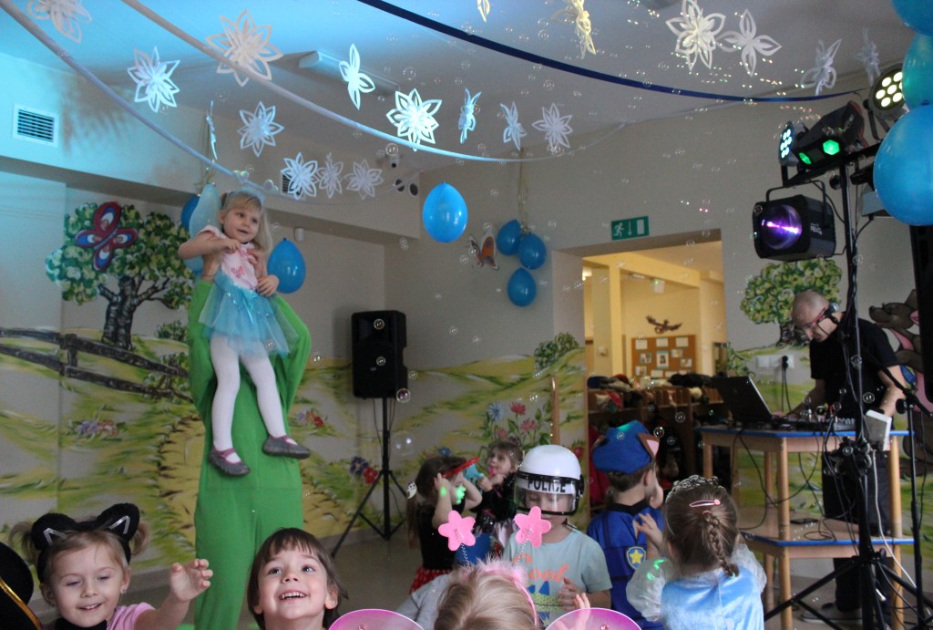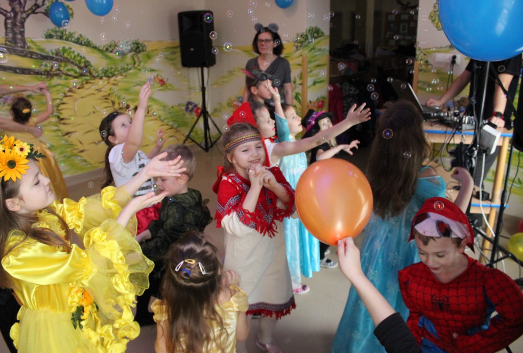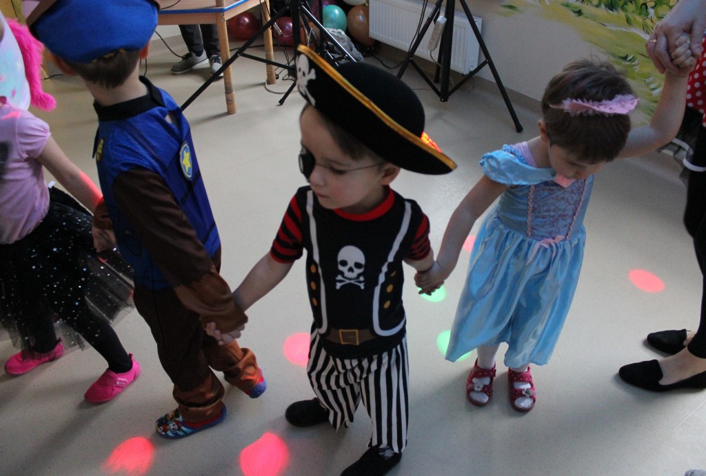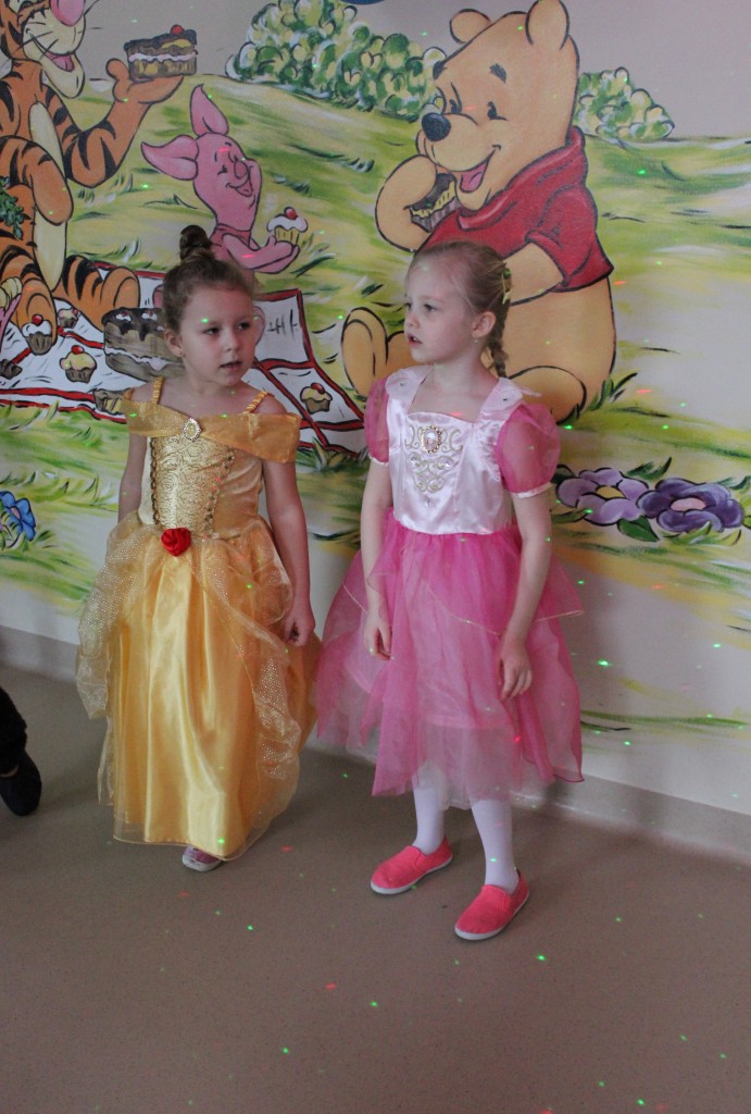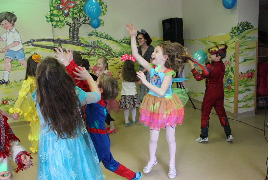 Pomysłowe przebrania sprawiły, że niektórzy byli nie do poznania. Na parkiecie ochoczo tańczyli bohaterowie bajek, komiksów, filmów a nawet smoki, dinozaury i przedstawiciele służb mundurowych. Był długi pociąg dookoła sali, kaczuszki i wiele innych zabaw integrujących wszystkie grupy. Największą atrakcją okazały się jednak bańki mydlane, których łapanie sprawiło dzieciom wiele radości. Takiego wesołego brykania nie powstydziłby się sam Tygrysek! Dobrą zabawę przedszkolaków zauważył i docenił również Kubuś Puchatek i zostawił każdemu małe co nieco oraz list z pozdrowieniami ze Stumilowego Lasu.
