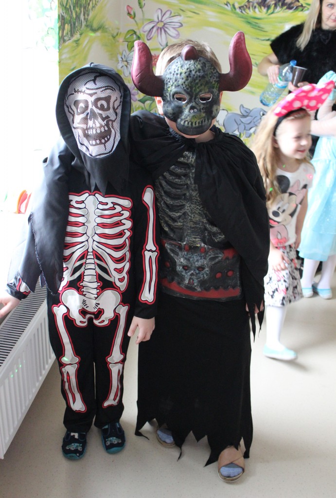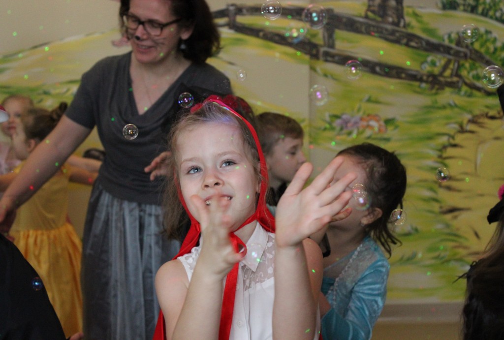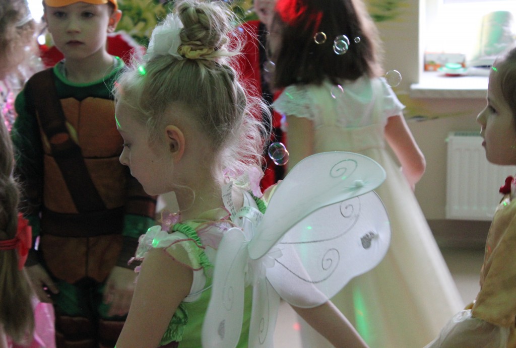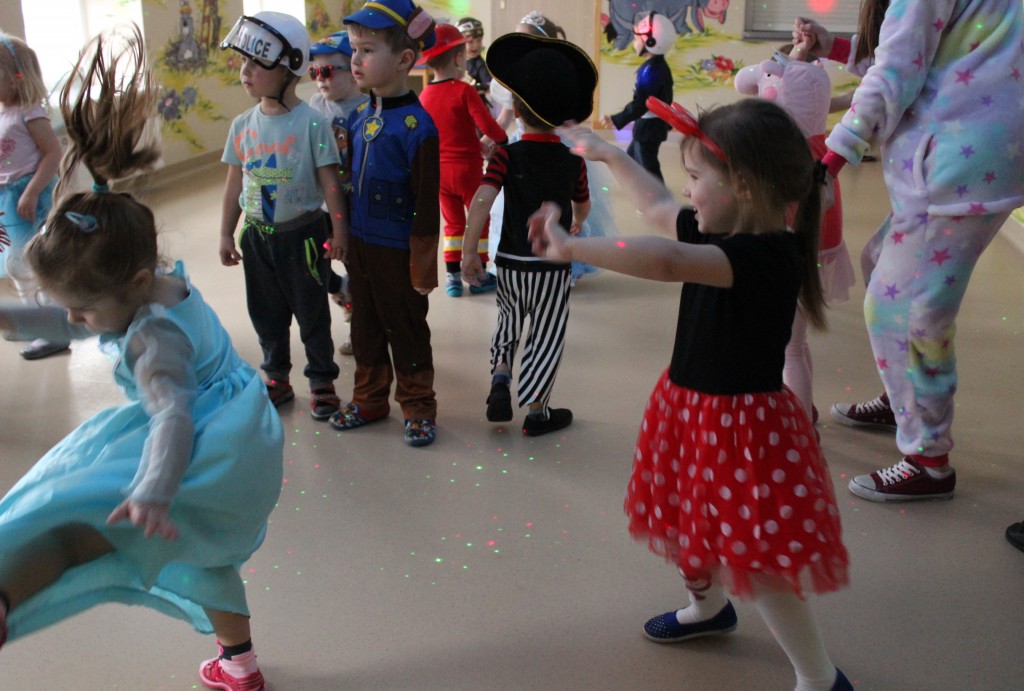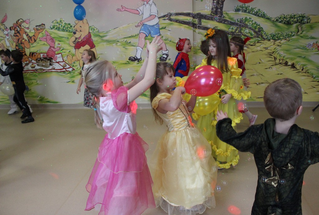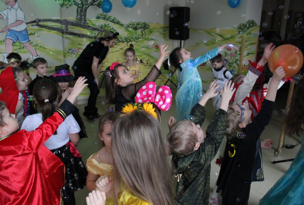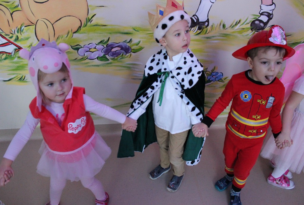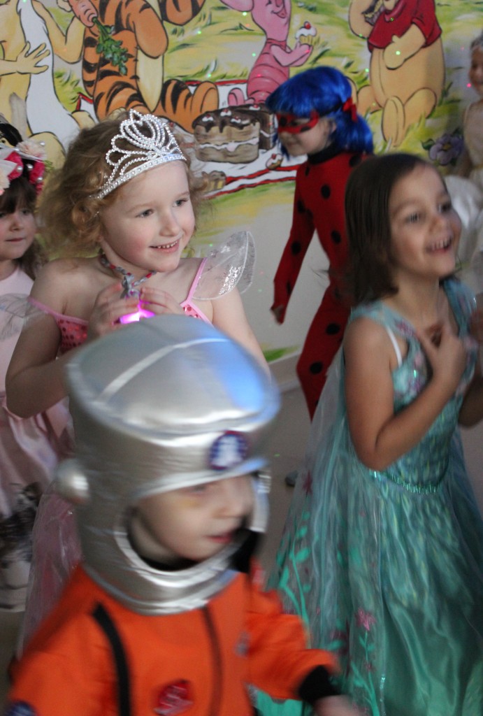 Pomysłowe przebrania sprawiły, że niektórzy byli nie do poznania. Na parkiecie ochoczo tańczyli bohaterowie bajek, komiksów, filmów a nawet smoki, dinozaury i przedstawiciele służb mundurowych. Był długi pociąg dookoła sali, kaczuszki i wiele innych zabaw integrujących wszystkie grupy. Największą atrakcją okazały się jednak bańki mydlane, których łapanie sprawiło dzieciom wiele radości. Takiego wesołego brykania nie powstydziłby się sam Tygrysek! Dobrą zabawę przedszkolaków zauważył i docenił również Kubuś Puchatek i zostawił każdemu małe co nieco oraz list z pozdrowieniami ze Stumilowego Lasu.