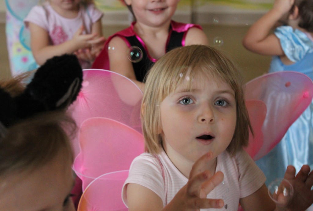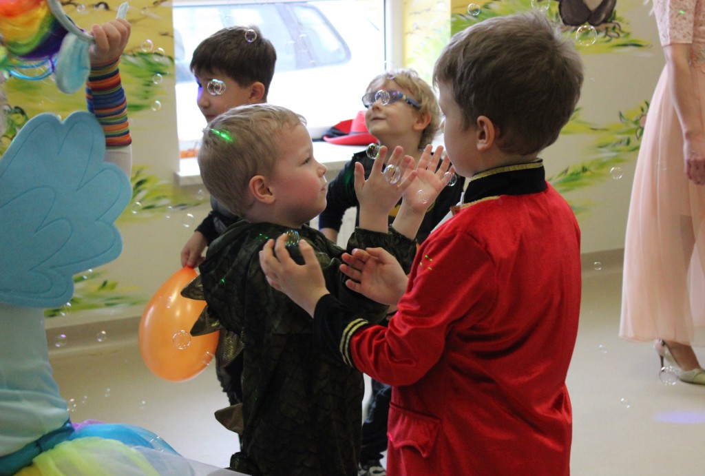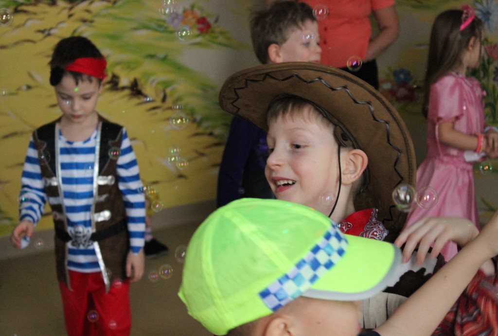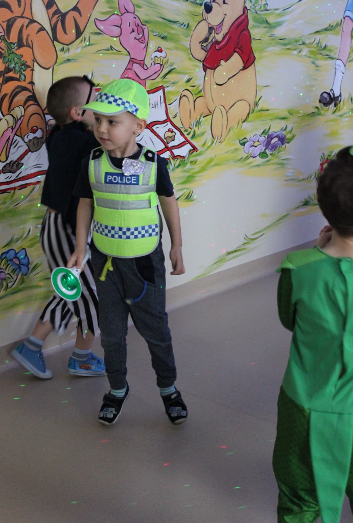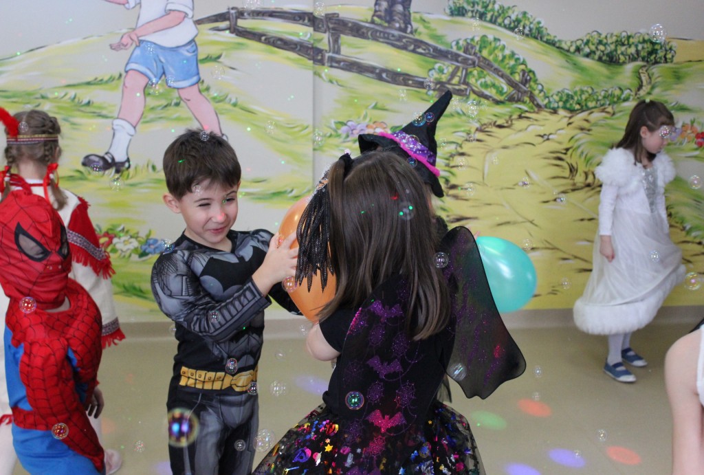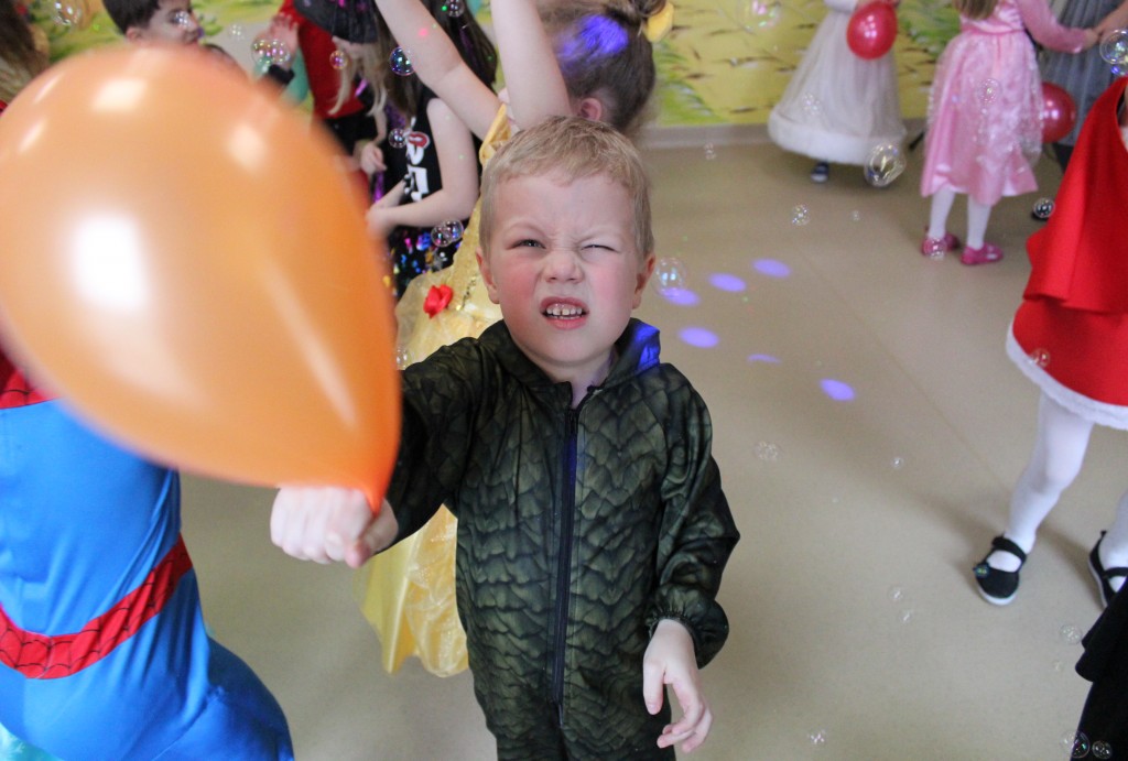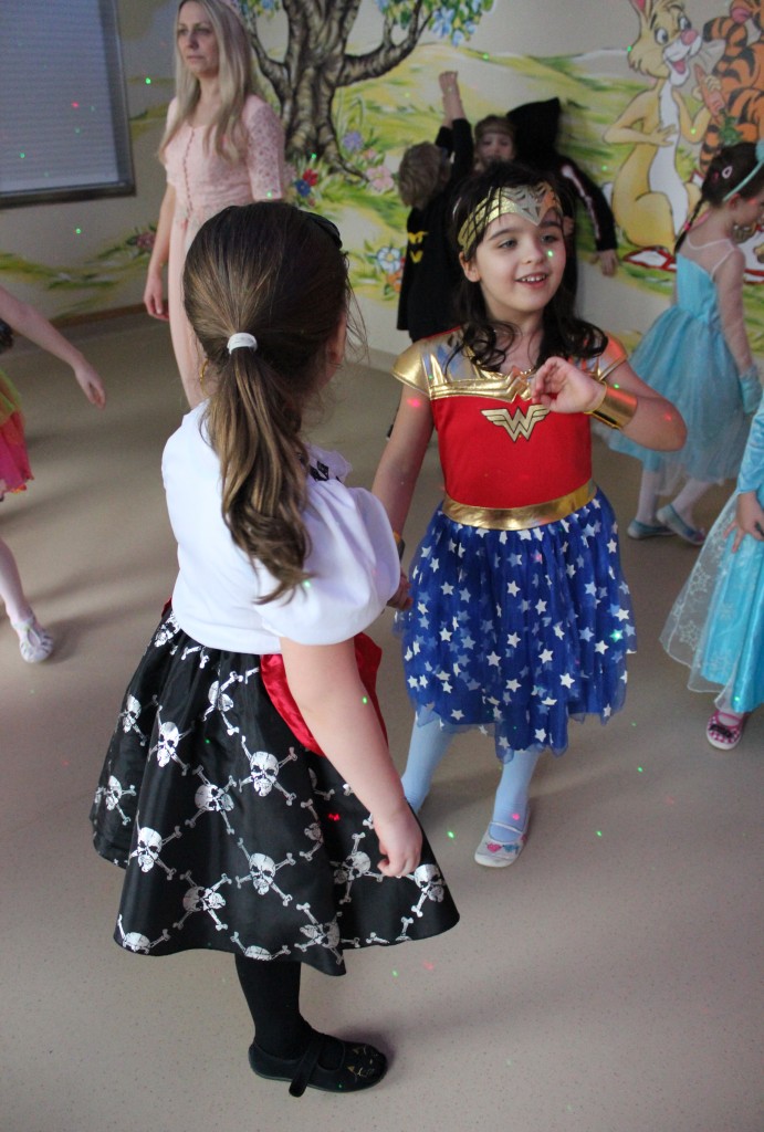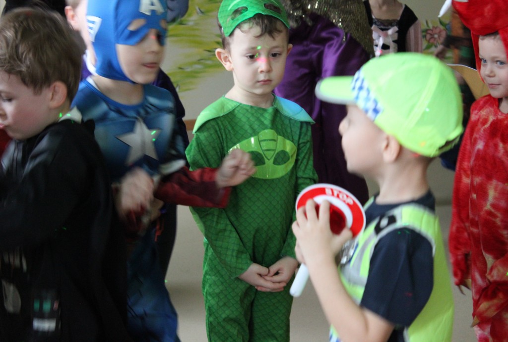 Pomysłowe przebrania sprawiły, że niektórzy byli nie do poznania. Na parkiecie ochoczo tańczyli bohaterowie bajek, komiksów, filmów a nawet smoki, dinozaury i przedstawiciele służb mundurowych. Był długi pociąg dookoła sali, kaczuszki i wiele innych zabaw integrujących wszystkie grupy. Największą atrakcją okazały się jednak bańki mydlane, których łapanie sprawiło dzieciom wiele radości. Takiego wesołego brykania nie powstydziłby się sam Tygrysek! Dobrą zabawę przedszkolaków zauważył i docenił również Kubuś Puchatek i zostawił każdemu małe co nieco oraz list z pozdrowieniami ze Stumilowego Lasu.