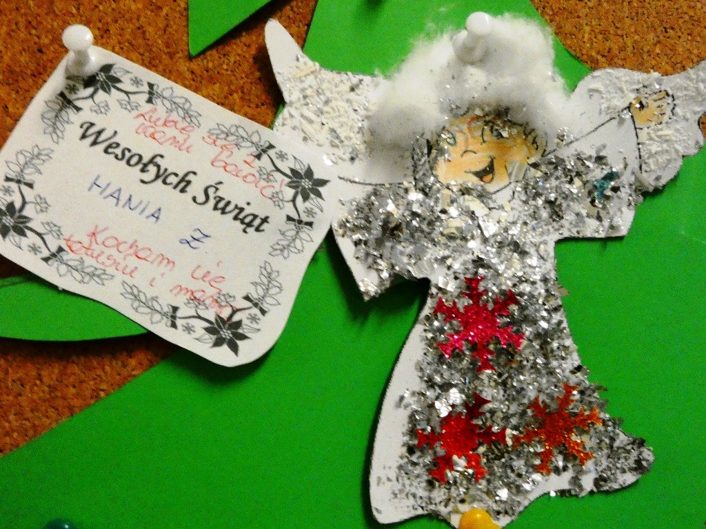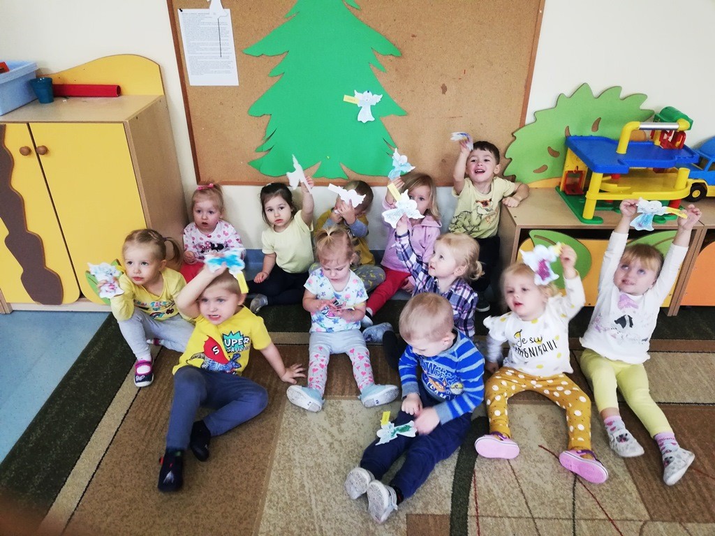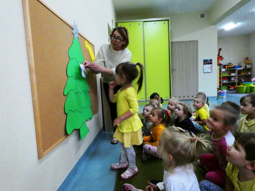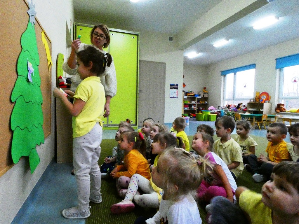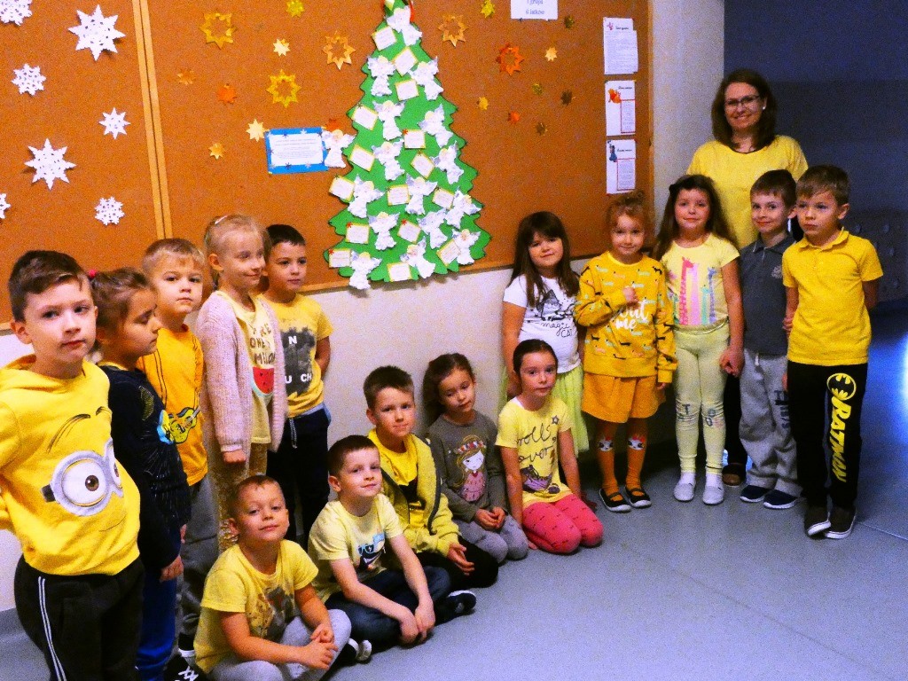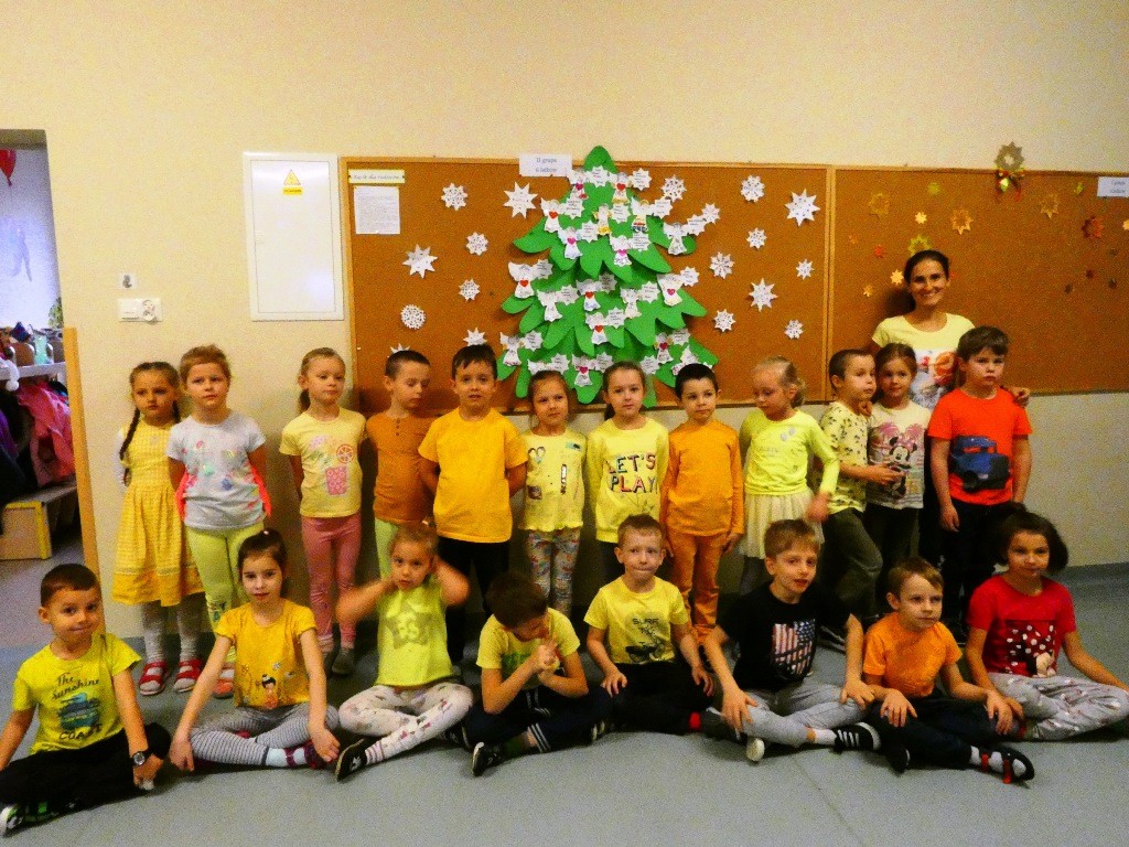 Efektem działań podejmowanych tego dnia w przedszkolu stały się Aniołki z dobrymi słowami, przepełnionymi serdecznością, życzliwością, dobrem i miłością względem najbliższych osób, które zestawiliśmy na grupowych choinkach we wszystkich grupach wiekowych.