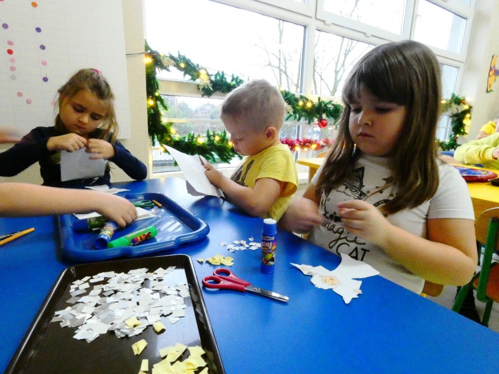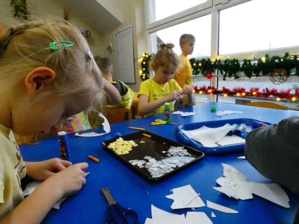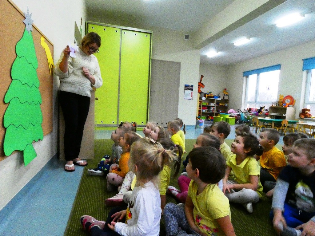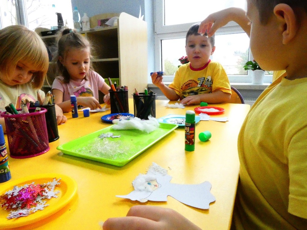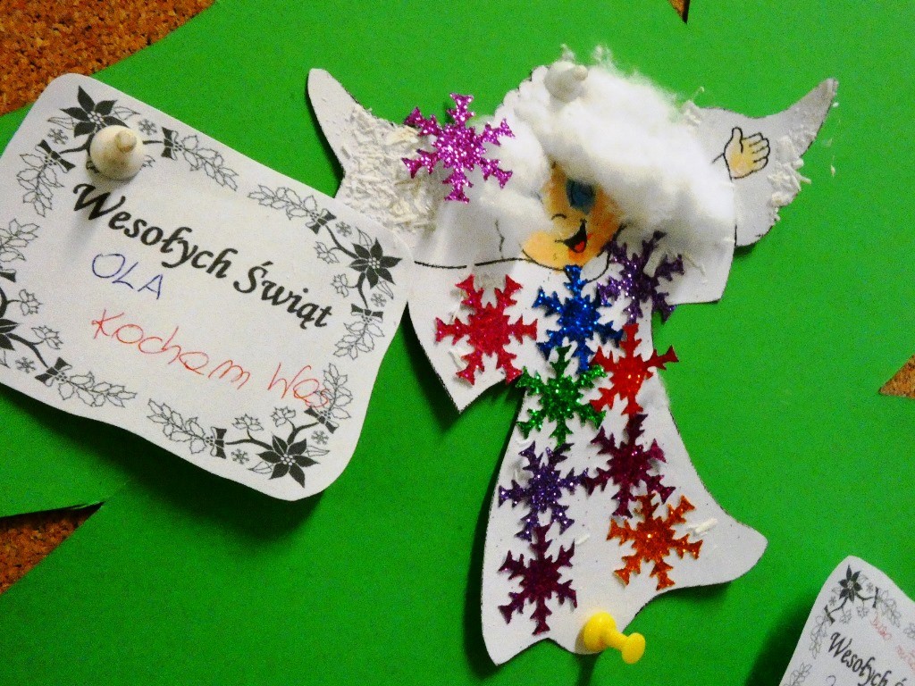 Efektem działań podejmowanych tego dnia w przedszkolu stały się Aniołki z dobrymi słowami, przepełnionymi serdecznością, życzliwością, dobrem i miłością względem najbliższych osób, które zestawiliśmy na grupowych choinkach we wszystkich grupach wiekowych.