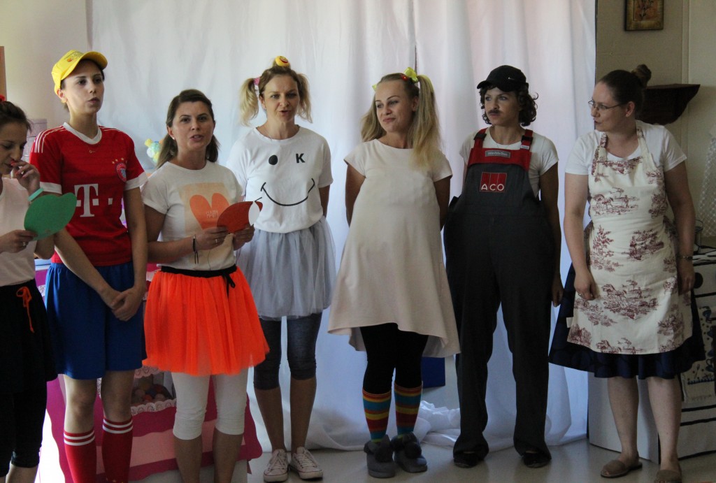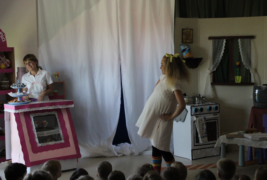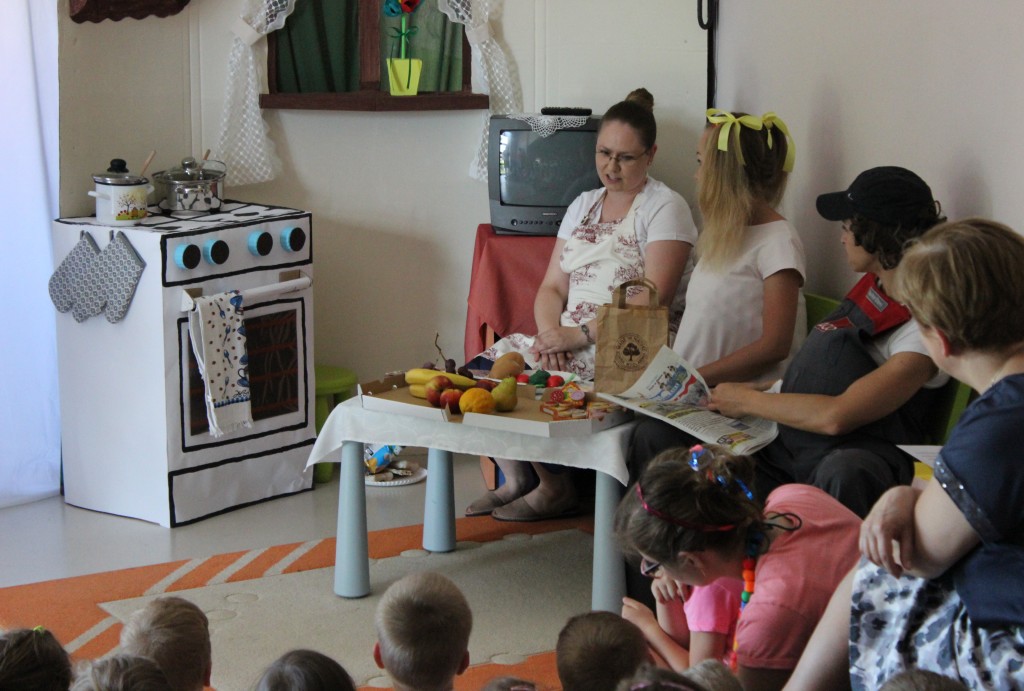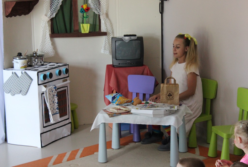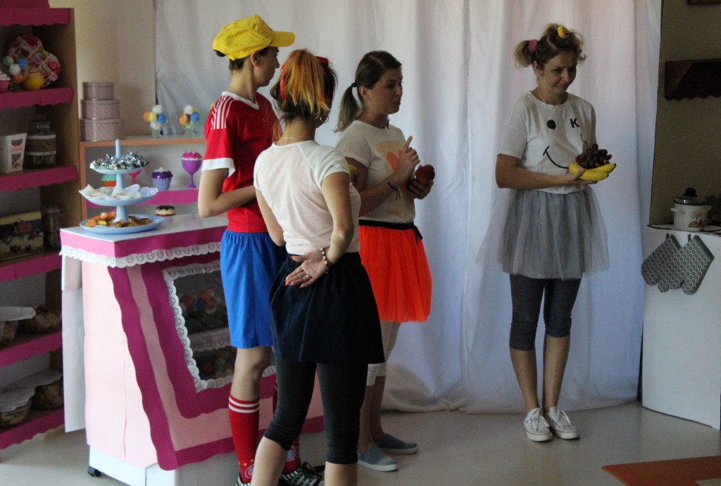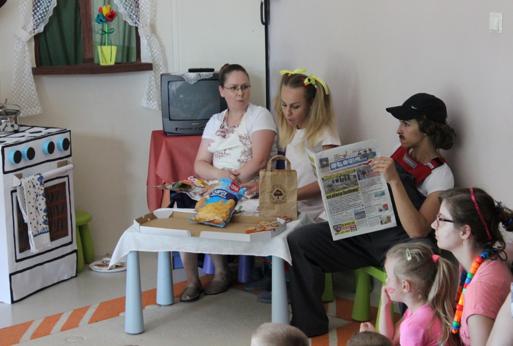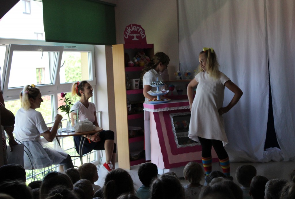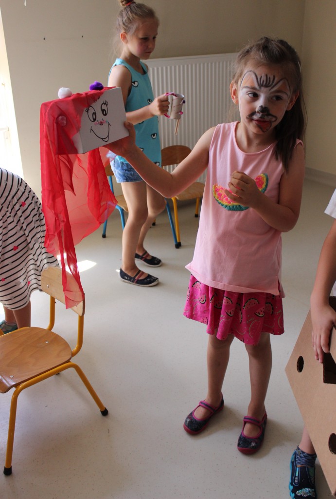 Na dzień dobry każdy Przedszkolak mógł poddać się malowaniu twarzy zgodnie z własnymi upodobaniami. Jeszcze przed śniadaniem sale wypełniły zwierzątka, bohaterowie bajek, warzywa, owoce i inne postacie. Oficjalnego rozpoczęcia Dnia Dziecka dokonała Pani Dyrektor zapraszając jednocześnie Dzieci do obejrzenia przedstawienia o przygodach Marlenki. Zabawny teatrzyk w wykonaniu Pań wprowadził wszystkich w jeszcze lepszy nastrój i na wesoło przypomniał o tym, jak ważne jest zdrowe odżywianie. Na koniec występu Przedszkolaki mogły poczęstować się zdrowym co nieco i wszyscy w pełni sił ruszyli do samodzielnej wędrówki po salach.