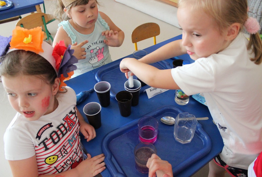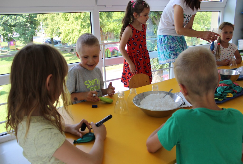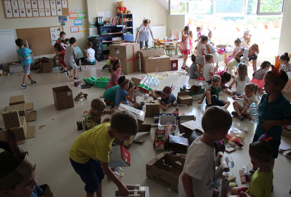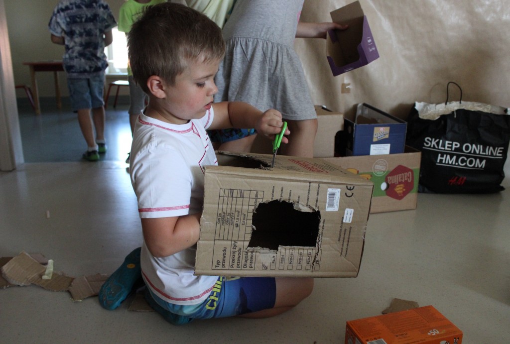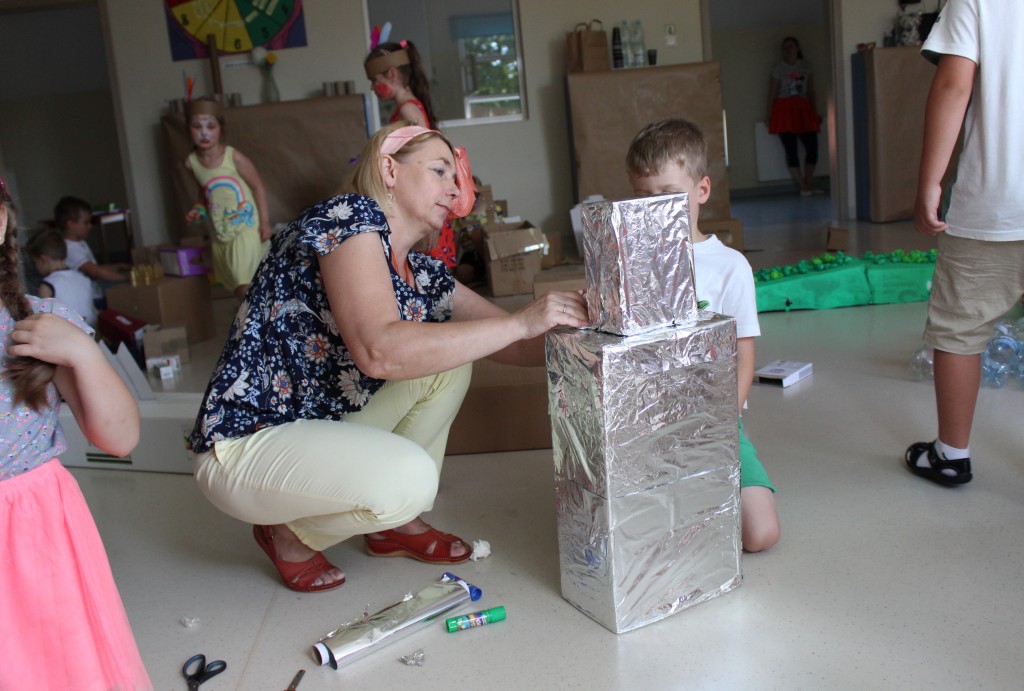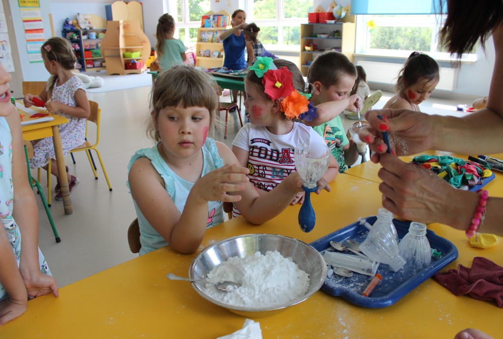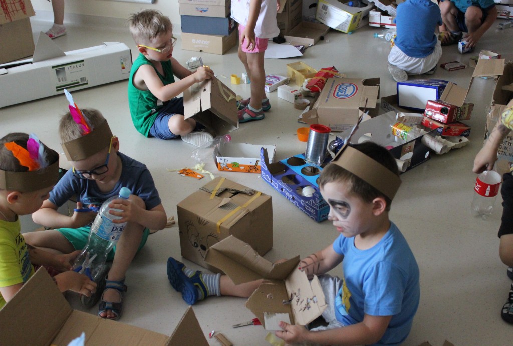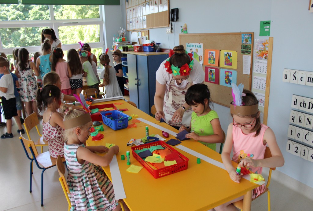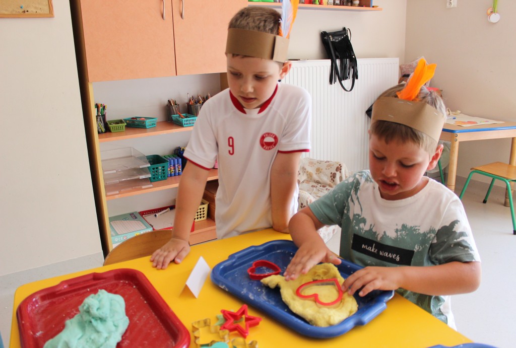 W każdej z nich czekała na nich inna atrakcja. W sali plastycznej dzieci tworzyły wianki i pióropusze, ale także słynne „gniotki”. Dodatkową atrakcją było rysowanie po szarym papierze, które jak zawsze przyciągnęło wielu chętnych. Tuż za ścianą znajdowała się sala bez zabawek, za to pełna kartonowych pudełek, plastikowych butelek itp. Obserwując inwencję twórczą Dzieci w tej sali, trzeba przyznać, że ich wyobraźnia zdecydowanie nie ma granic. Roboty, samochody, kapsuły kosmiczne a wszystko to zbudowane z pozornie zbędnych artykułów. W sali 6-latków Kubusiowi Przyjaciele mogli zamienić się w małych chemików i badaczy testując rozmaite masy plastyczne oraz uczestnicząc w eksperymentach z wykorzystaniem produktów spożywczych dostępnych w każdej kuchni. Sale 4-latków oferowały naszym Zuchom mnóstwo aktywności ruchowej! Tory przeszkód oraz zabawy taneczne zaabsorbowały szczególnie młodszych Milusińskich.