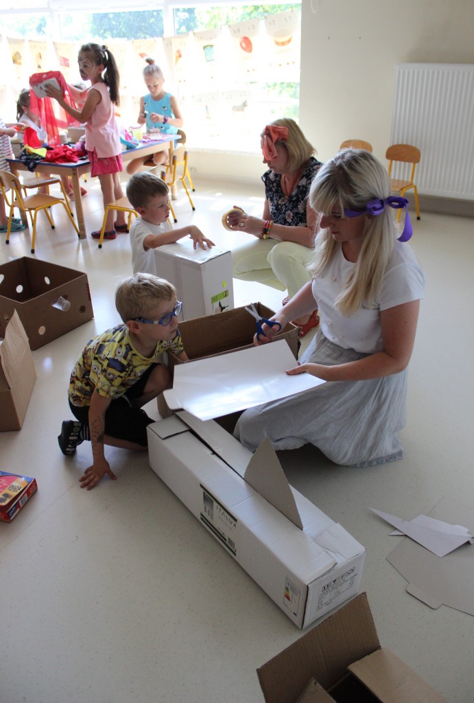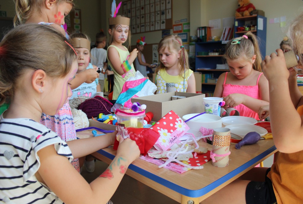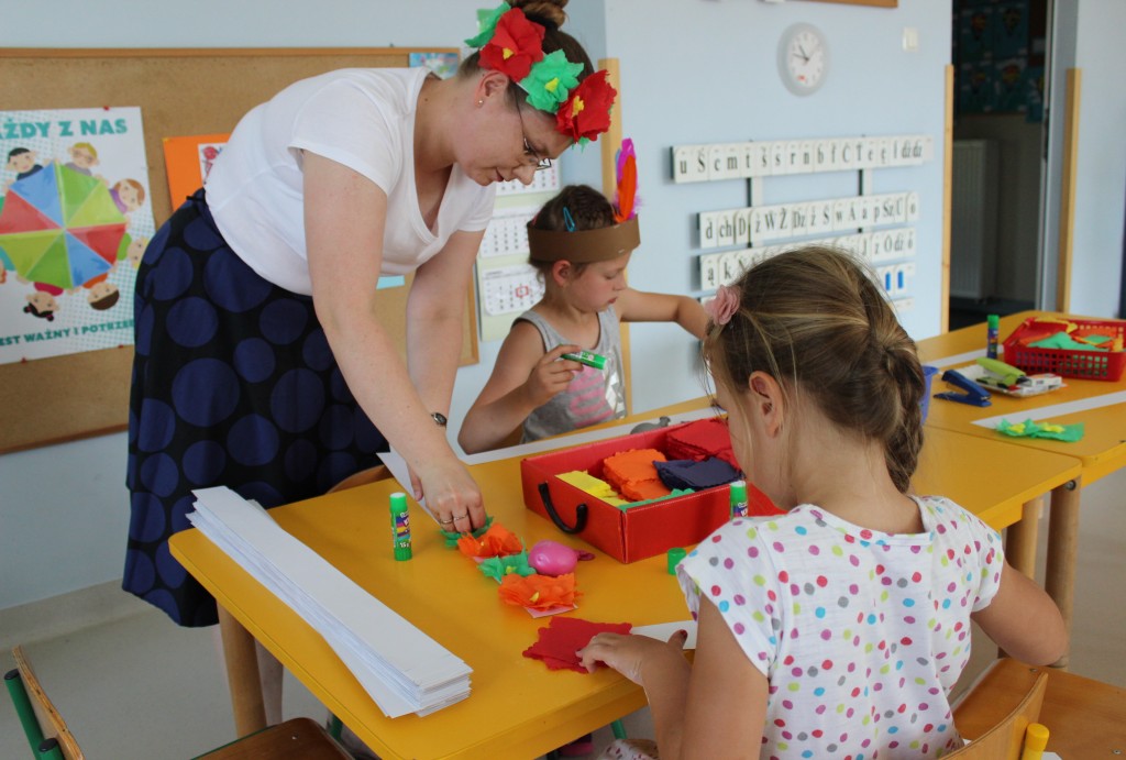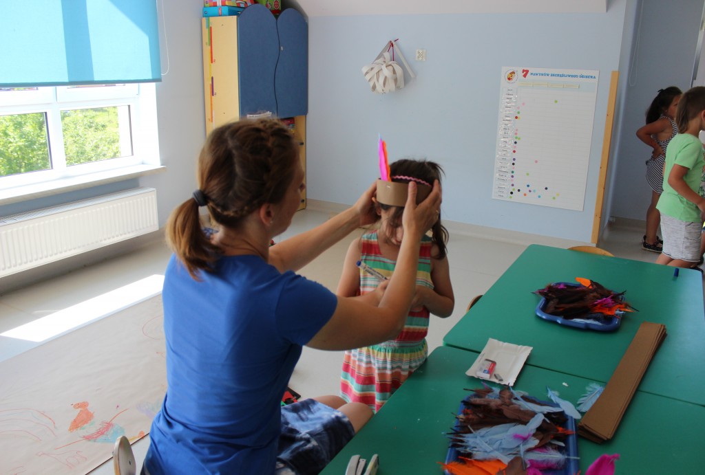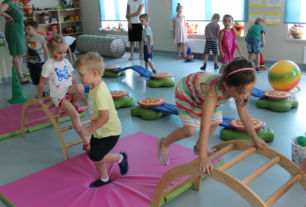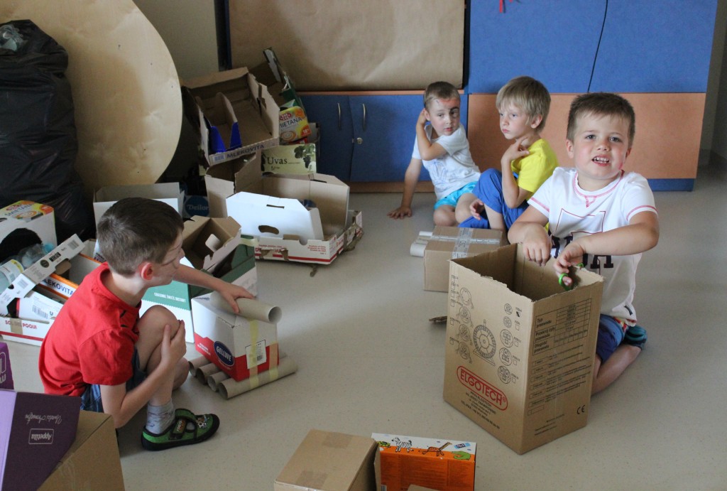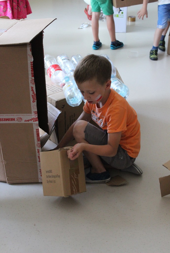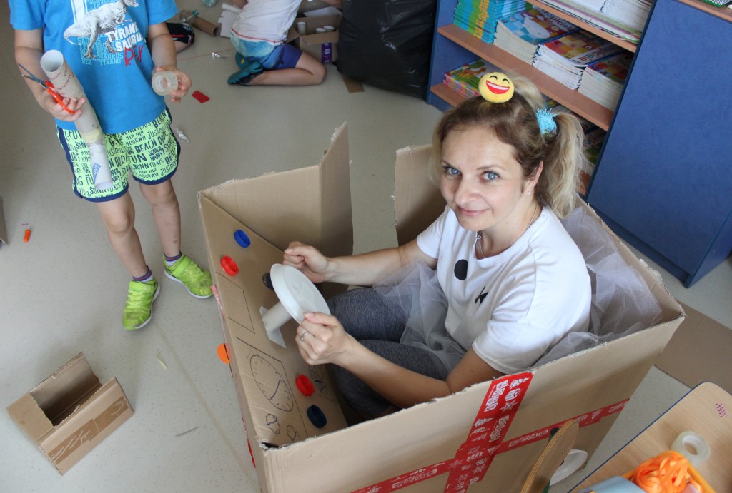 W każdej z nich czekała na nich inna atrakcja. W sali plastycznej dzieci tworzyły wianki i pióropusze, ale także słynne „gniotki”. Dodatkową atrakcją było rysowanie po szarym papierze, które jak zawsze przyciągnęło wielu chętnych. Tuż za ścianą znajdowała się sala bez zabawek, za to pełna kartonowych pudełek, plastikowych butelek itp. Obserwując inwencję twórczą Dzieci w tej sali, trzeba przyznać, że ich wyobraźnia zdecydowanie nie ma granic. Roboty, samochody, kapsuły kosmiczne a wszystko to zbudowane z pozornie zbędnych artykułów. W sali 6-latków Kubusiowi Przyjaciele mogli zamienić się w małych chemików i badaczy testując rozmaite masy plastyczne oraz uczestnicząc w eksperymentach z wykorzystaniem produktów spożywczych dostępnych w każdej kuchni. Sale 4-latków oferowały naszym Zuchom mnóstwo aktywności ruchowej! Tory przeszkód oraz zabawy taneczne zaabsorbowały szczególnie młodszych Milusińskich.