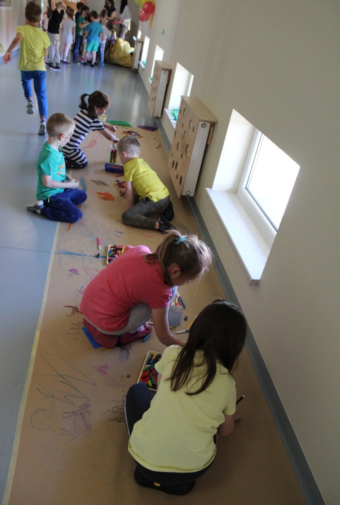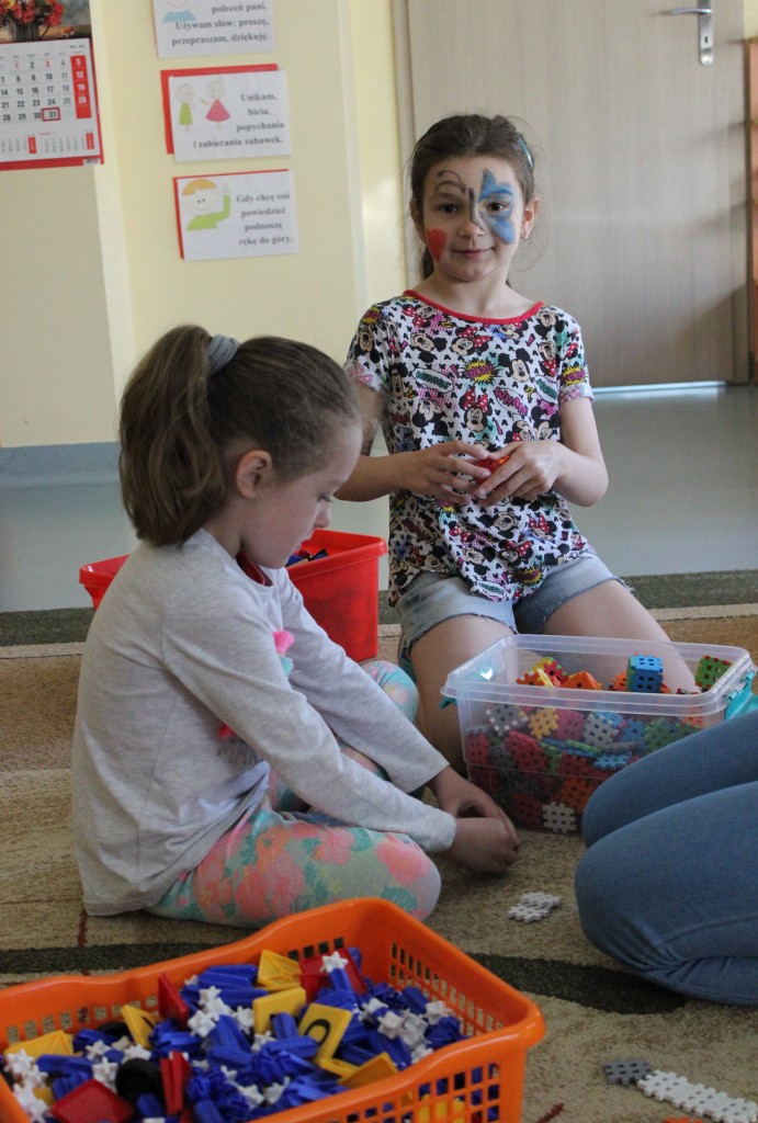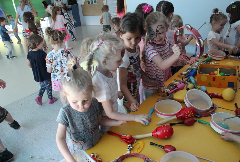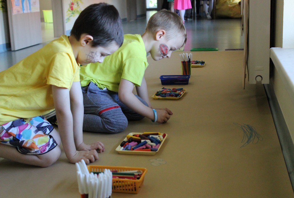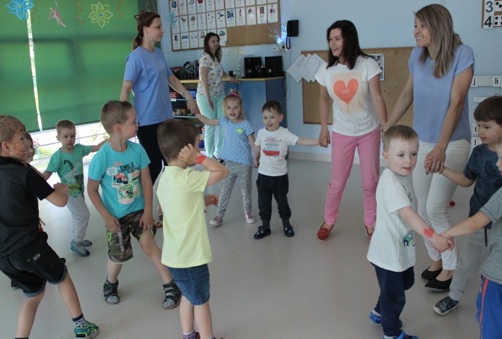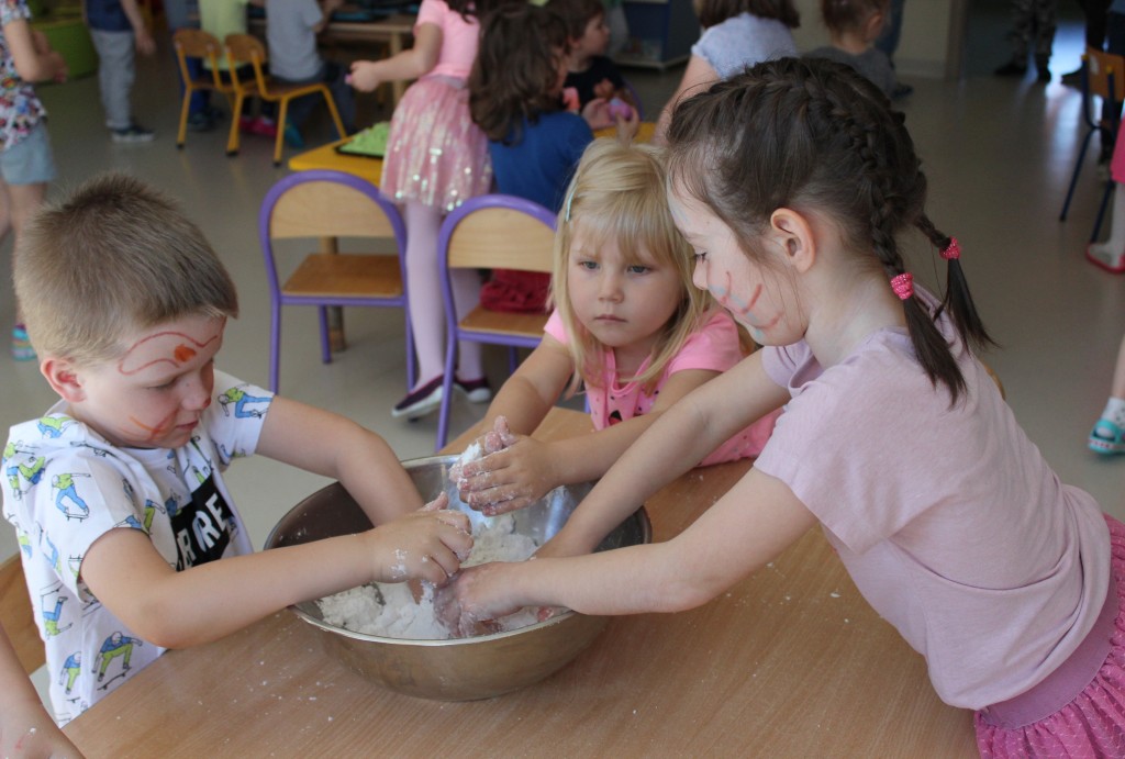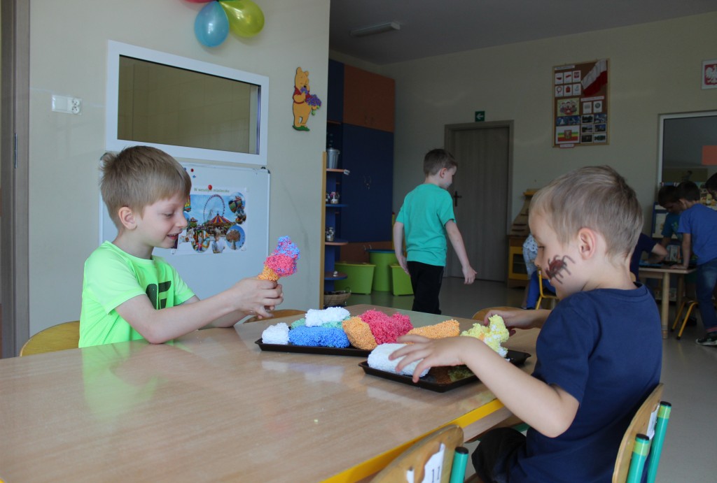 Kubusiowi przyjaciele również doczekali się swojego święta. W przeddzień 1 czerwca, przedszkole zamieniło się w wielką salę zabaw, tańców i kolebkę pięknych wspomnień. Zaraz po śniadaniu wszyscy zgromadziliśmy się w sali teatralnej, gdzie Pani Dyrektor wspólnie ze swoimi małymi pomocnikami zapoznała nas z nowymi przygodami przyjaciół z Krainy Siedmiu Dębów. Następnie wszyscy udali się na samodzielne zwiedzanie sali przedszkolnych. W każdej z nich czekała na dzieci inna atrakcja. Było kino bambino, sala muzyczna, ruchowa, konstrukcyjna a także zabawy z masami plastycznymi, rysowanie, balonowe cuda i malowanie twarzy.
